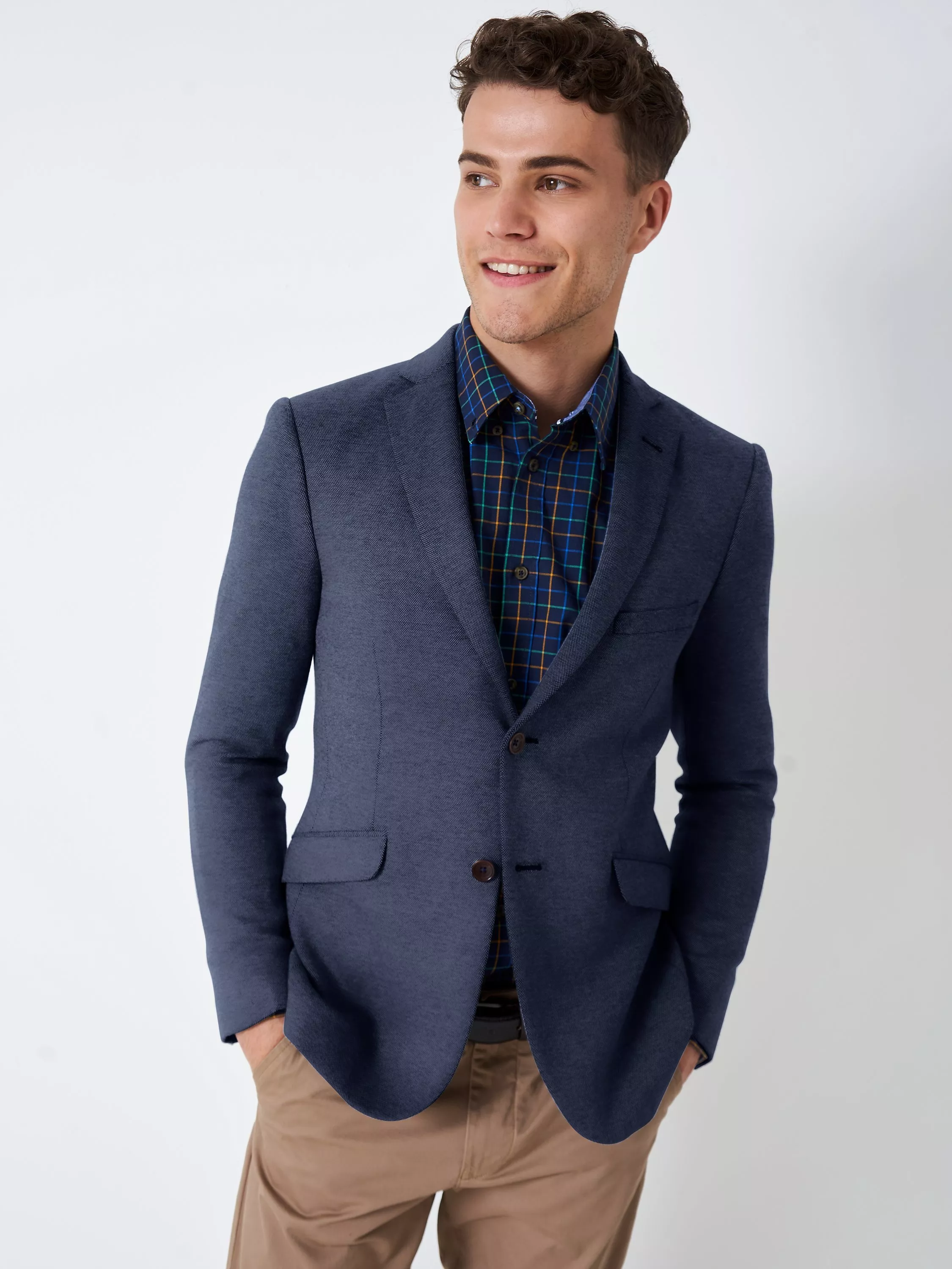 Showcasing a refined style that perfectly informs desk-to-dinner rotations, accent your look with this blazer from Crew Clothing.