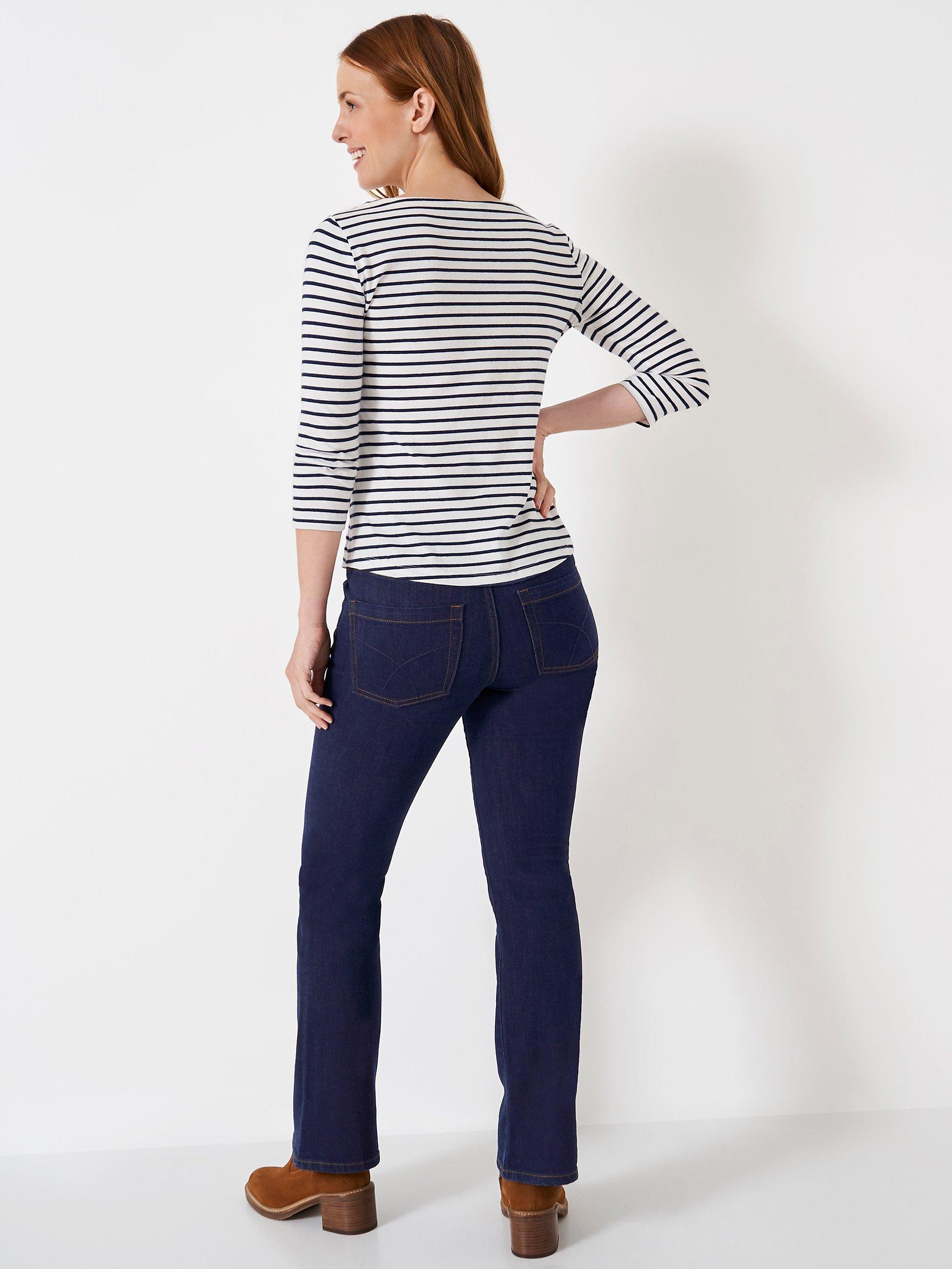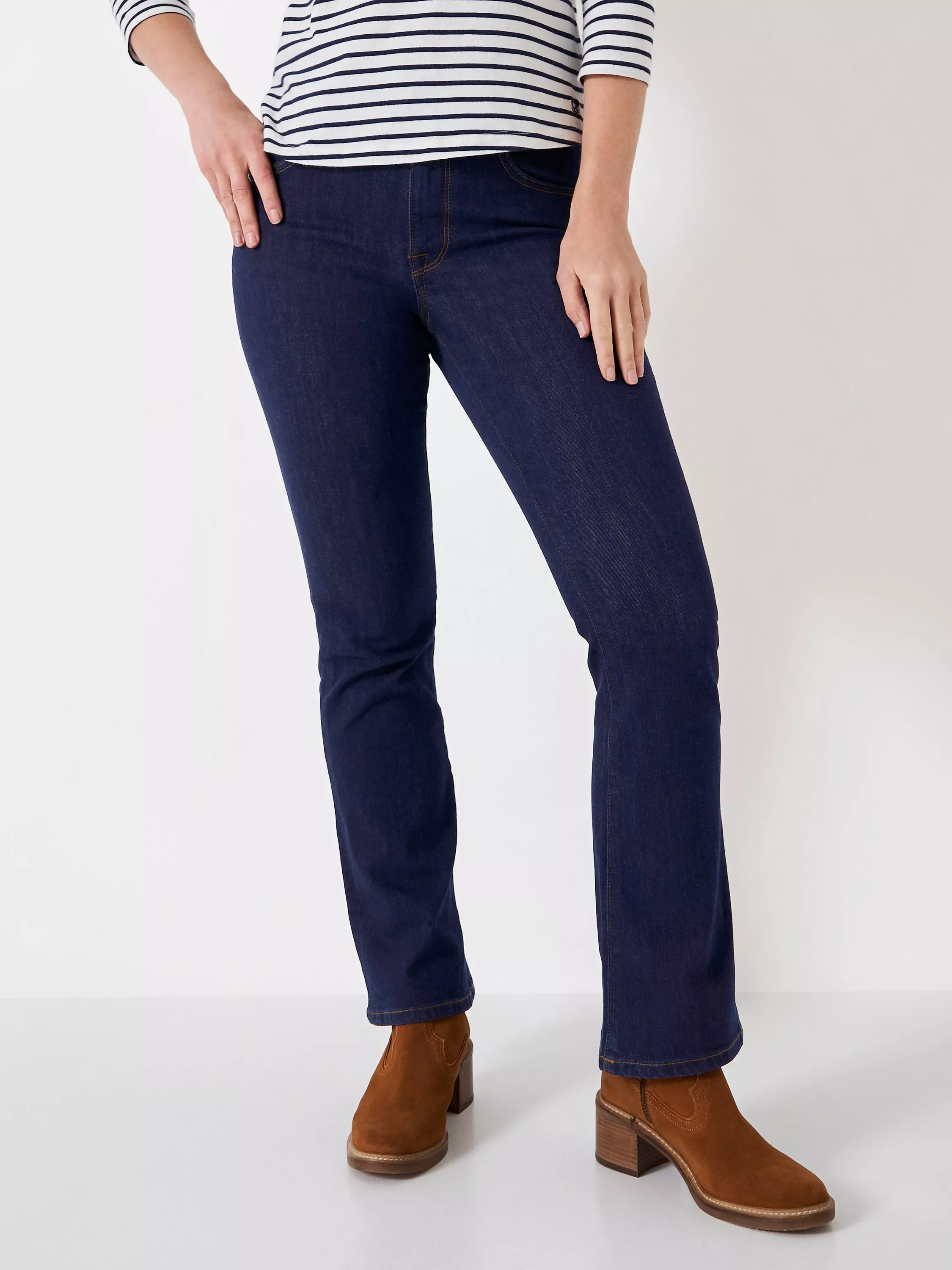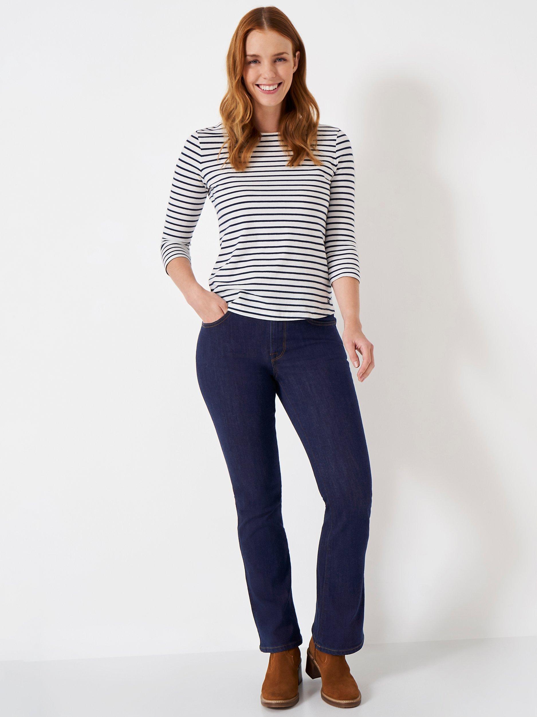 Evocative of 60s and 70s cuts, these bootcut mid rise jeans from Crew Clothing are crafted from a durable, breathable cotton blend and finish at a regular length. They're versatile enough to be dressed down for a casual day or dressed up with stilettos for an after-work dinner.