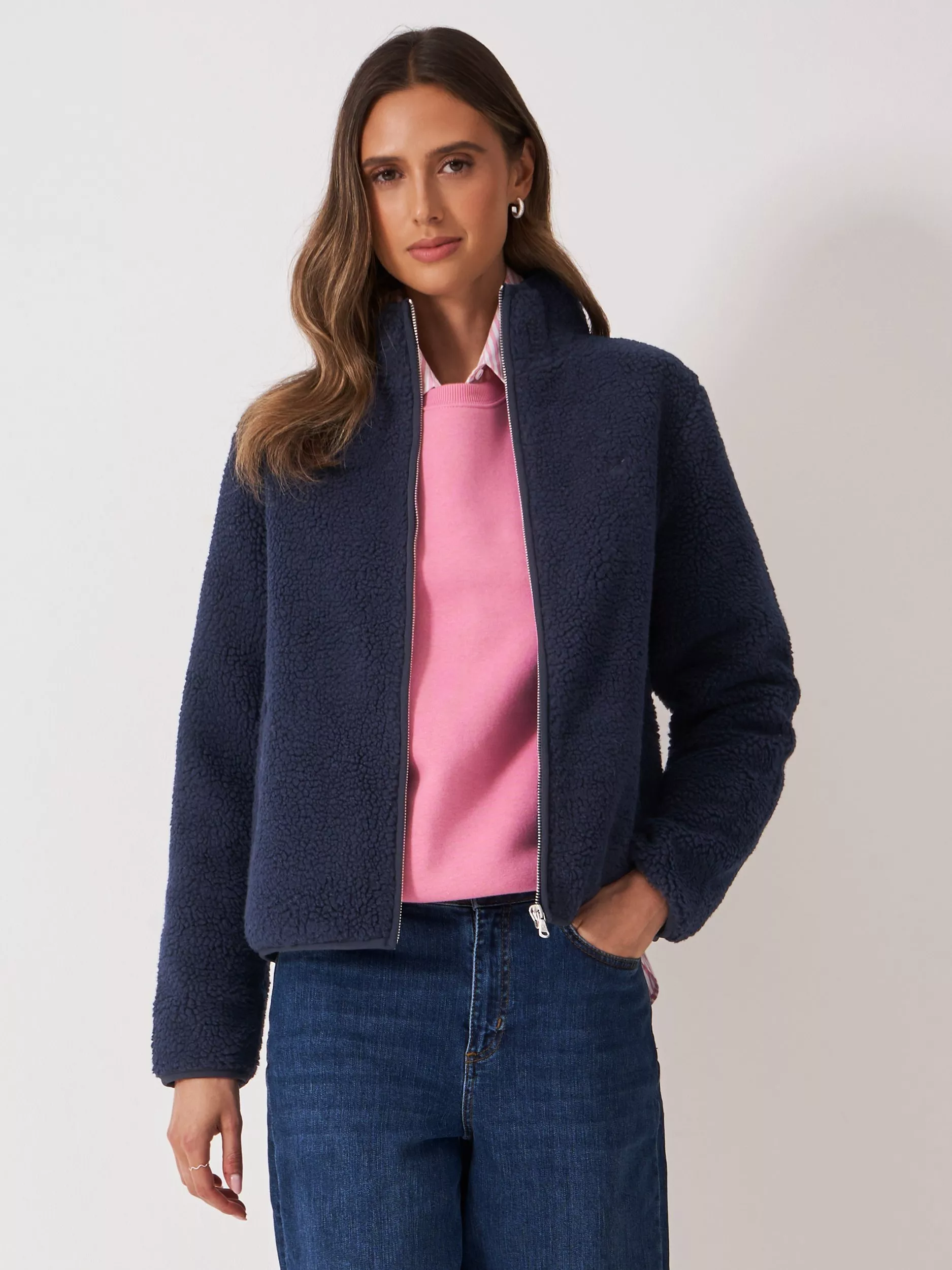 Crew ClothingBoucle Zip Through Fleece, Navy Blue