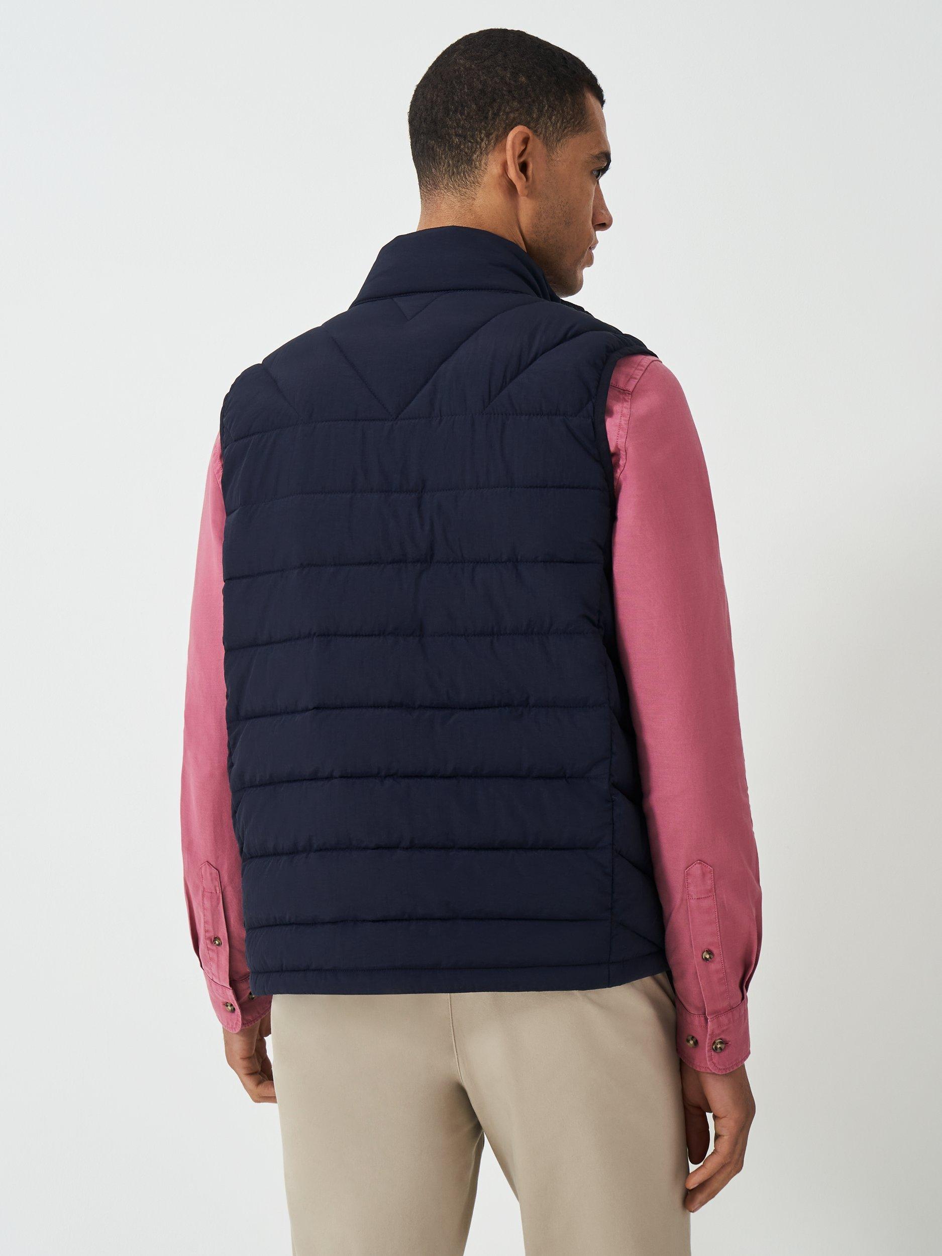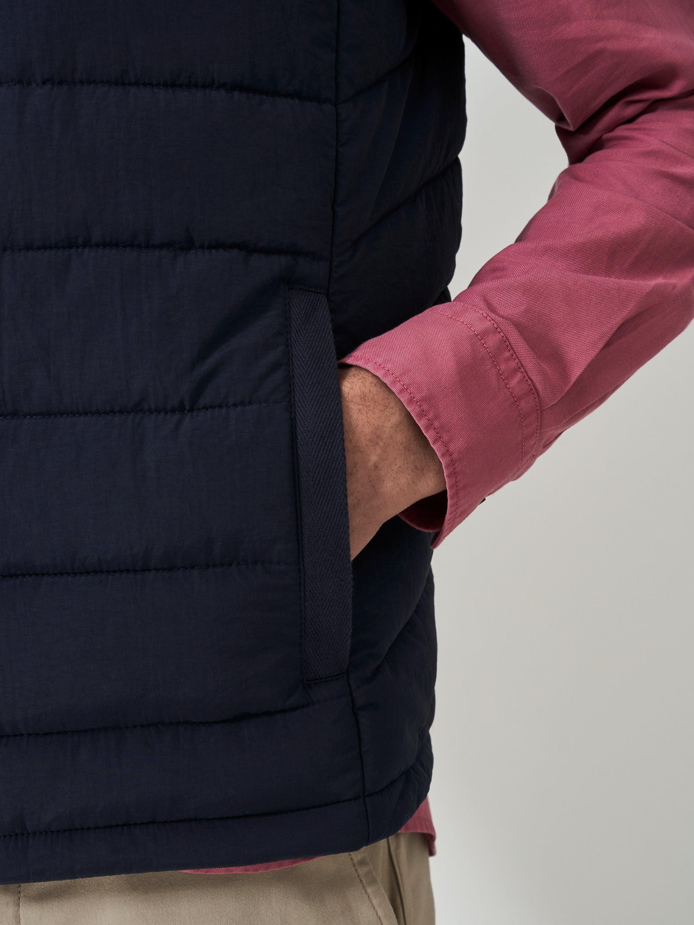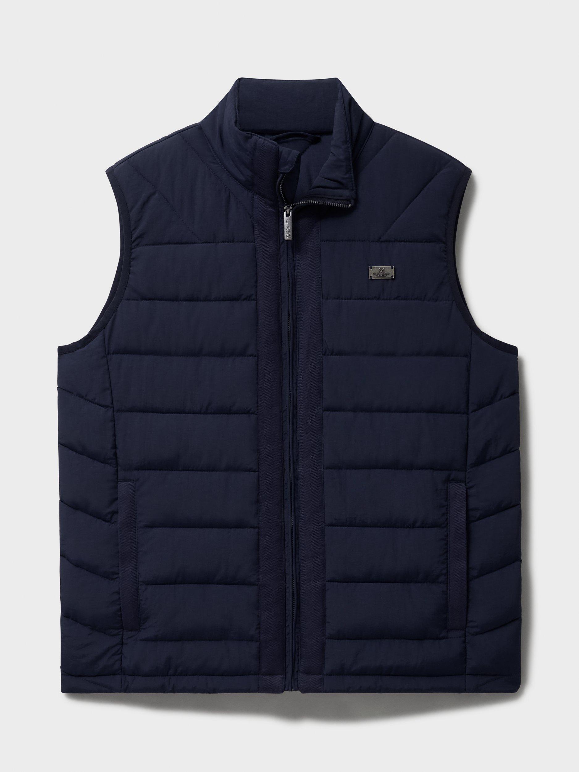 Meet the showerproof Bramham gilet in heritage navy. It's warm yet feather-free and features stylish horizonal quilting, a branded zip pull and featuring signature crossed oars on the chest. Wear it every day (with everything).
