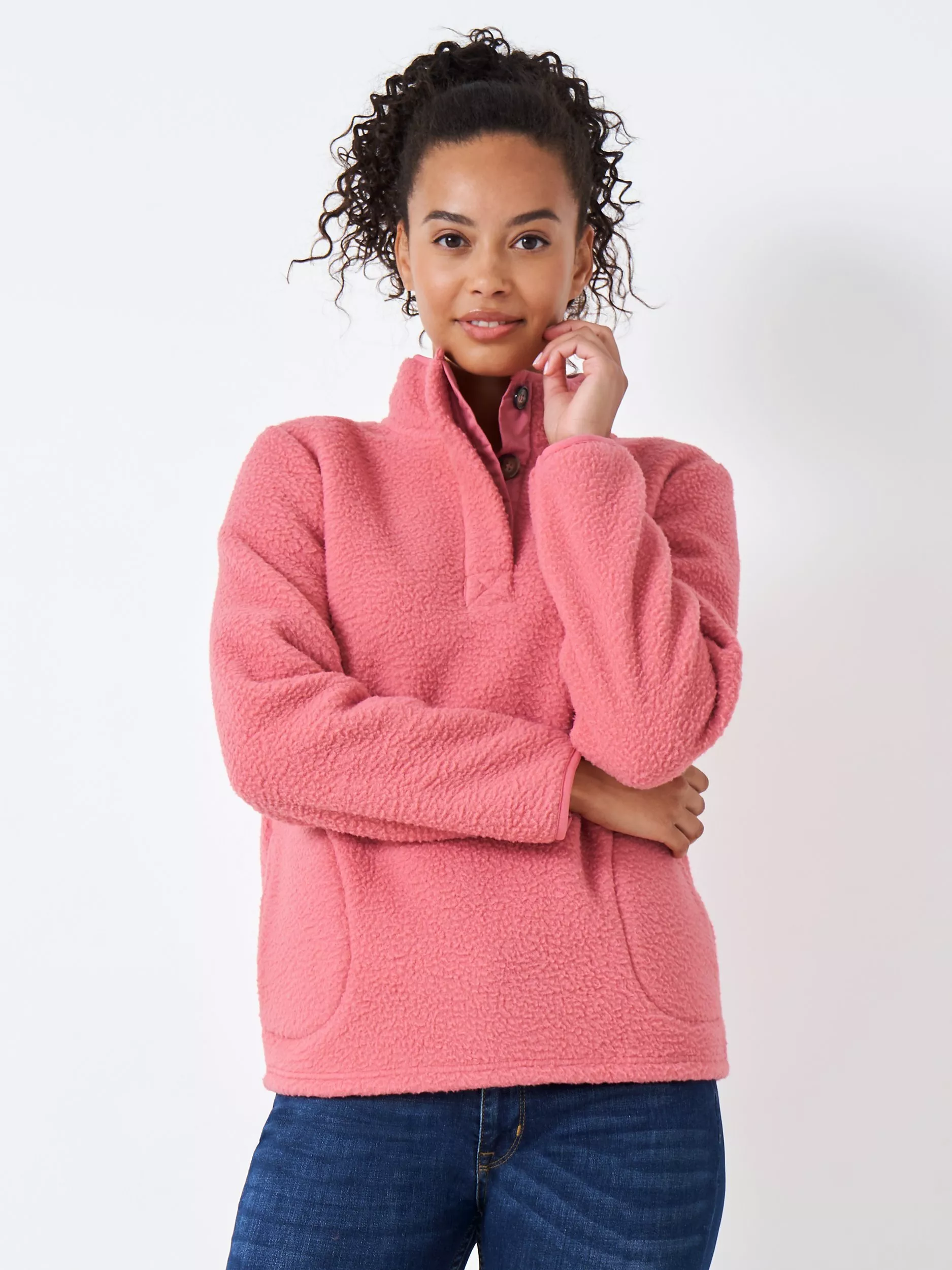 Taking it easy with a hooded neckline, this button neck fleece by Crew Clothing is made with a long-lasting fabric for longevity of wear.
