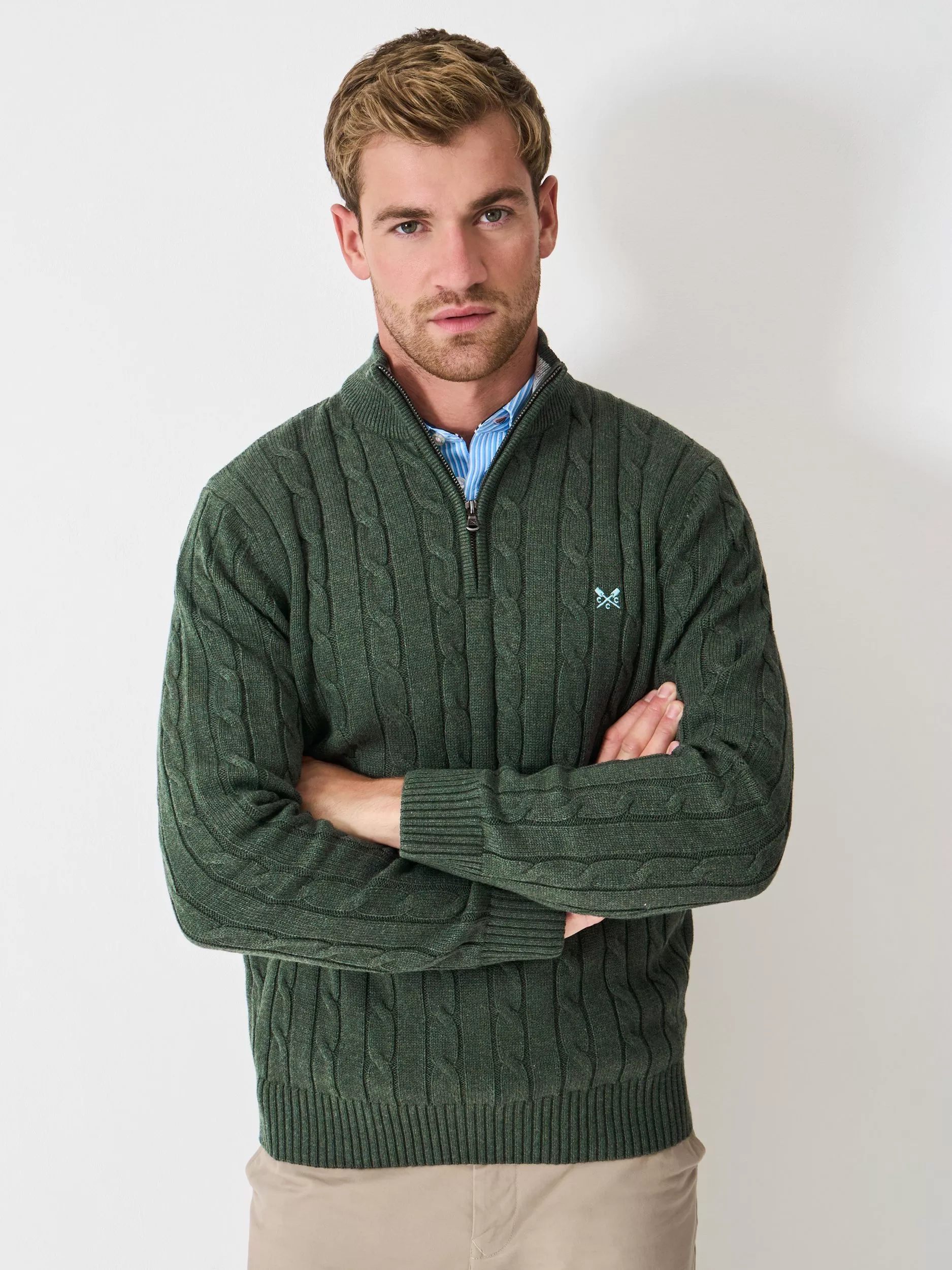 In a forest green hue, with a cable stitch design, this half zip jumper is smart and sophisticated. Pair with a classic shirt and jeans for the everyday.