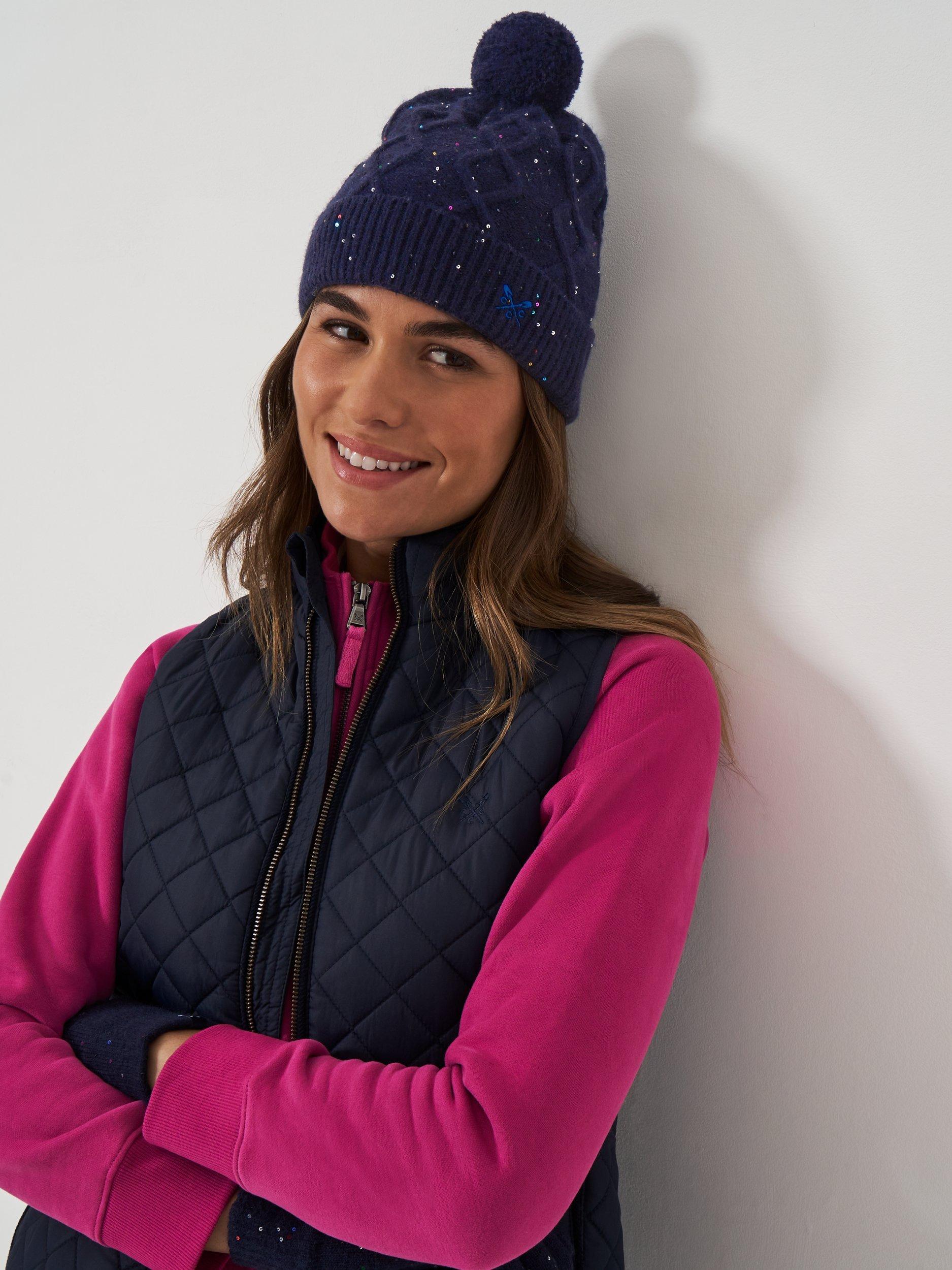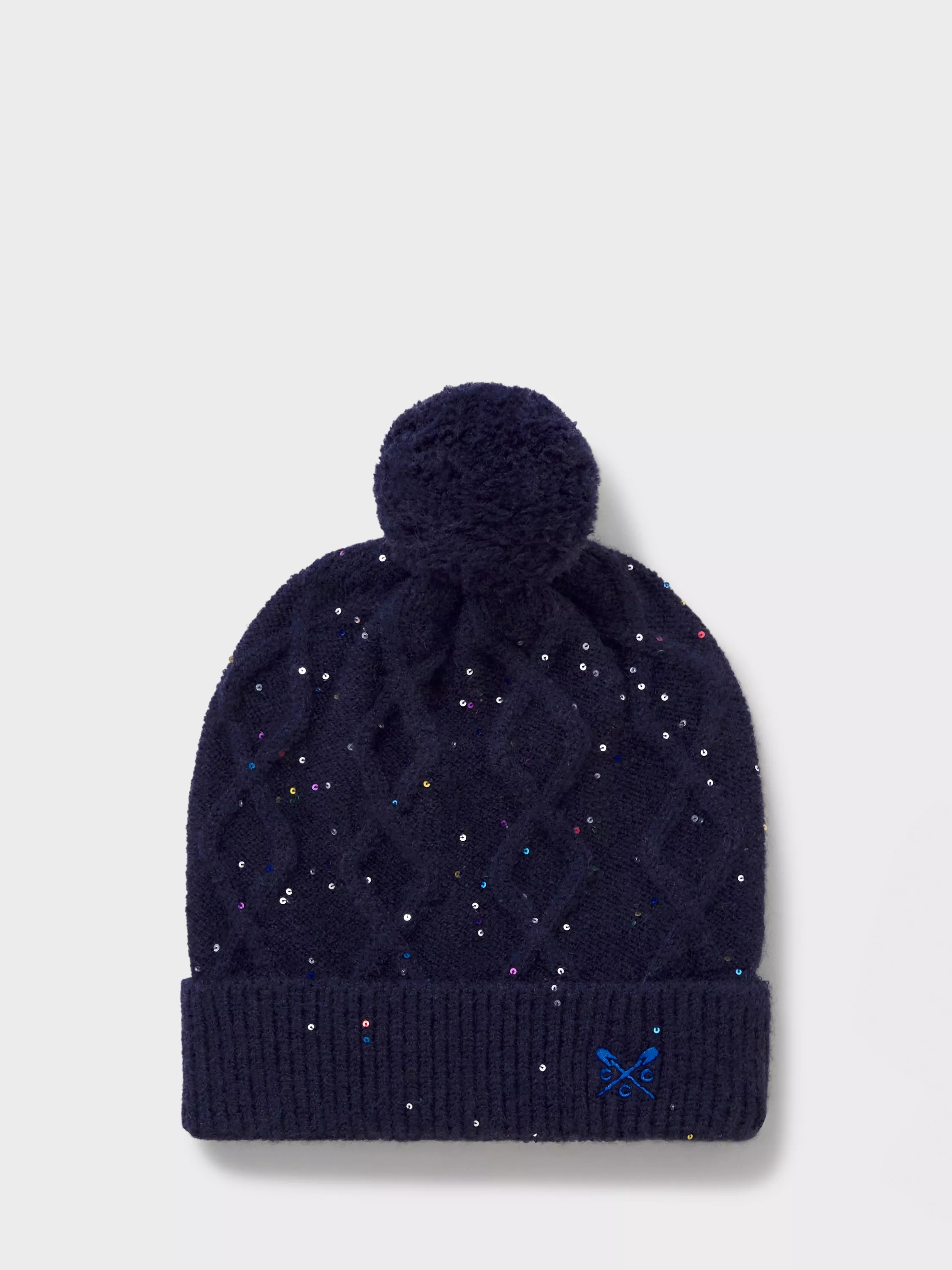 Crew ClothingCable Knit Glitter Bobble Hat, Navy