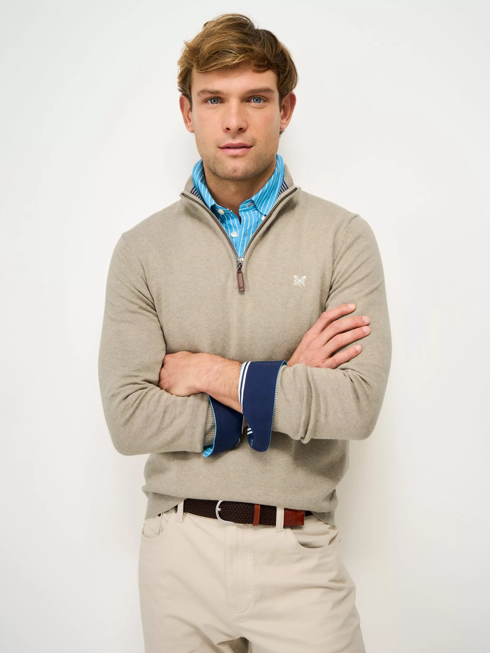 Crew ClothingClassic Cotton Half-Zip Jumper, Beige