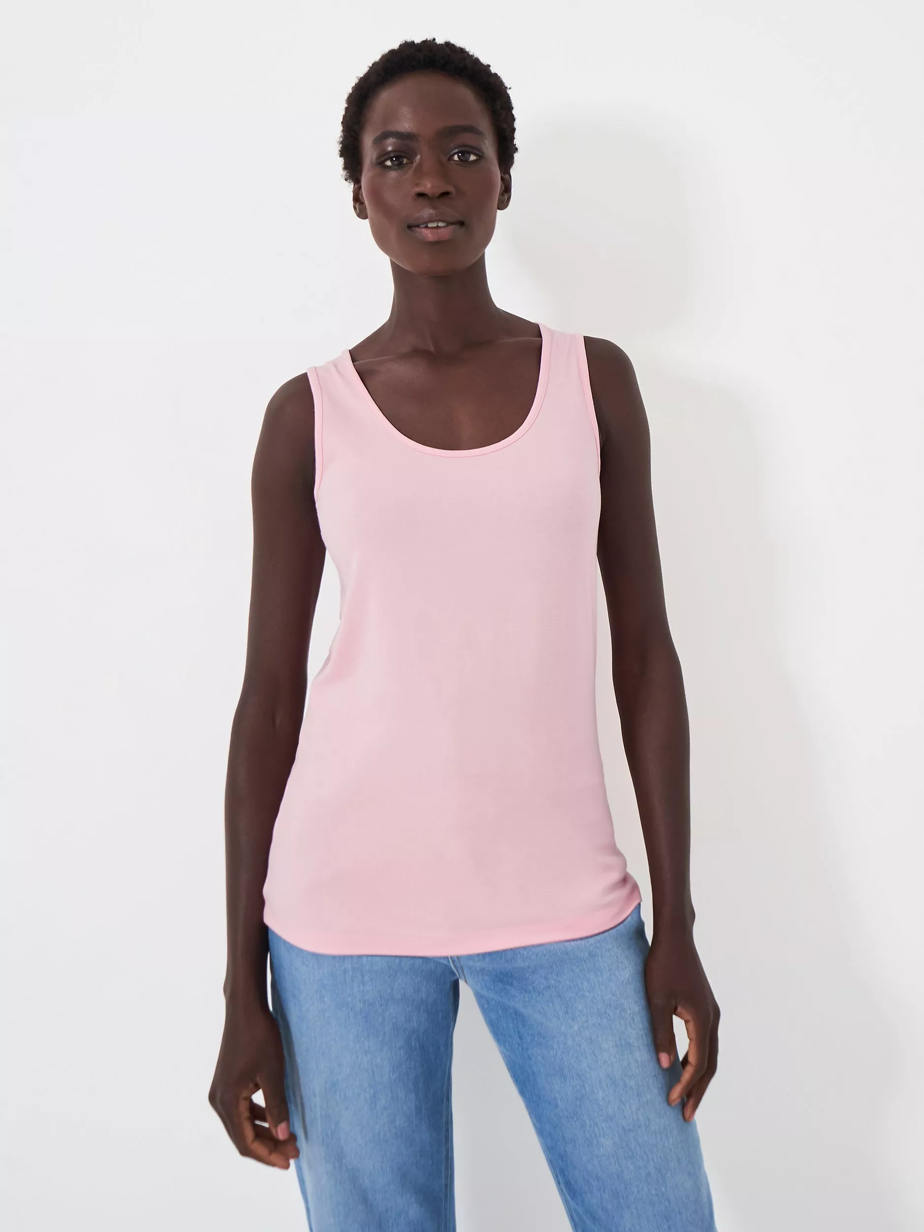 Cut with a round neckline and a sleeveless design, it is made from a comfortable cotton-rich fabric and is an everyday wardrobe essential.