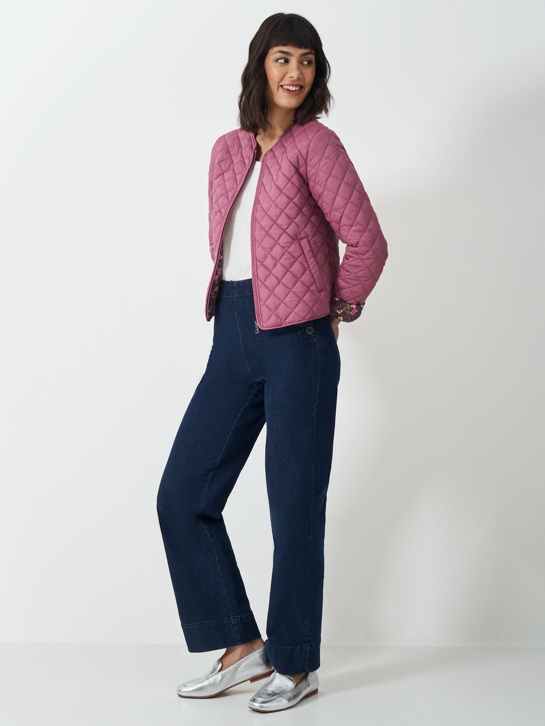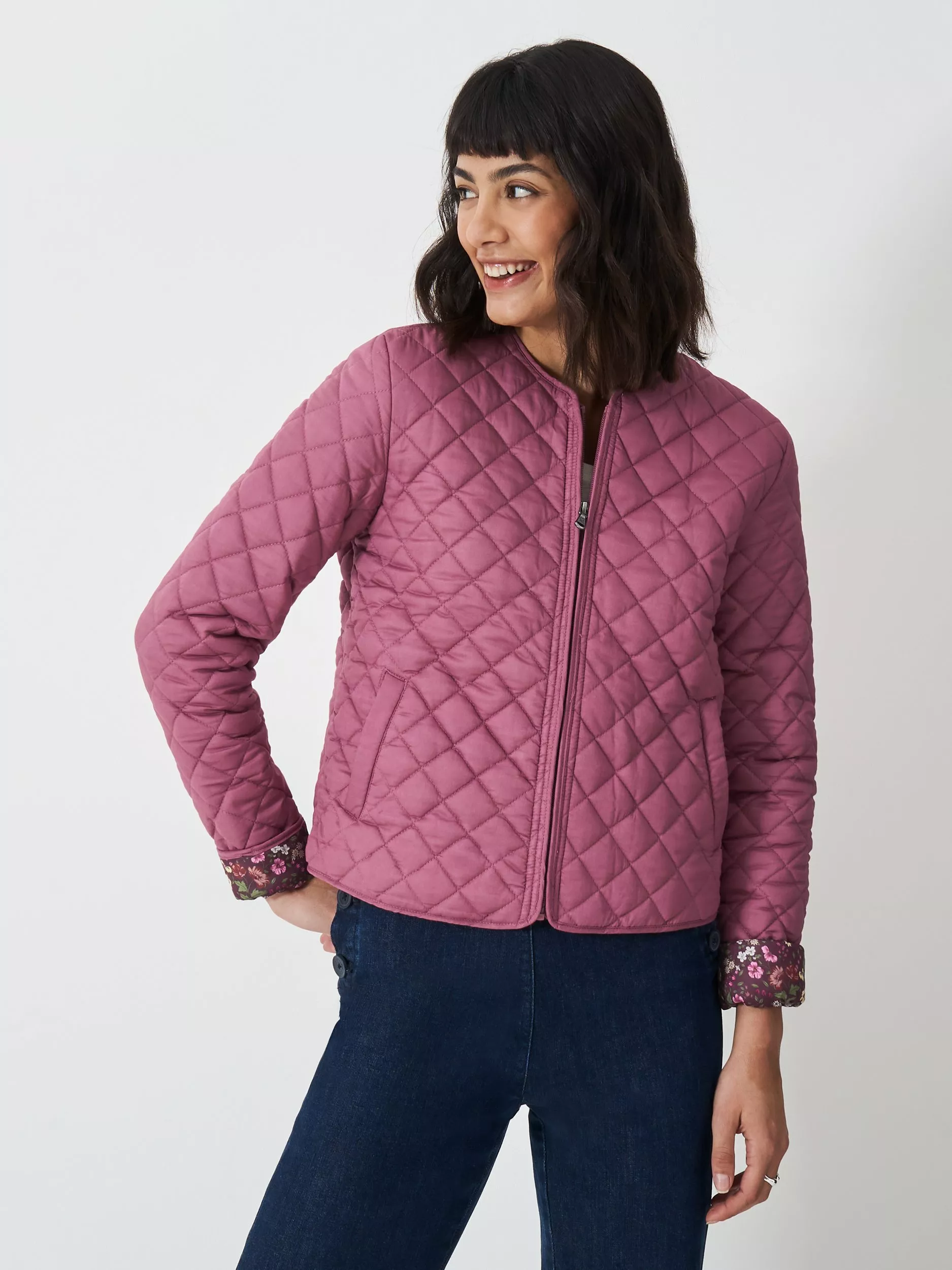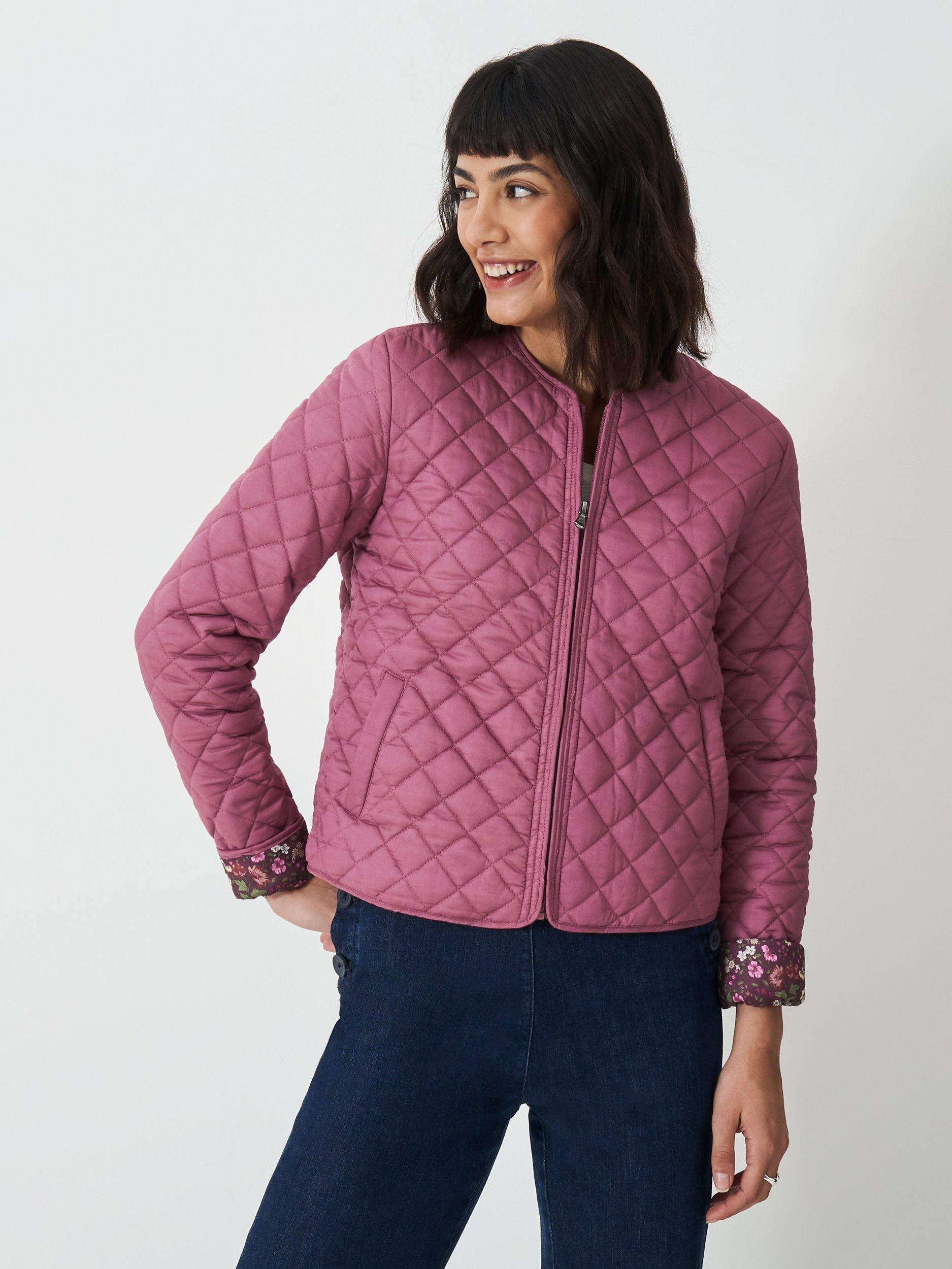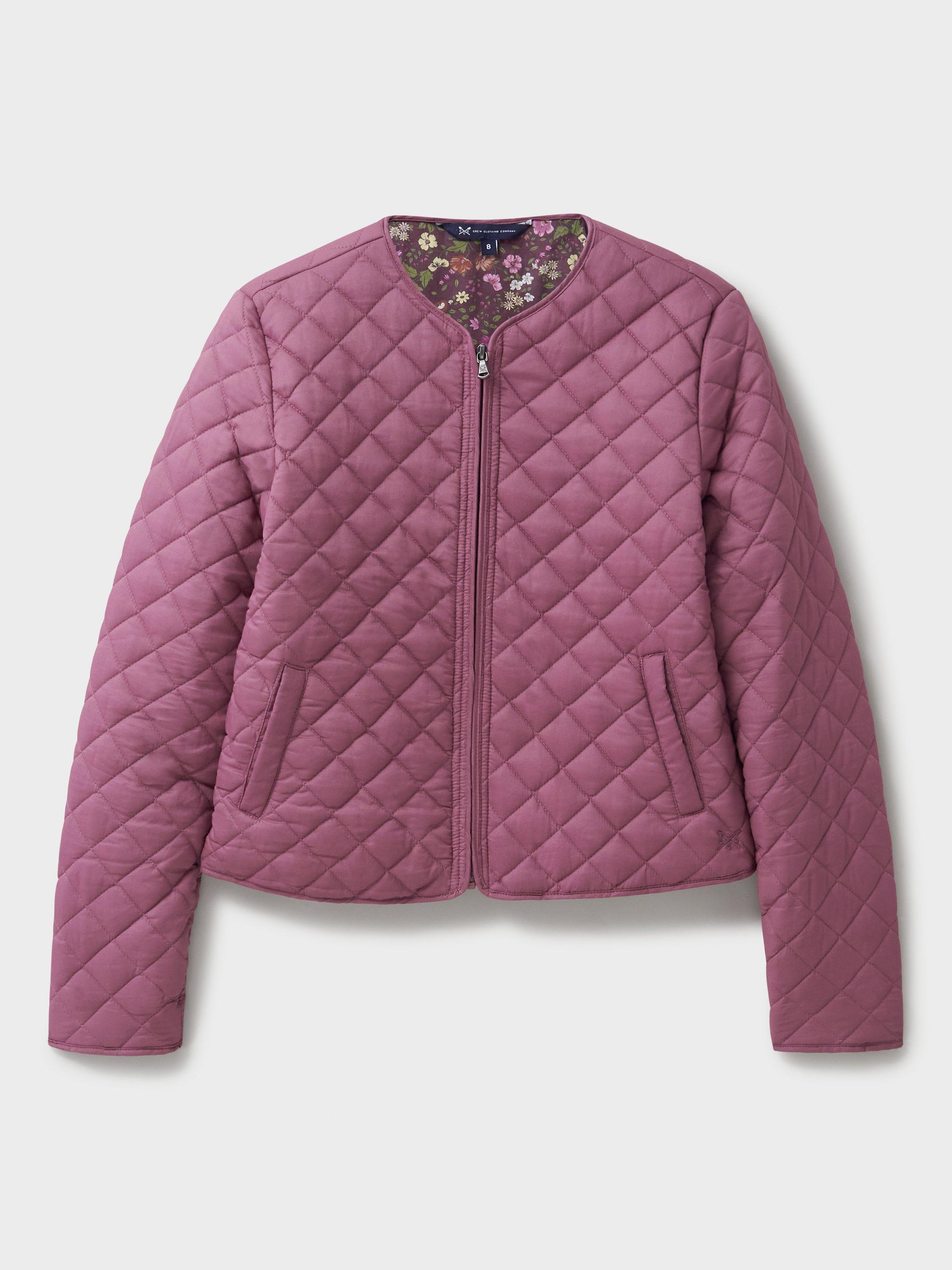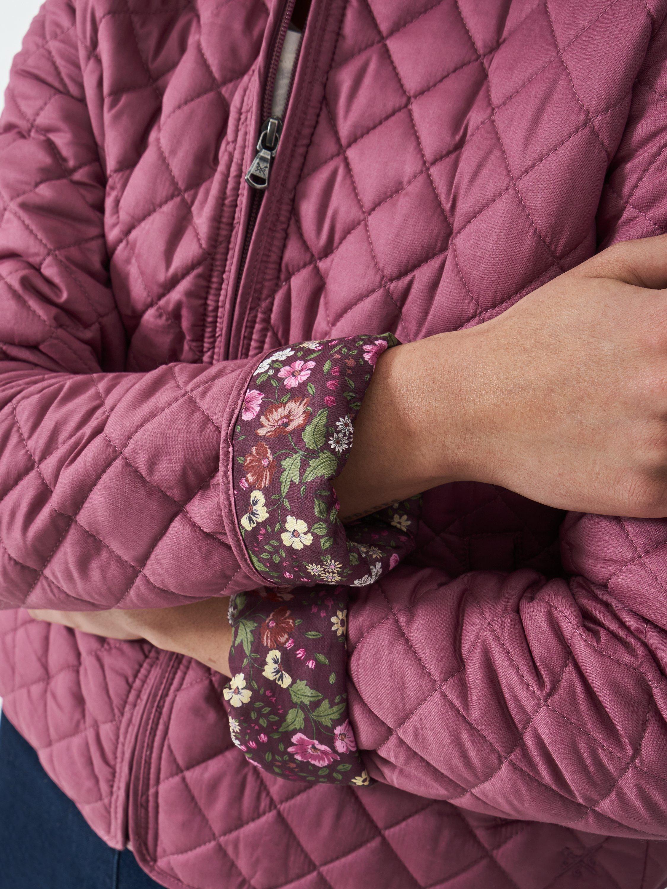 A lightweight quilted jacket. Functional and stylish, we love the ditsy floral lining and the collarless style. It also features handy pockets and a concealed zip fastening. Pair with dark denim for a polished yet practical look, then turn back the cuffs to show off the lining. Wearable all year round.