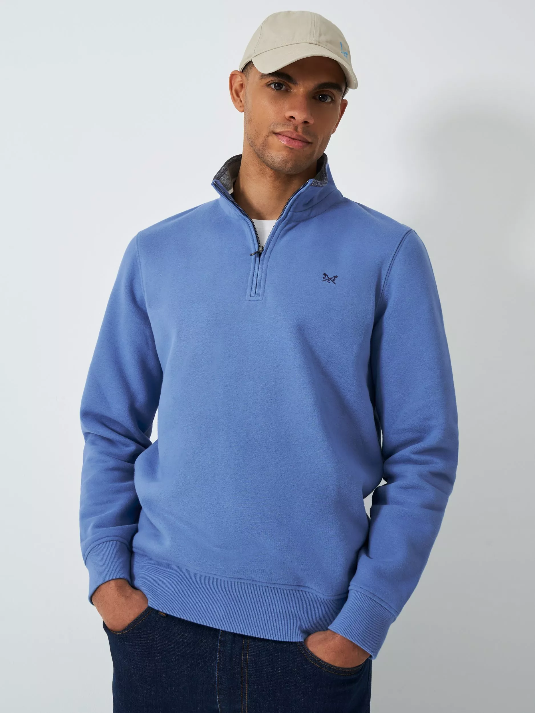 Lending a laid-back approach to dressing, this zipped jumper from Crew Clothing is made from a cotton blend fabric for year-round appeal.