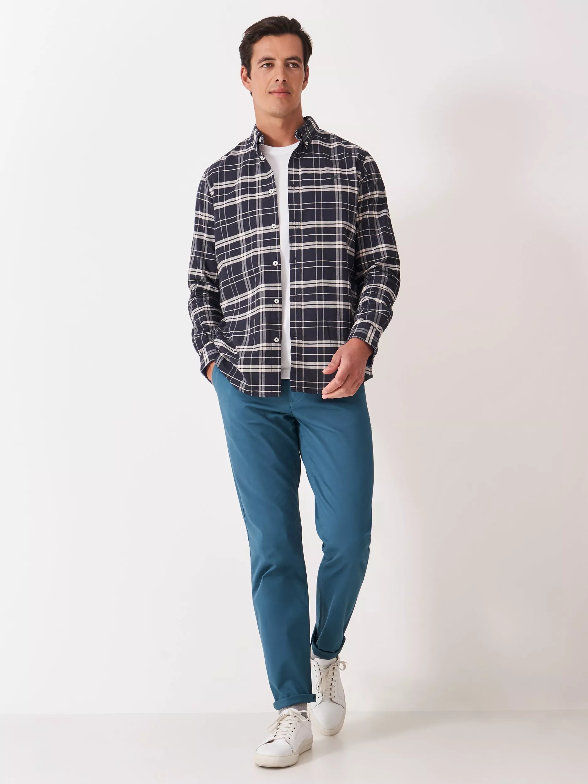 Straight leg chinos by Crew Clothing, made from a cotton blend fabric. Designed for day-to-day comfort and movement, they bring style to any casual moment.