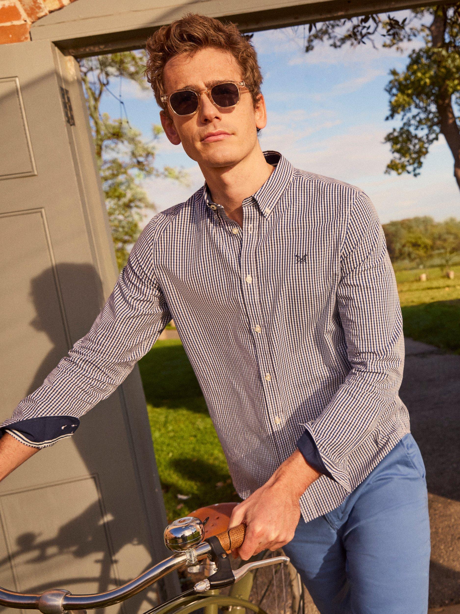 Crew ClothingCotton Gingham Shirt, Mid Blue