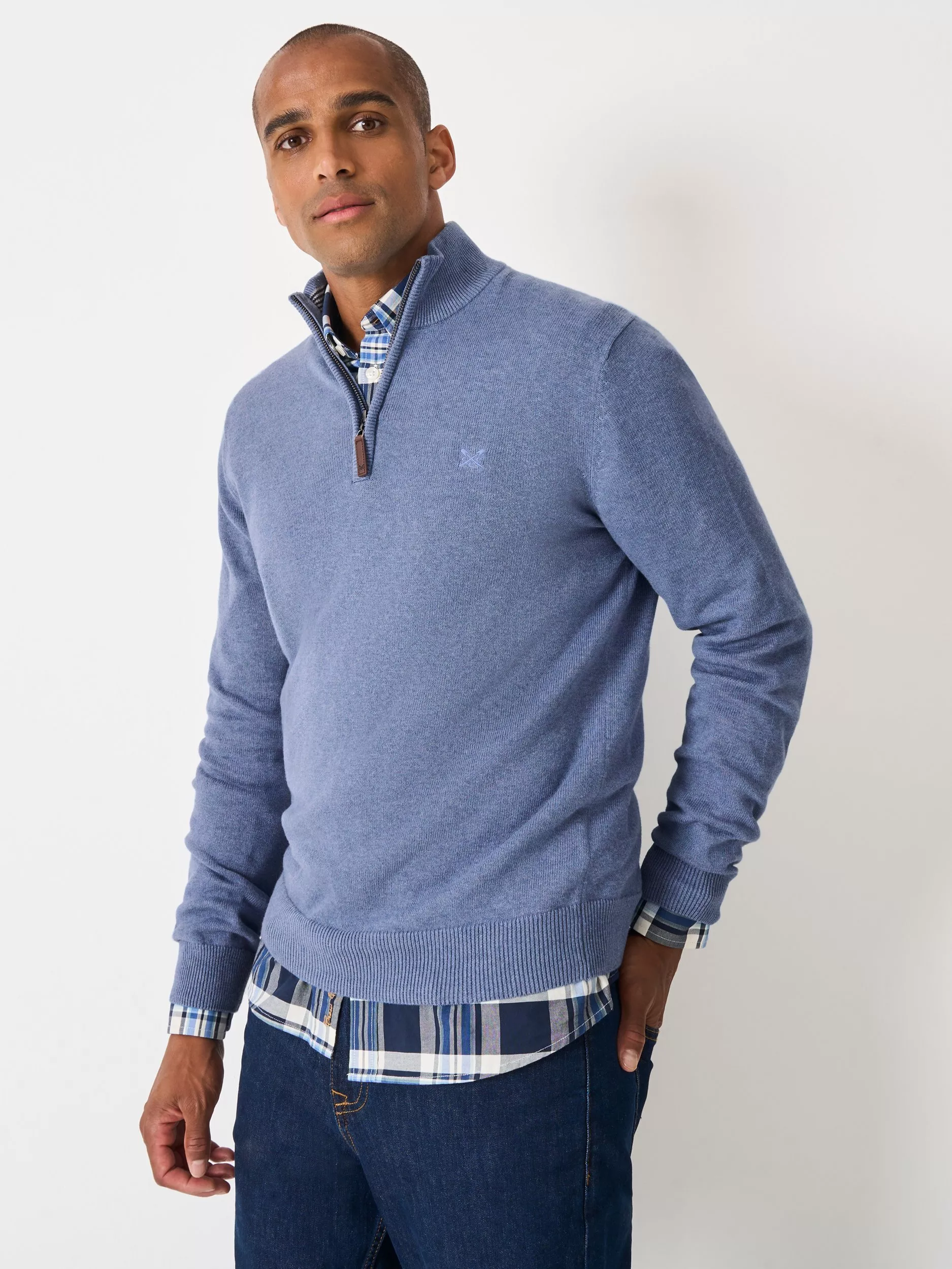 A sophisticated and timeless choice, this classic half-zip jumper is crafted from 100% cotton. This versatile piece can be dressed up or down, but for a modern, refined look, try pairing it with a denim shirt and dark jeans.