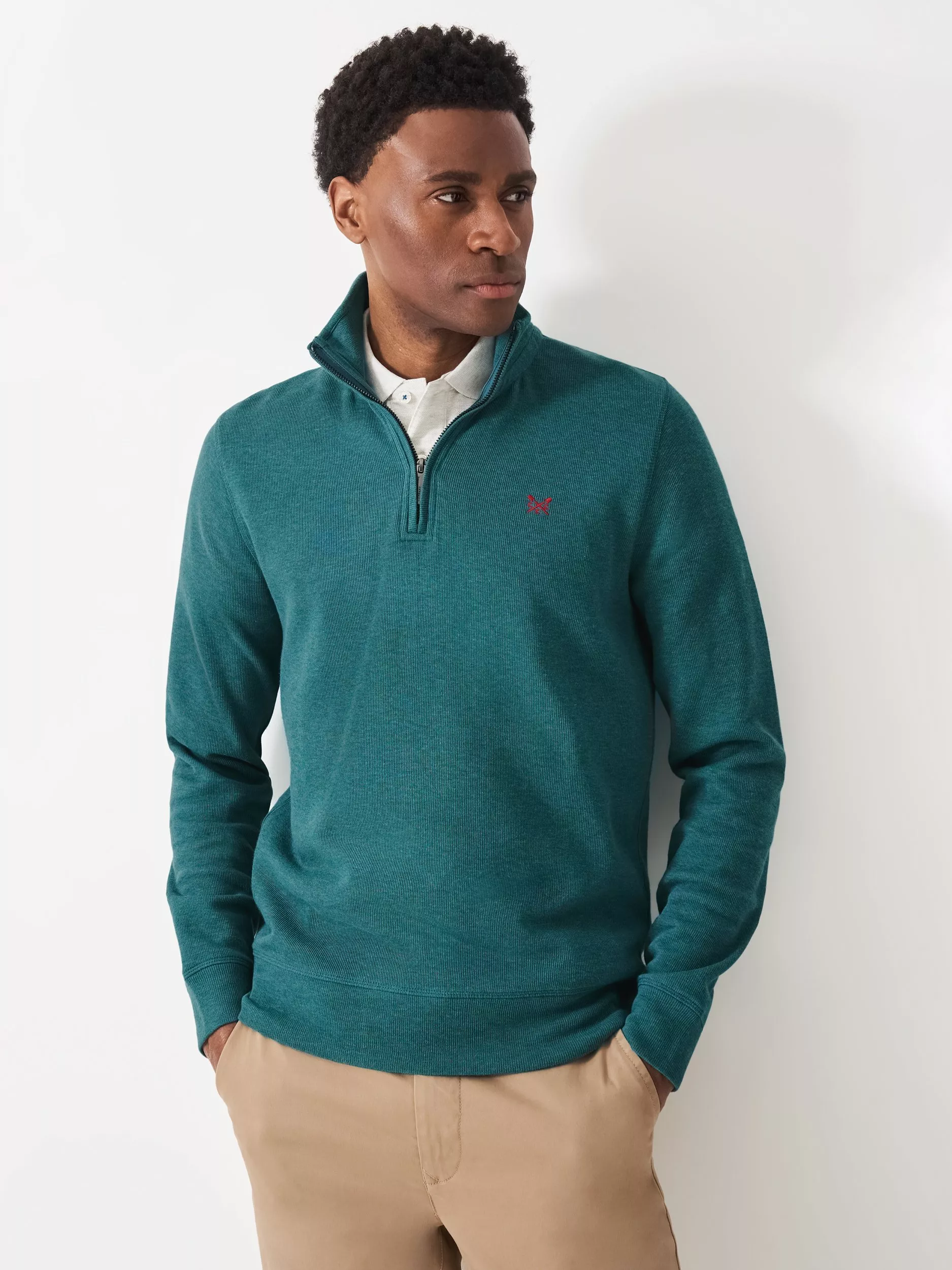 Crew ClothingCotton Quarter-Zip Jumper, Teal