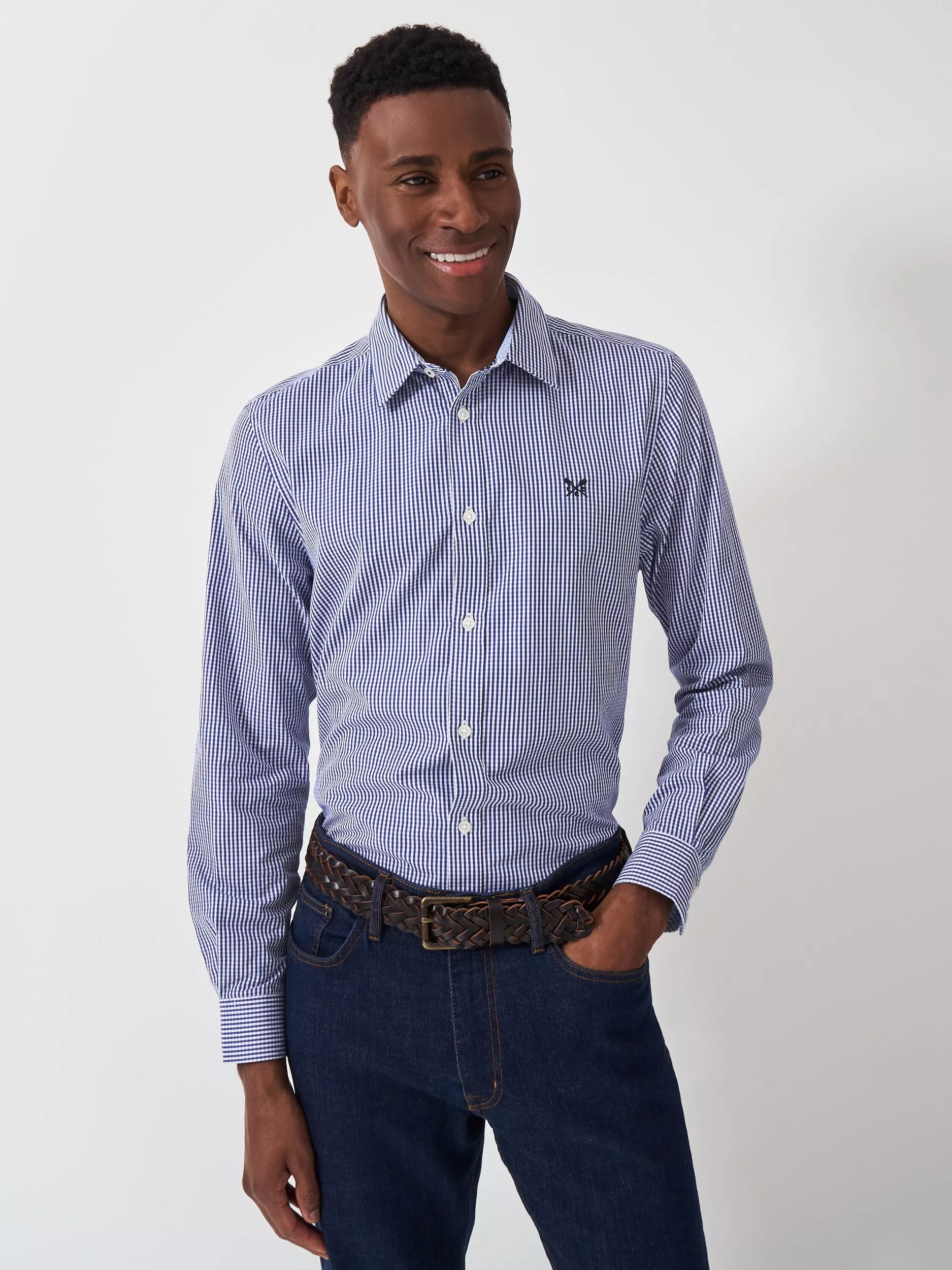 A long sleeved shirt in blue gingham. Designed with a tighter check than the classic gingham, this is a modern take on an original style. Pair with jeans, chinos or shorts for week-to-weekend style made easy. It just works.