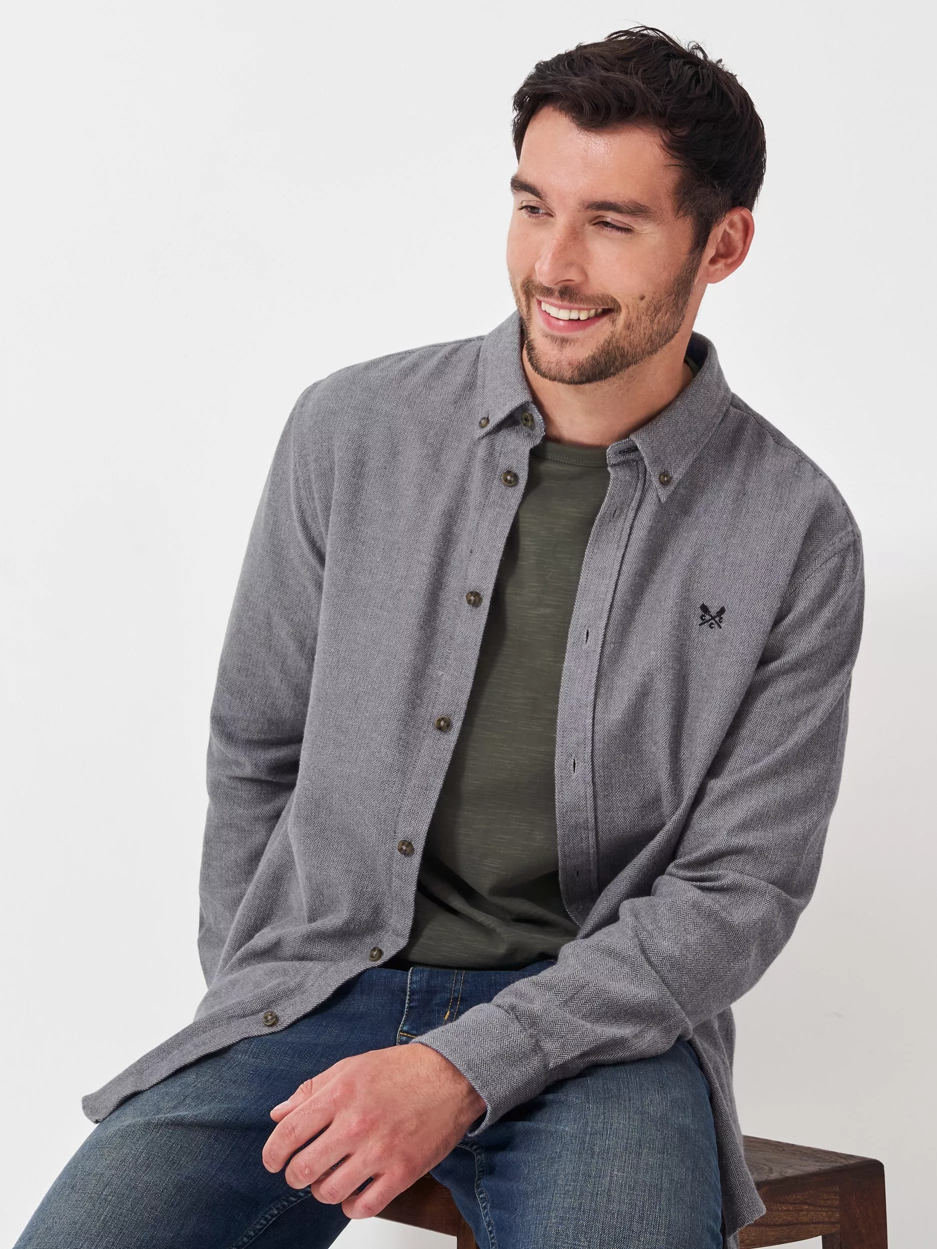 This new flannel shirt with a subtle herringbone weave within the fabric. Cut from brushed, 100% cotton, this flannel shirt features chambray touches around the collar and cuffs and the brand's embroidered crossed oars on the chest. Team with jeans on more causal days or chinos for a smart casual look.