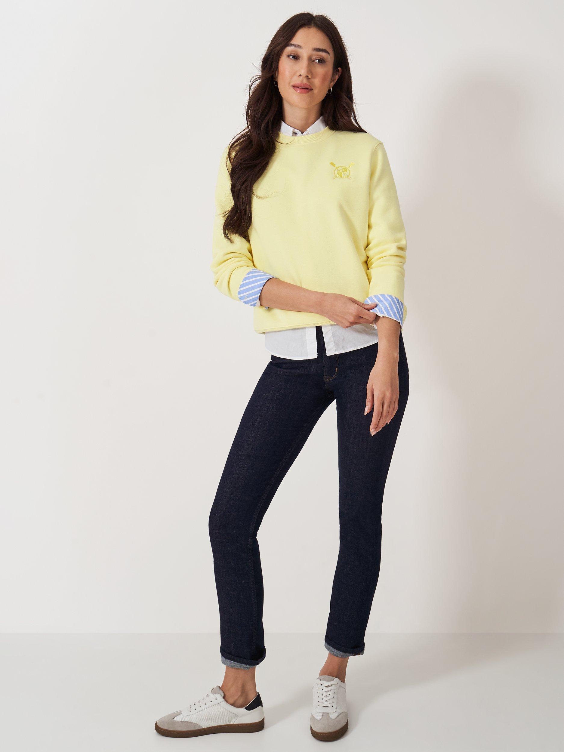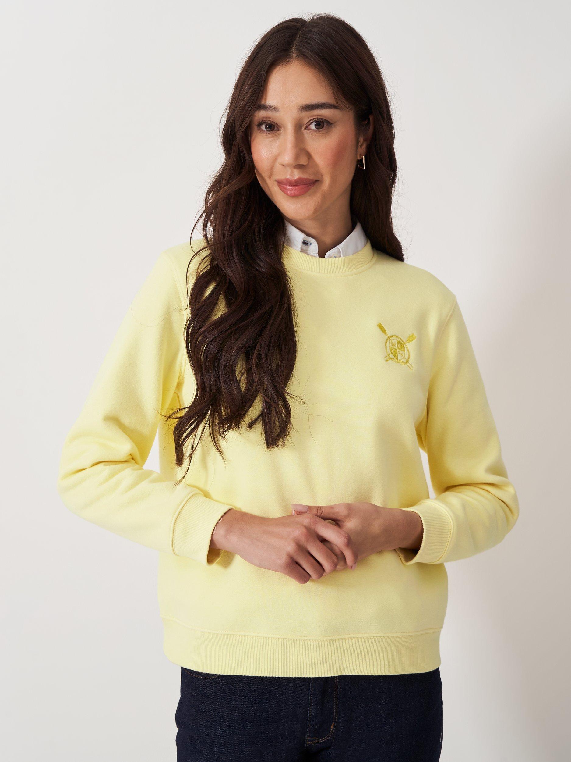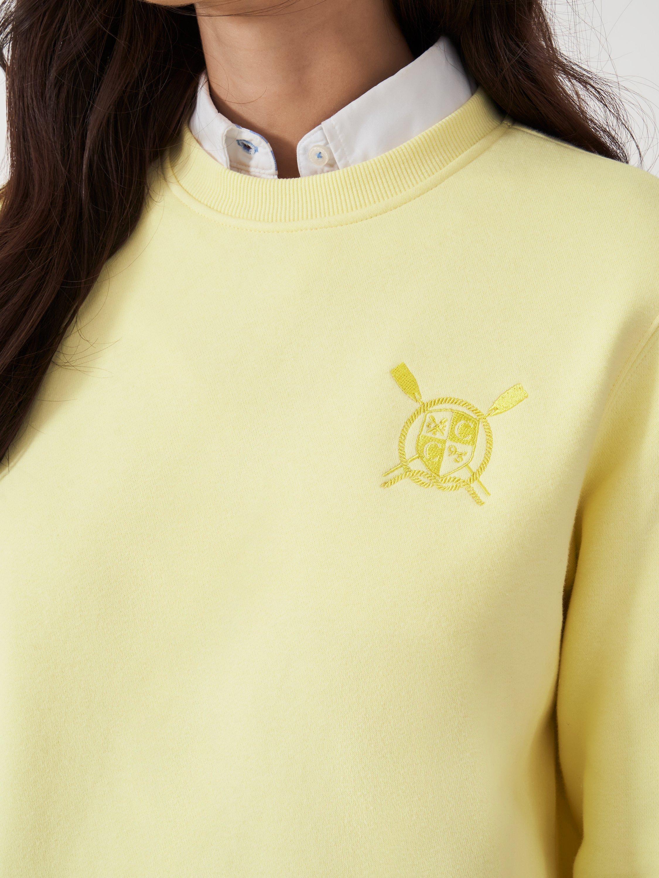 The buttery-coloured dye gives this cotton sweatshirt a varied wash of colour for a relaxed, laid-back feel. Crew have added a contrast-coloured hem, neck, and sleeves and an embroidered anchor logo on the chest for a modern touch. Wear with denim shorts and trainers for days by the sea.