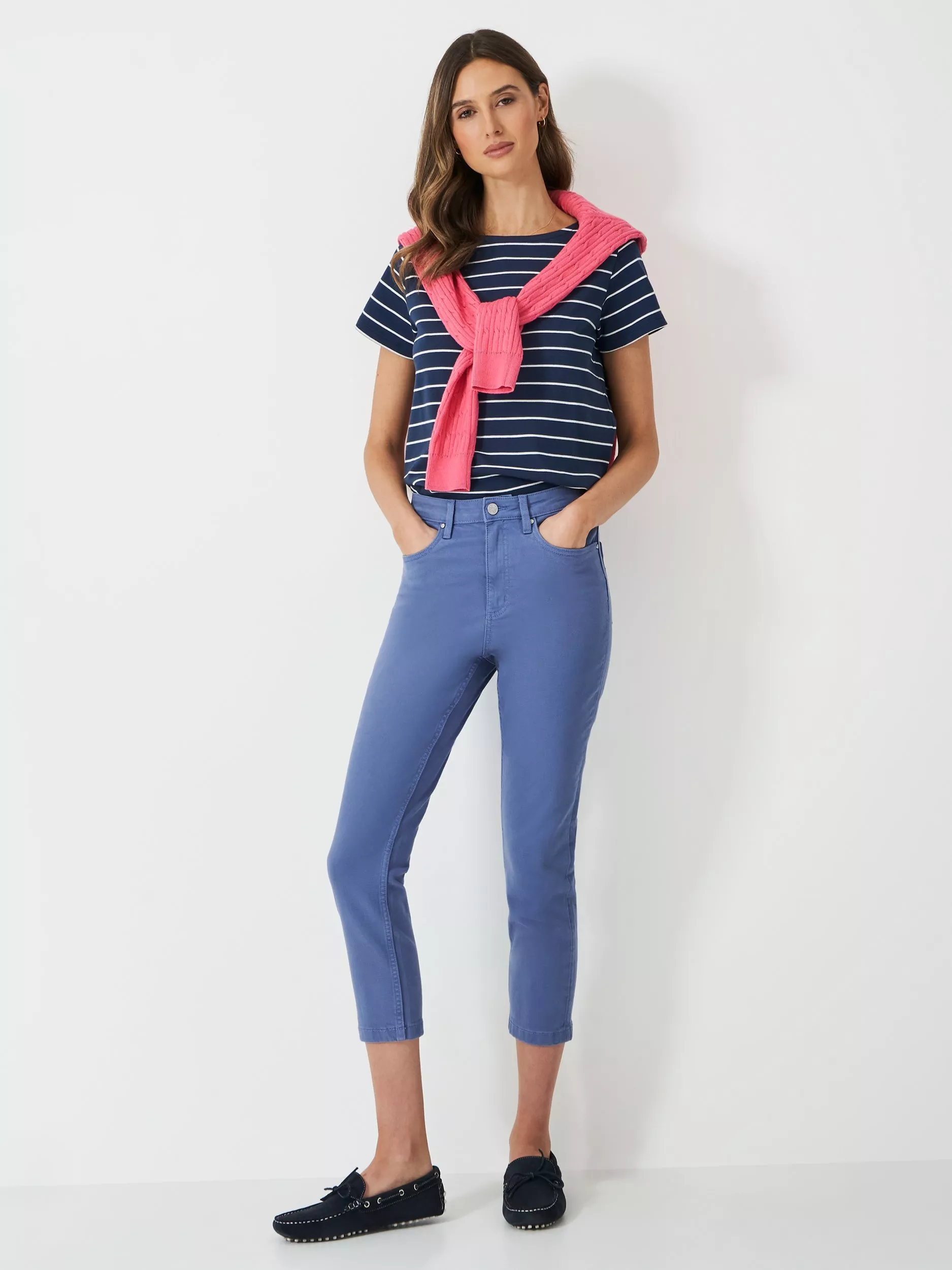 Cropped in length and enhanced with a slight stretch, we've thought of everything for these jeans. They are filled with all our classic denim elements, including logo embroidery, a branded tab, and crossed oars embossing on the front button. They look great paired with our blouses and tees.