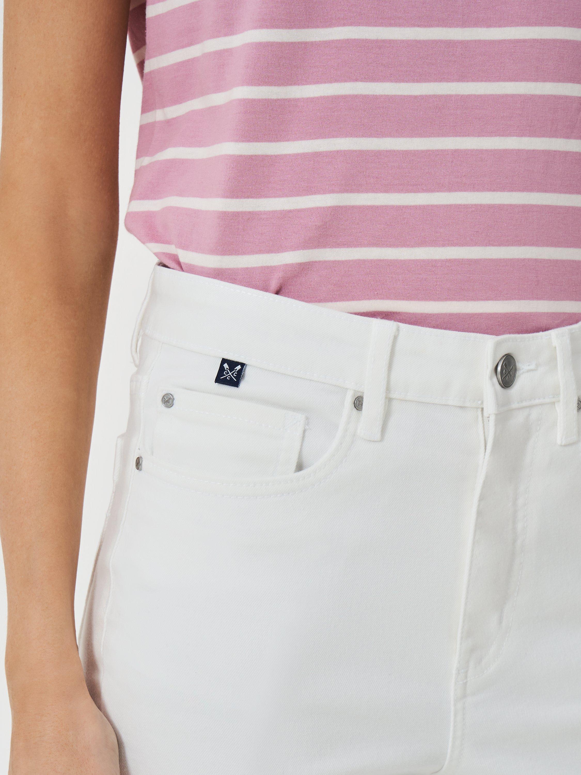 Cropped in length and enhanced with a slight stretch, we've thought of everything for these jeans. They are filled with all our classic denim elements, including logo embroidery, a branded tab, and crossed oars embossing on the front button. They look great paired with our blouses and tees.