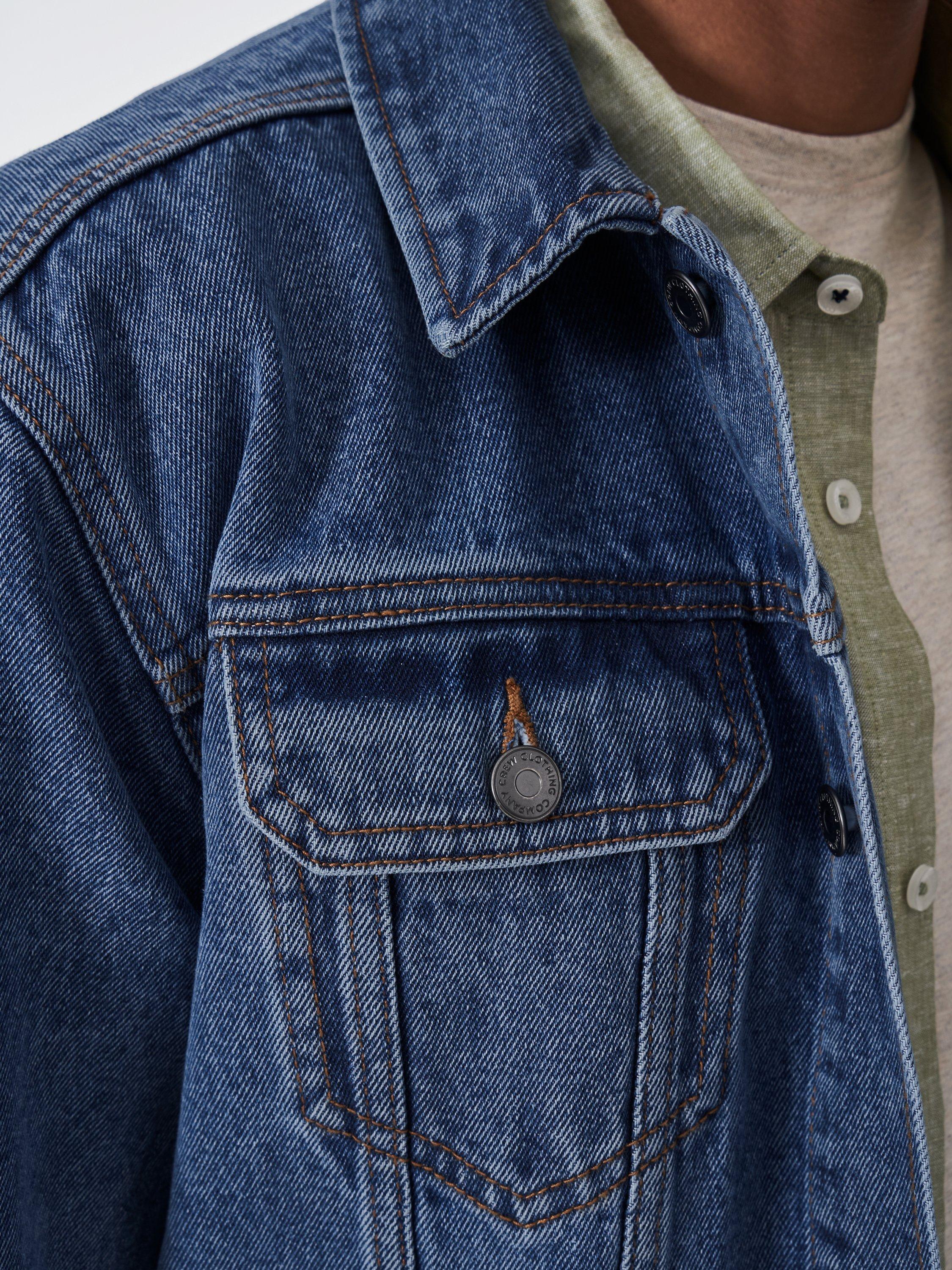 Our Teignmouth denim jacket in midwash. Crafted from 100% cotton and in a classic design - we've added branded pewter buttons, functional pockets and contrasting stitching for an authentic feel. Layer over tees and linen shirts, perfect for warmer evenings.