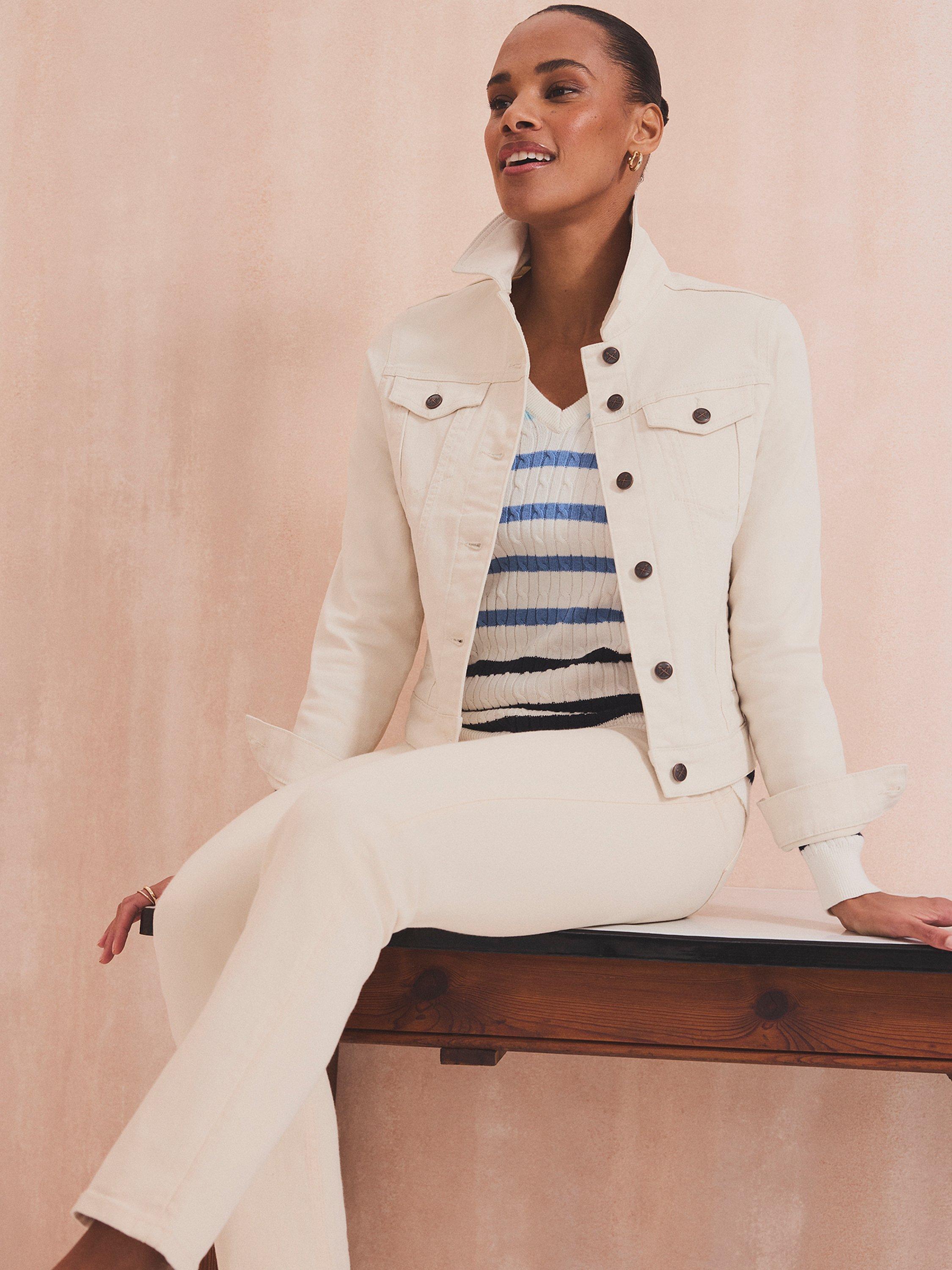 Easily layering over weekend attire, this denim jacket by Crew Clothing sits at the hips for practical coverage.