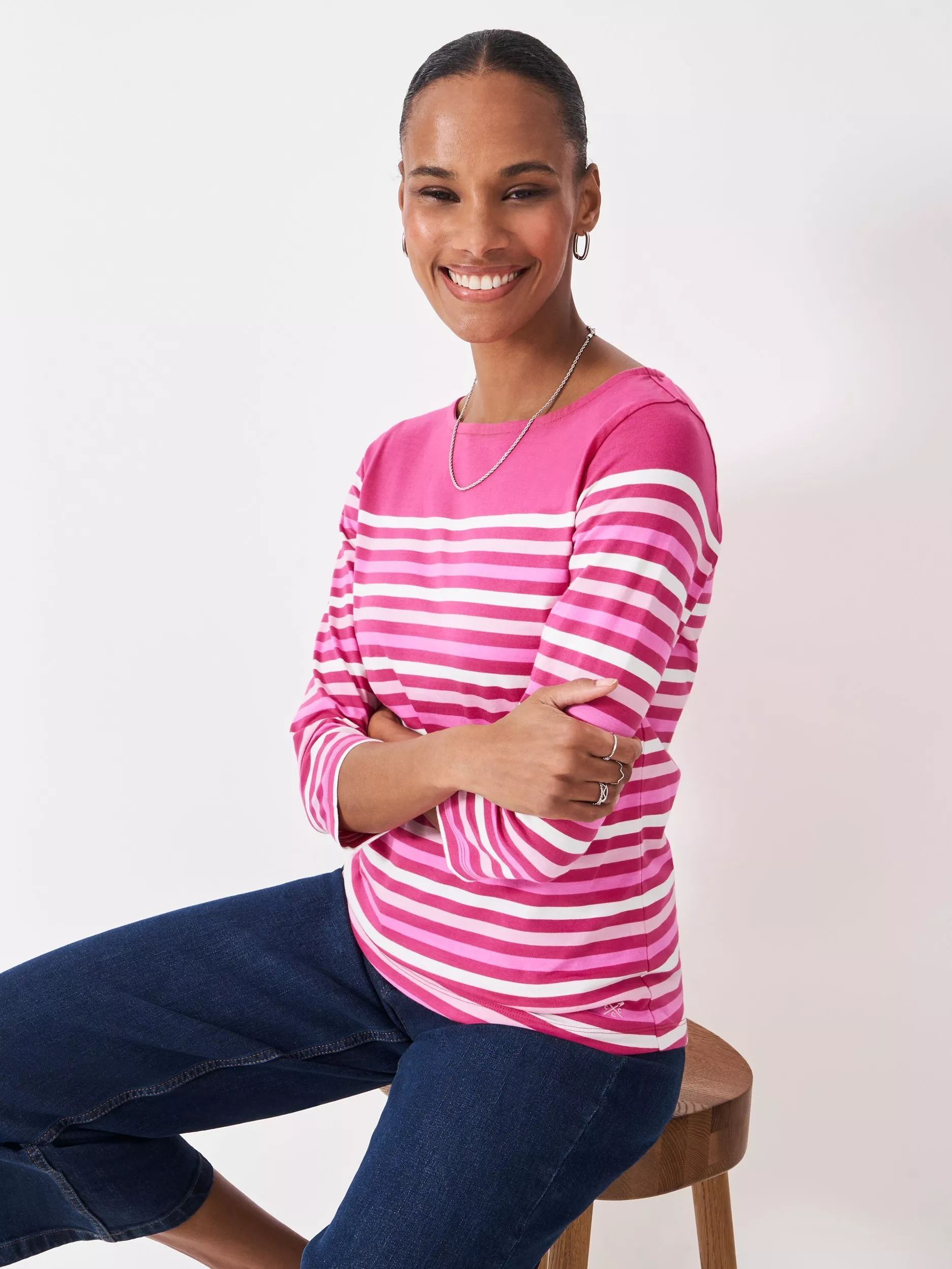 Crew's take on the classic Breton top in stripes. A wardrobe staple made from lightweight, supersoft cotton, it features a curved hem for a flattering fit and bracelet-length sleeves. Style with jeans and trainers on days off. Because stripes always look good.