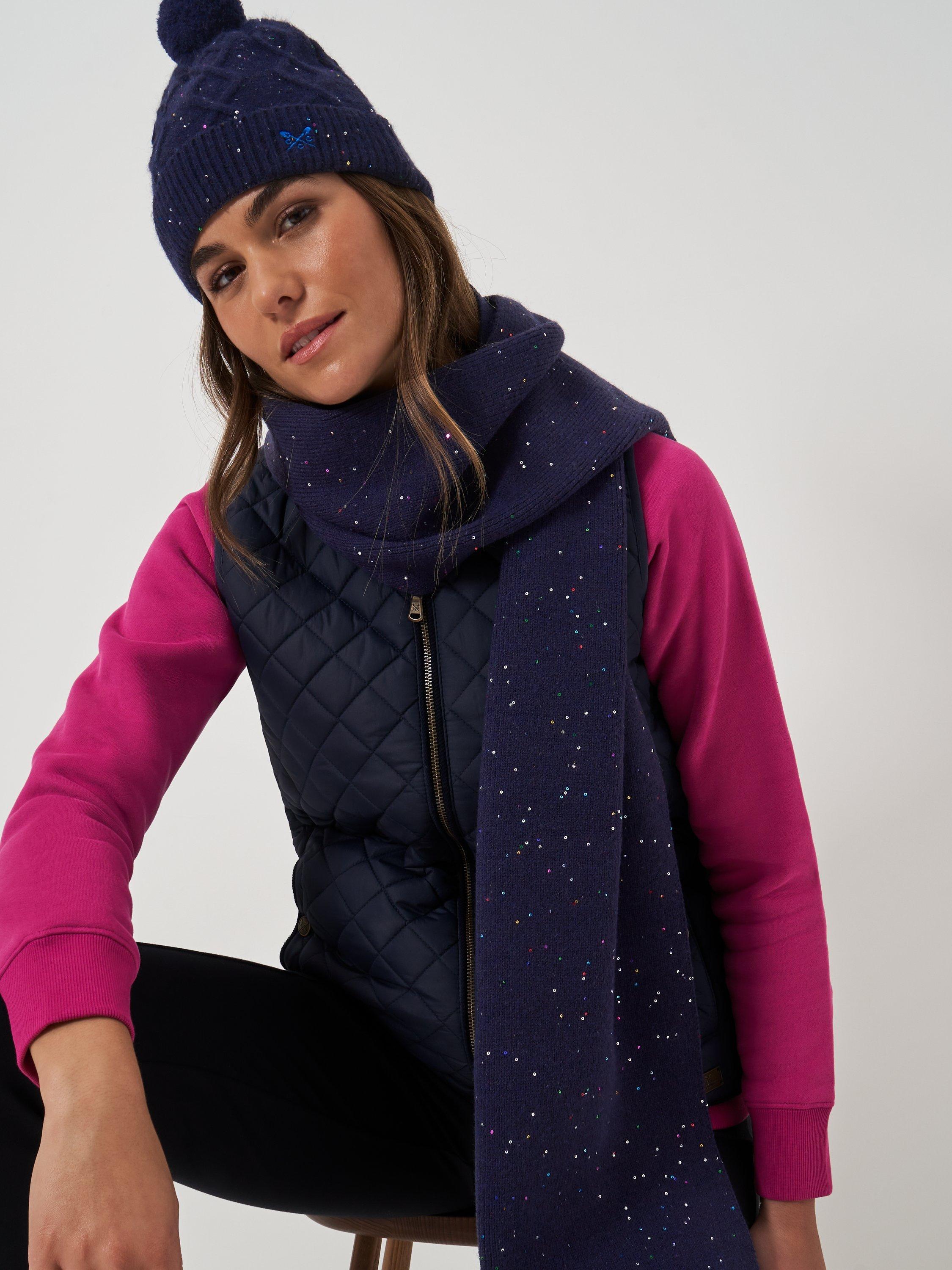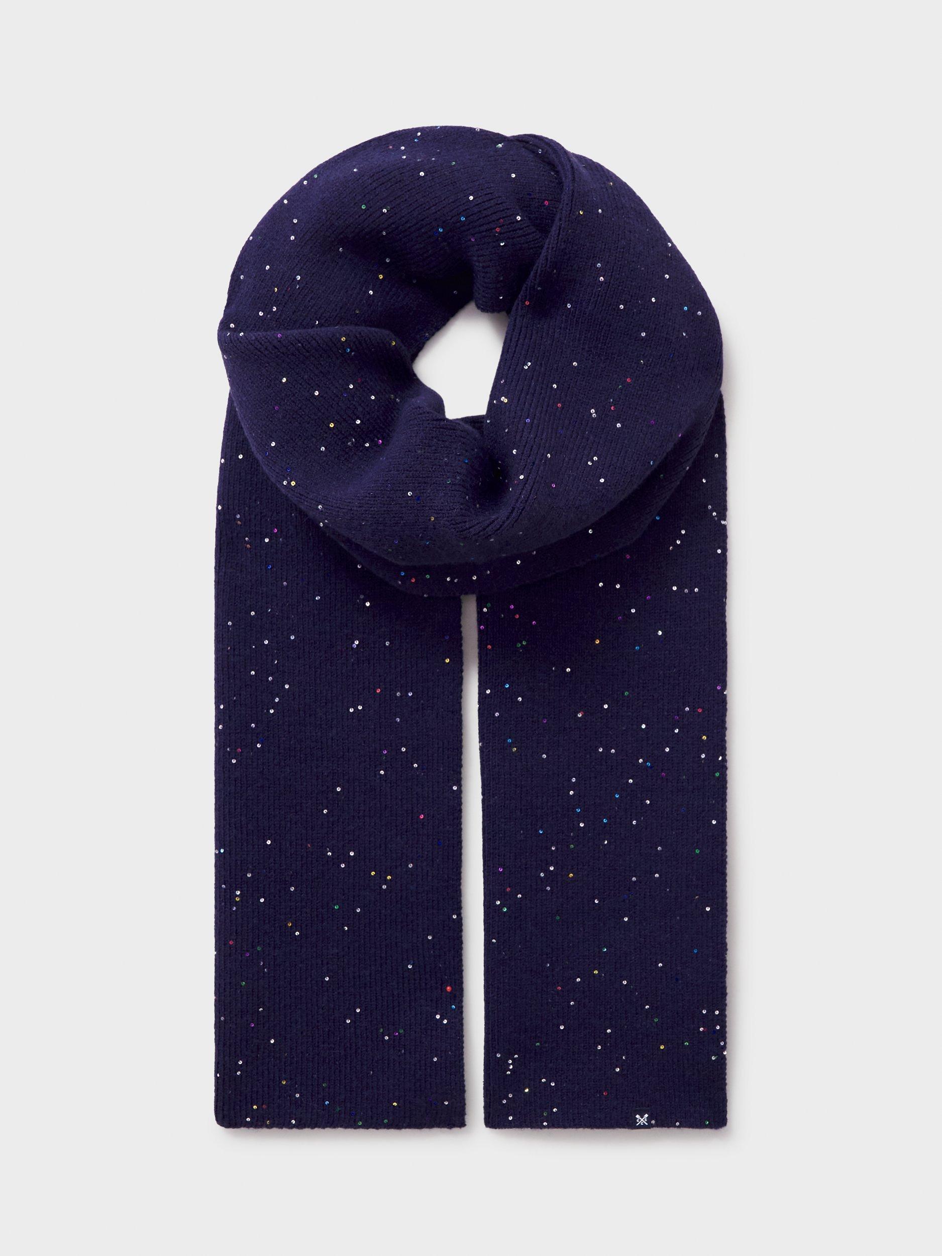 A scarf that's been crafted with sequins running throughout. Supersoft with a touch of sparkle, this accessory is soon to be a new favourite. Wrap it around on cooler days - cosy.