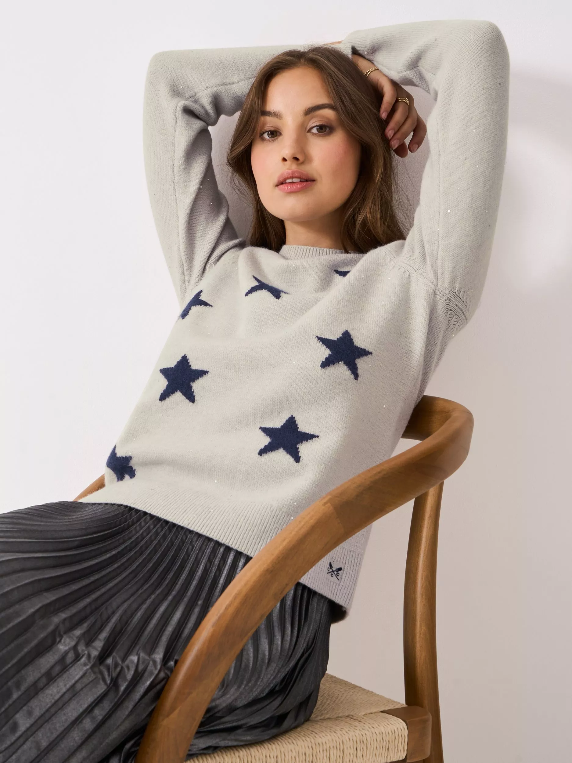 Classic with a twist: a glitterball star jumper. This softly knitted layer features a jacquard star motif detailed with glittering thread to add that something extra. Plus, notice the crossed oars embroidery - a mark of quality and style.