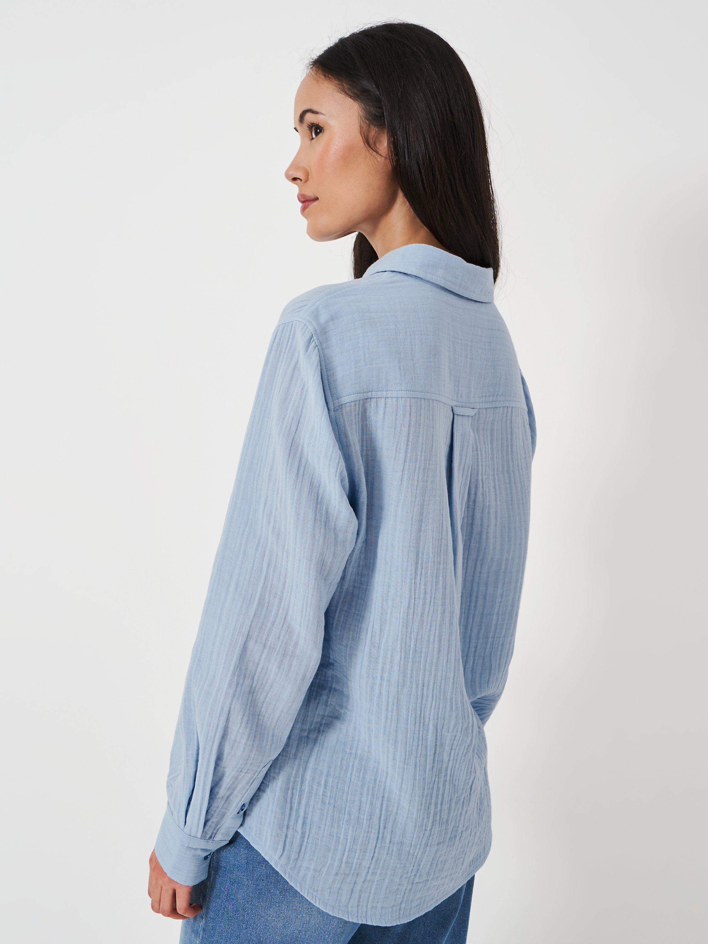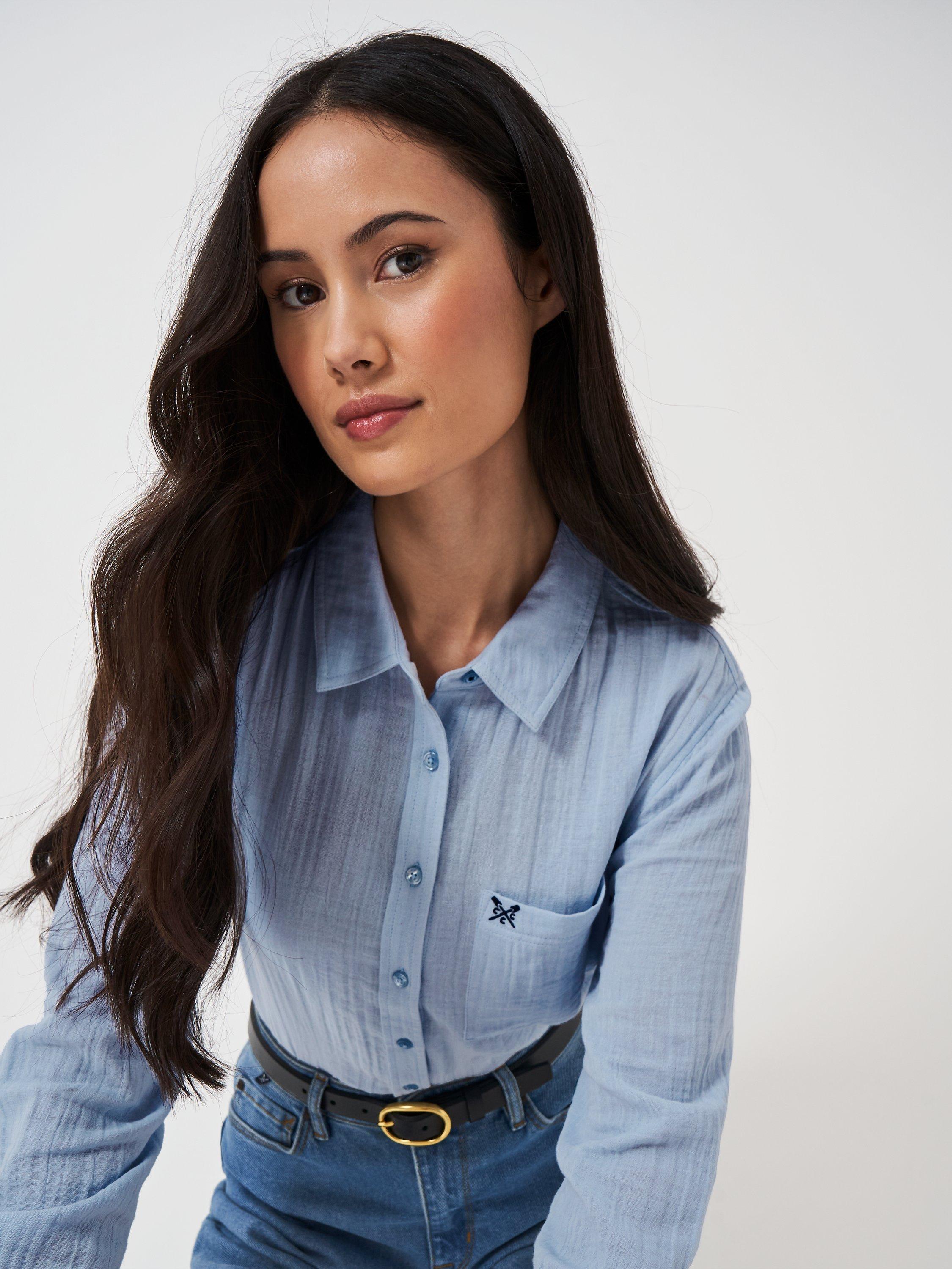 Structured with a collar and long sleeves, it is light and breathable in cotton and is an easy daytime option.