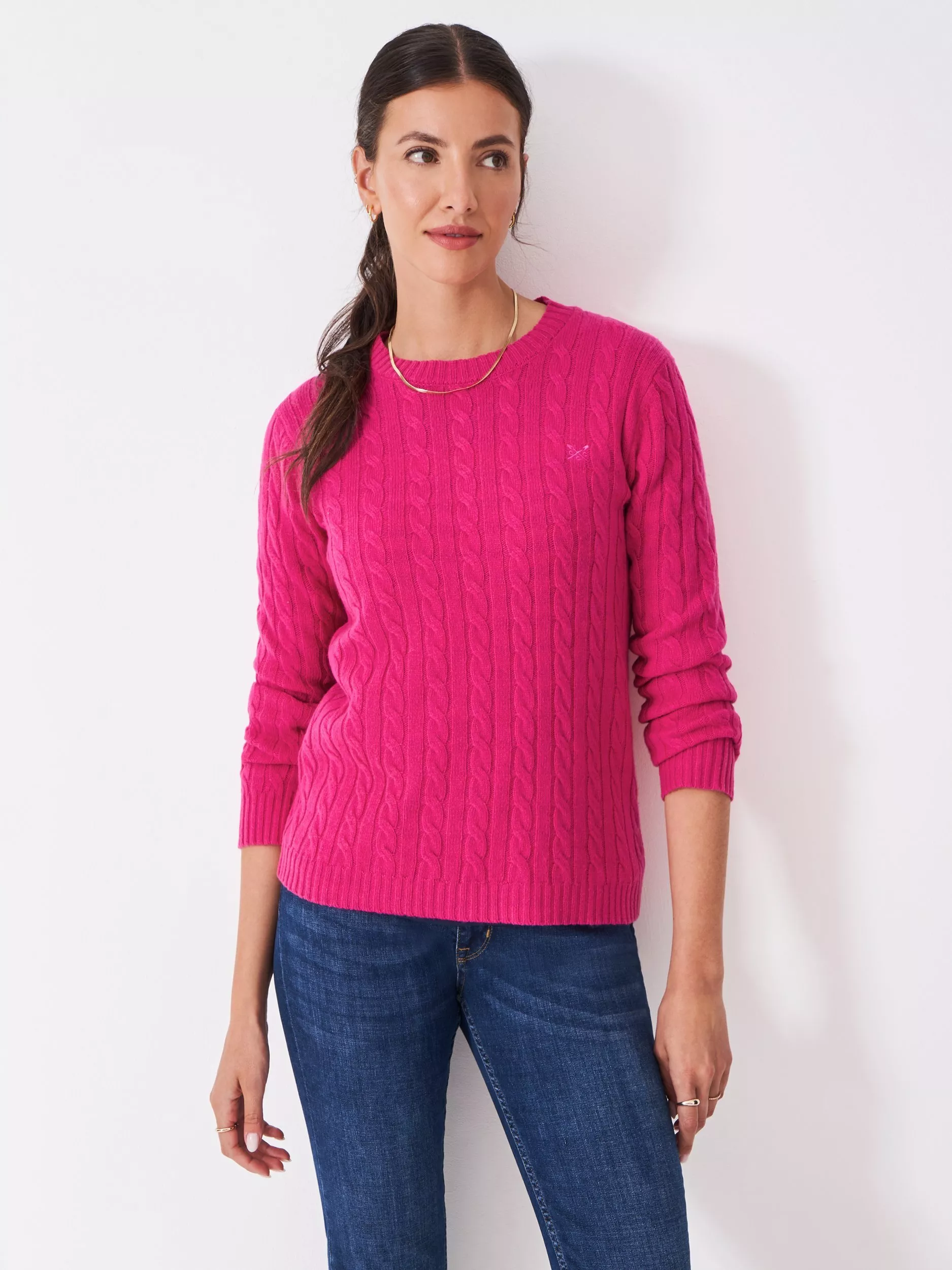 The Harmony crew neck jumper. Made from a supersoft, premium merino wool blend, this cable-stitched style would look great under your coats and jackets. The crossed oars embroidered on the hem are the perfect finishing touch. A staple piece you'll come back to all season long.