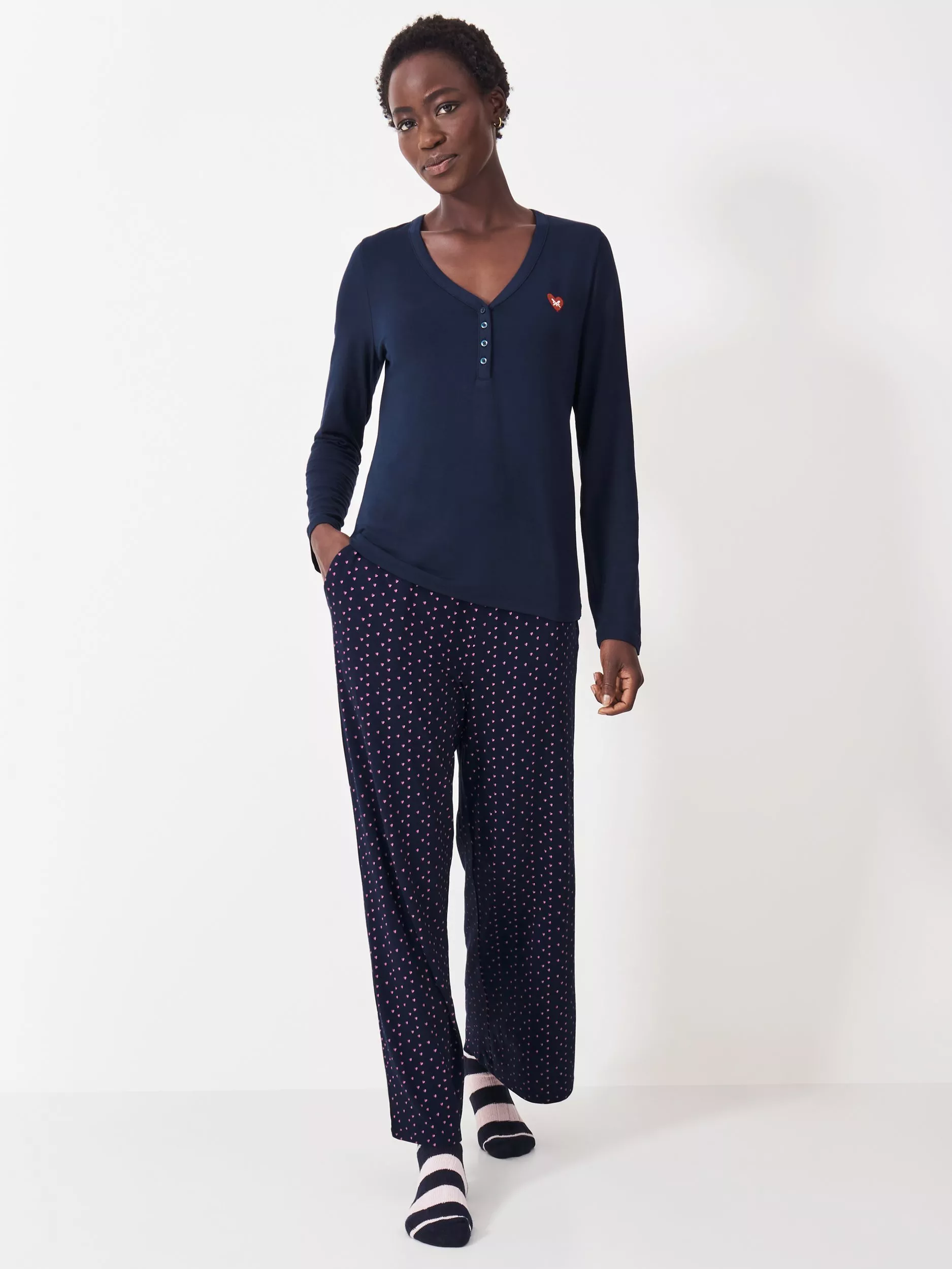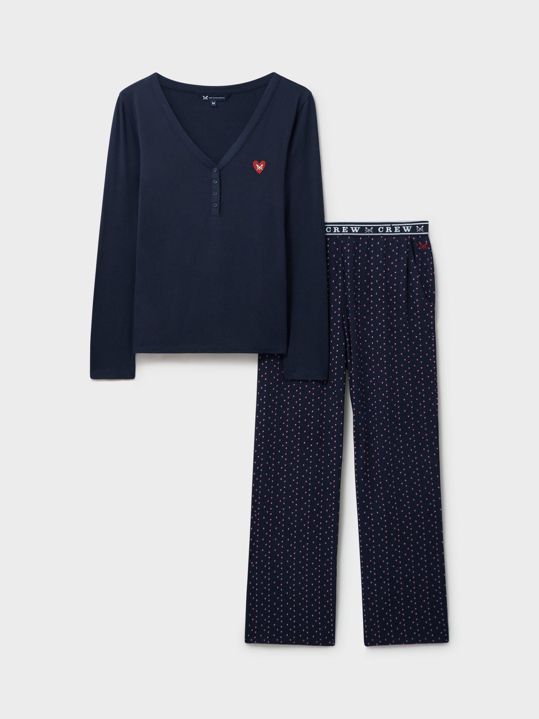 Made from supersoft, lightweight and breathable modal, this pyjama set from Crew Clothing features a pyjama top with the brand's embroidered crossed oars in a heart. The matching heart patterned pyjama bottoms are finished with a branded, elasticated waistband. This set makes a perfect present, or you might want to keep them for yourself.
