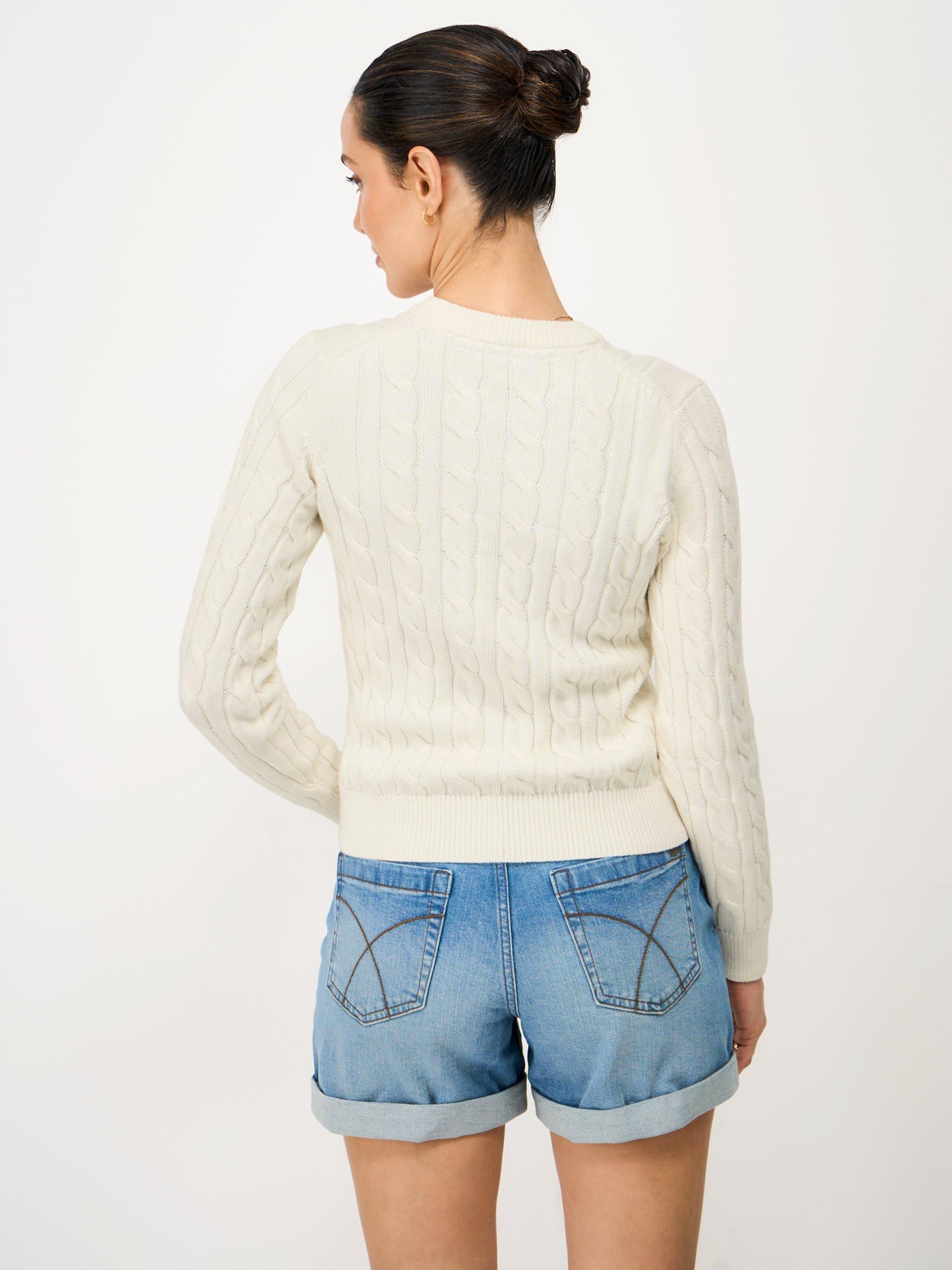 A heritage cable knit jumper. Crafted from cotton with a touch of cashmere, the twisted cable stitch is finished with ribbing on the cuffs and collar. Wear with jeans from week to weekend.