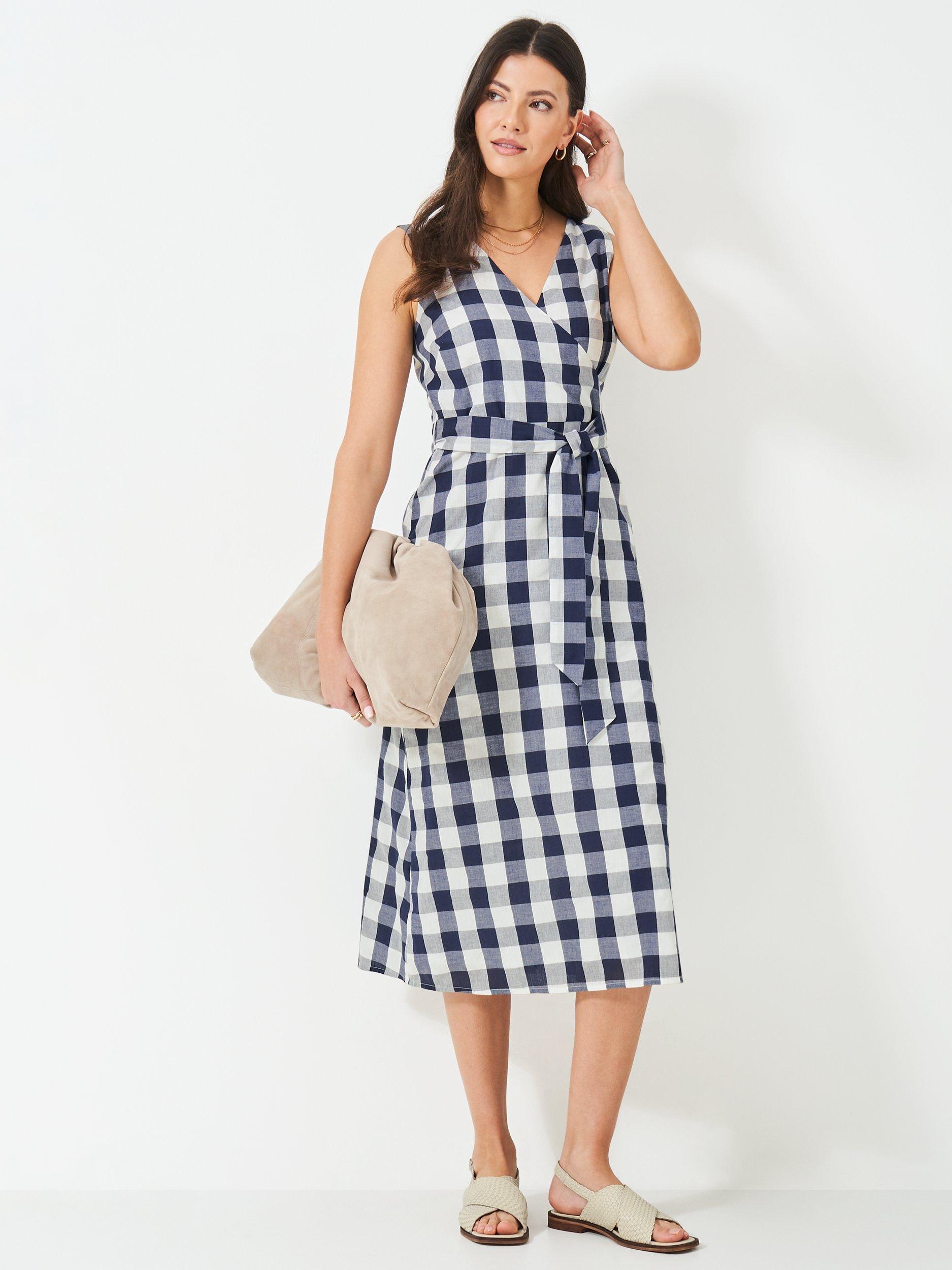 The Jenny cotton dress makes warm-weather outfitting a breeze. Boasting a gingham-check pattern, wrap-over-effect bodice, and tie-up belt to cinch in the waist, this dress is certainly not one to miss. Plus, we've added a square-shaped back detail and gently flared skirt for that classic look. Comfort and style to boot.