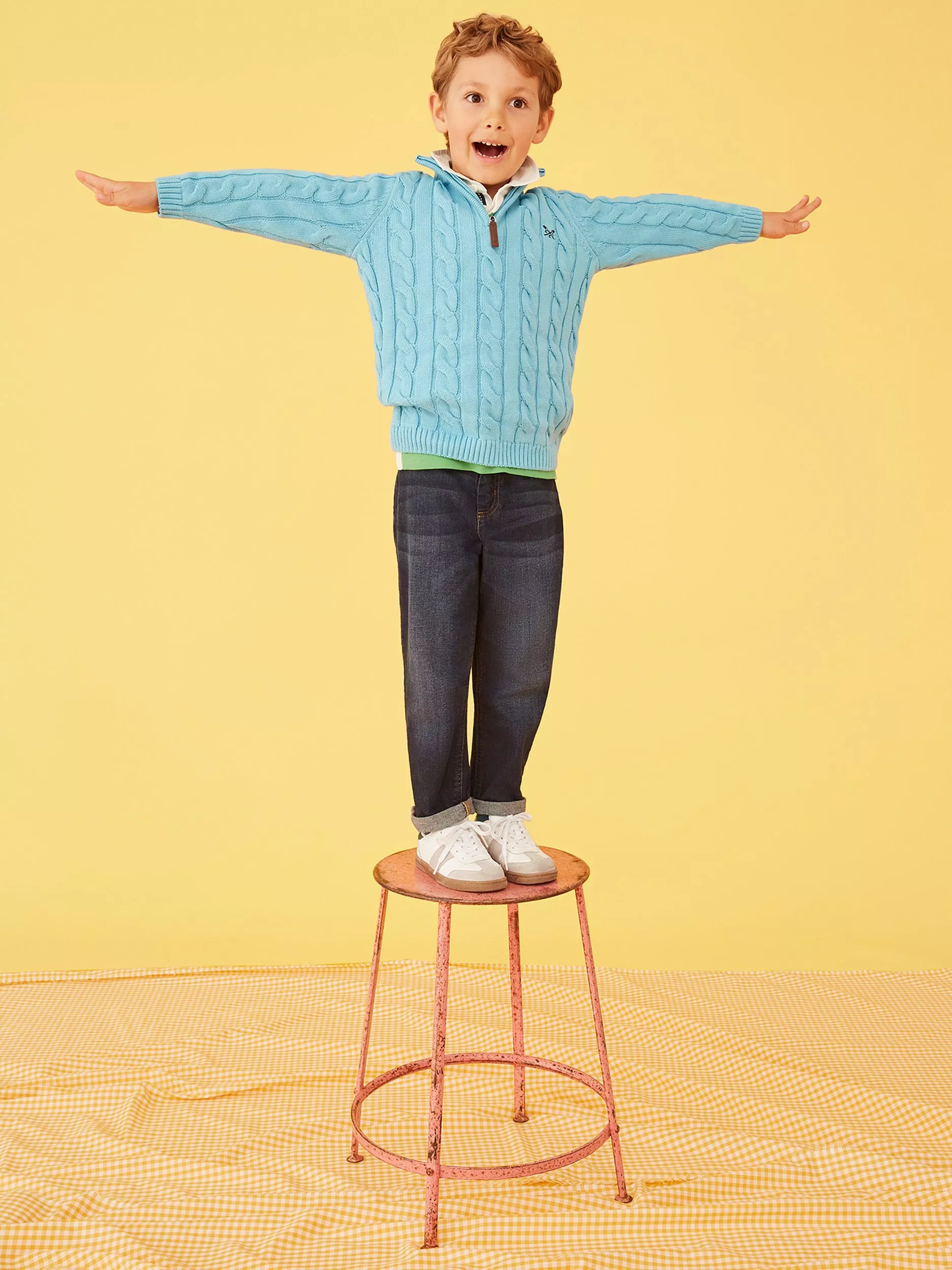 A cotton half-zip jumper. With a charming cable design, this softly knitted layer has crossed oars logo embroidery and a funnel collar. It's a classic style in a goes-with-everything colour.