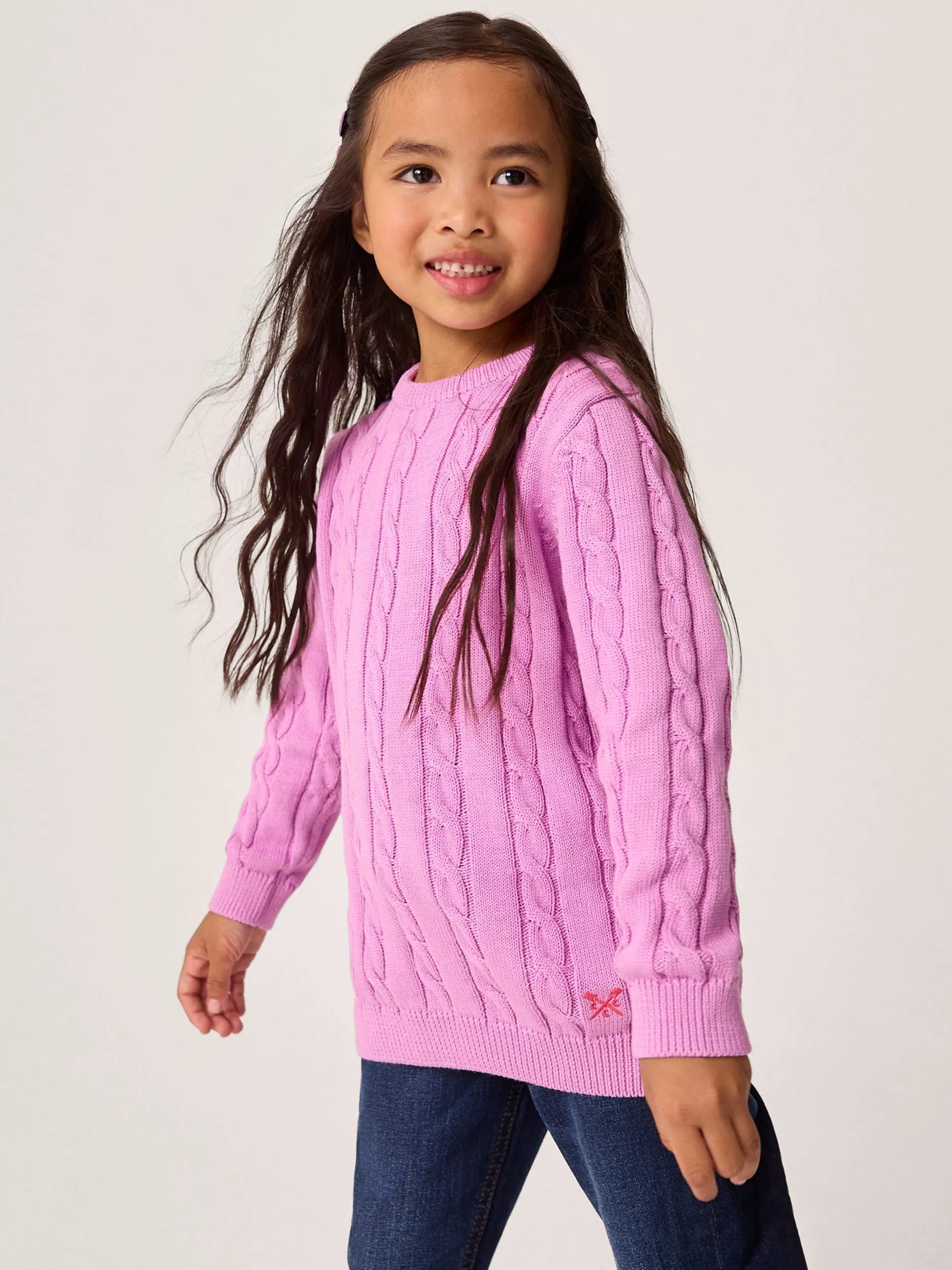 Crew ClothingKids' Heritage Cotton Cable Crew Neck Jumper, Purple, 3-4 years