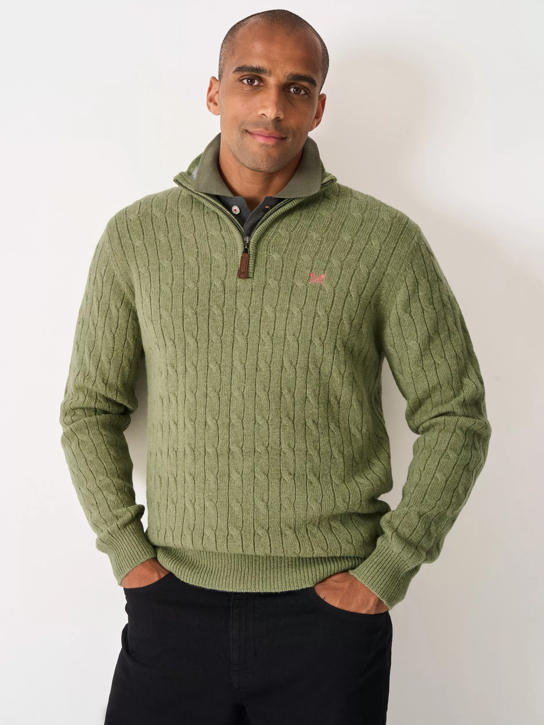 Crew ClothingLambswool Blend Cable Knit Half Zip Jumper, Jade Green