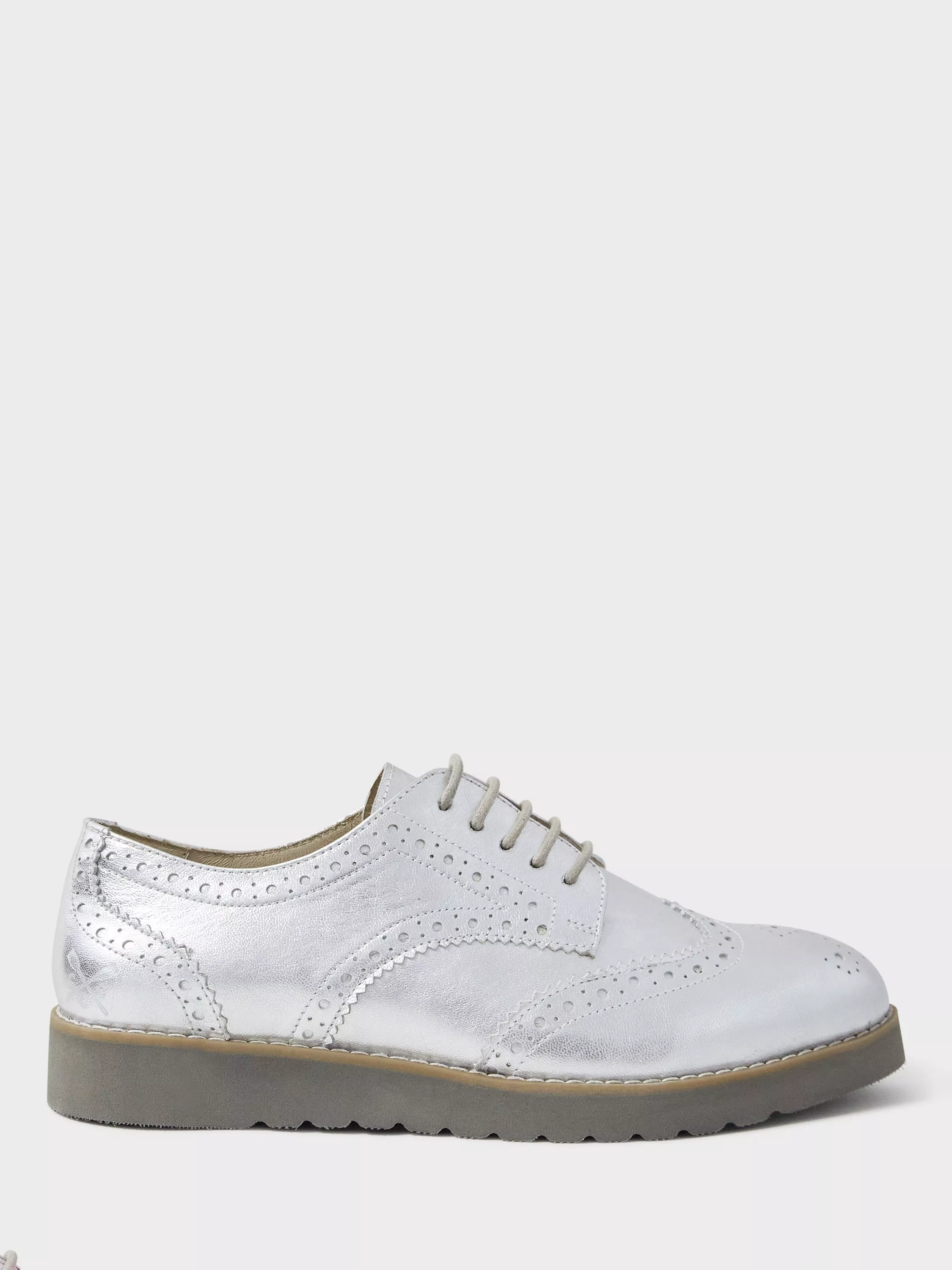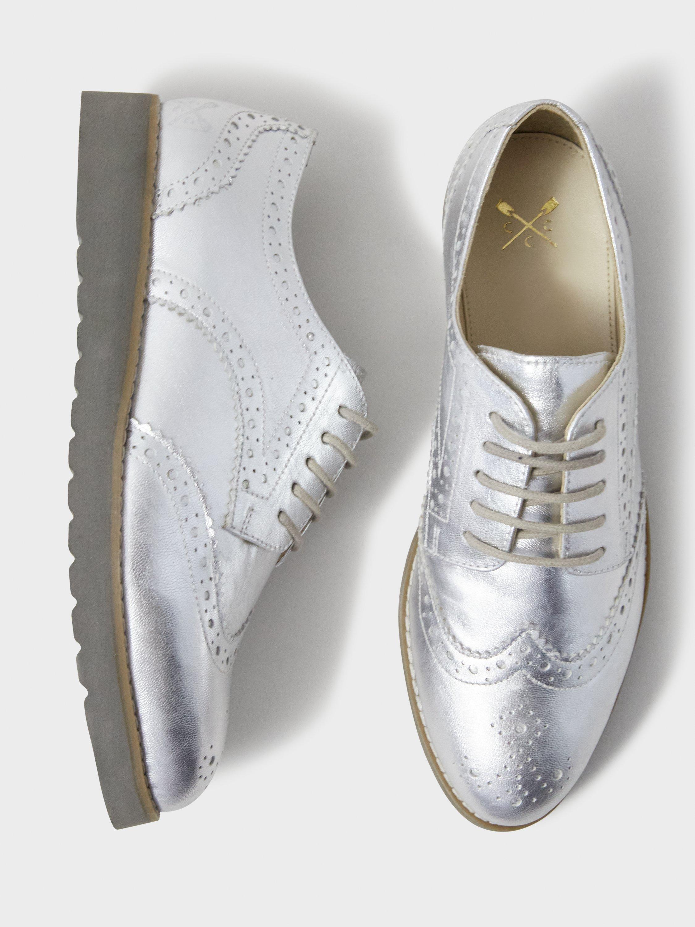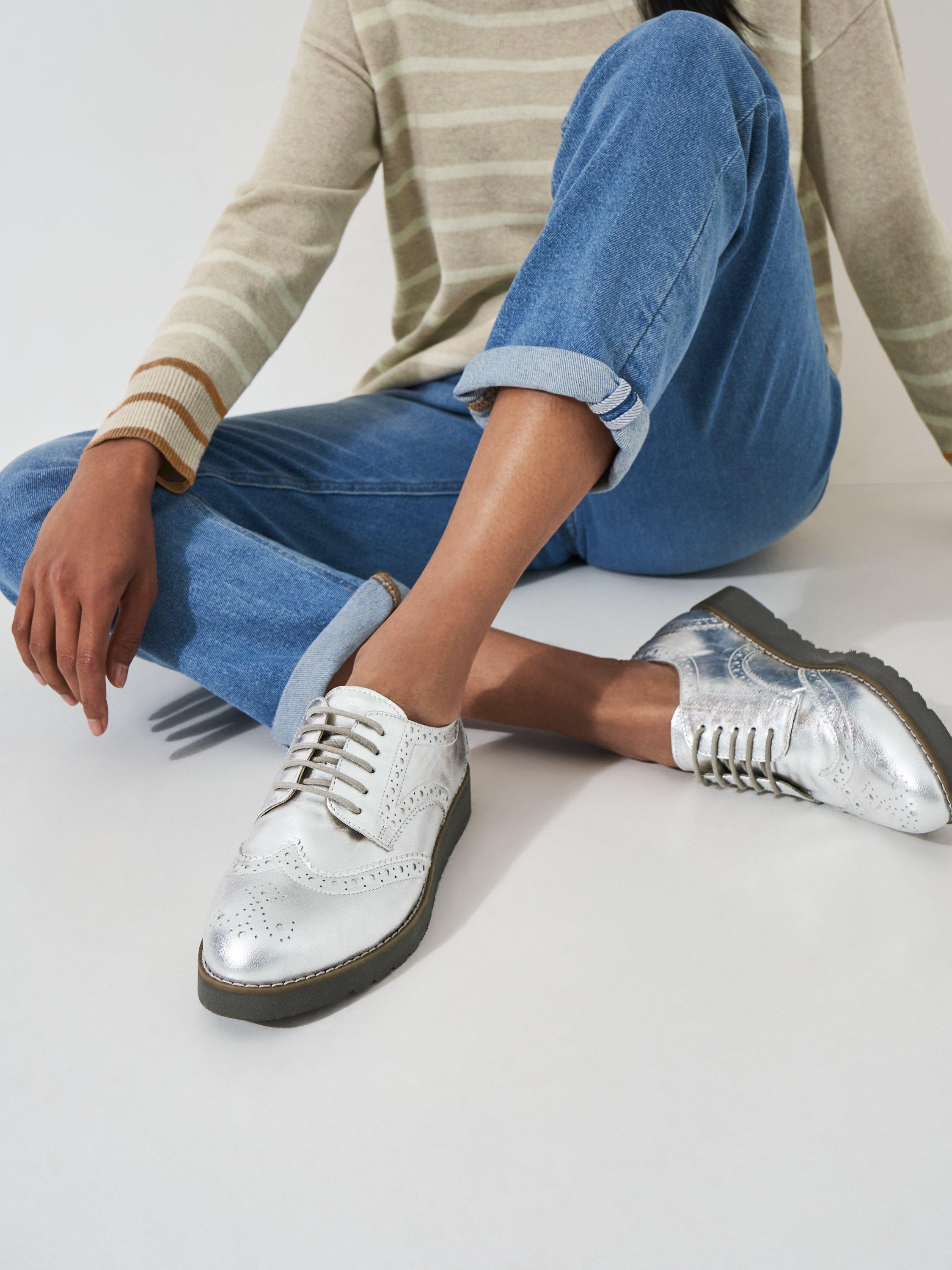 Add a contemporary twist to your outfit with Crew Clothing's Sophie brogues in metallic silver. Crafted from premium leather, these shoes are finished with a lightweight sole, classic brogue detailing and matching laces. We love them worn with black denim for a look that'll take you from day-to-evening with ease.