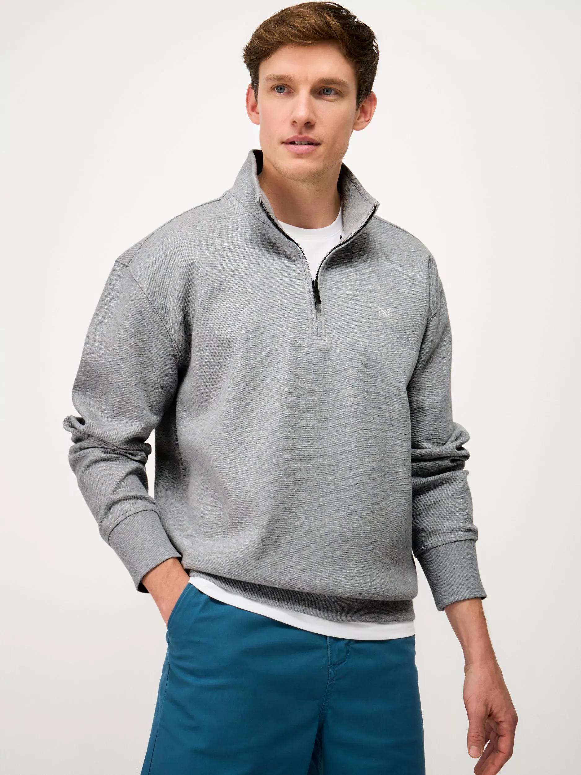 Crew ClothingPique Half-Zip Jumper, Graphite Grey