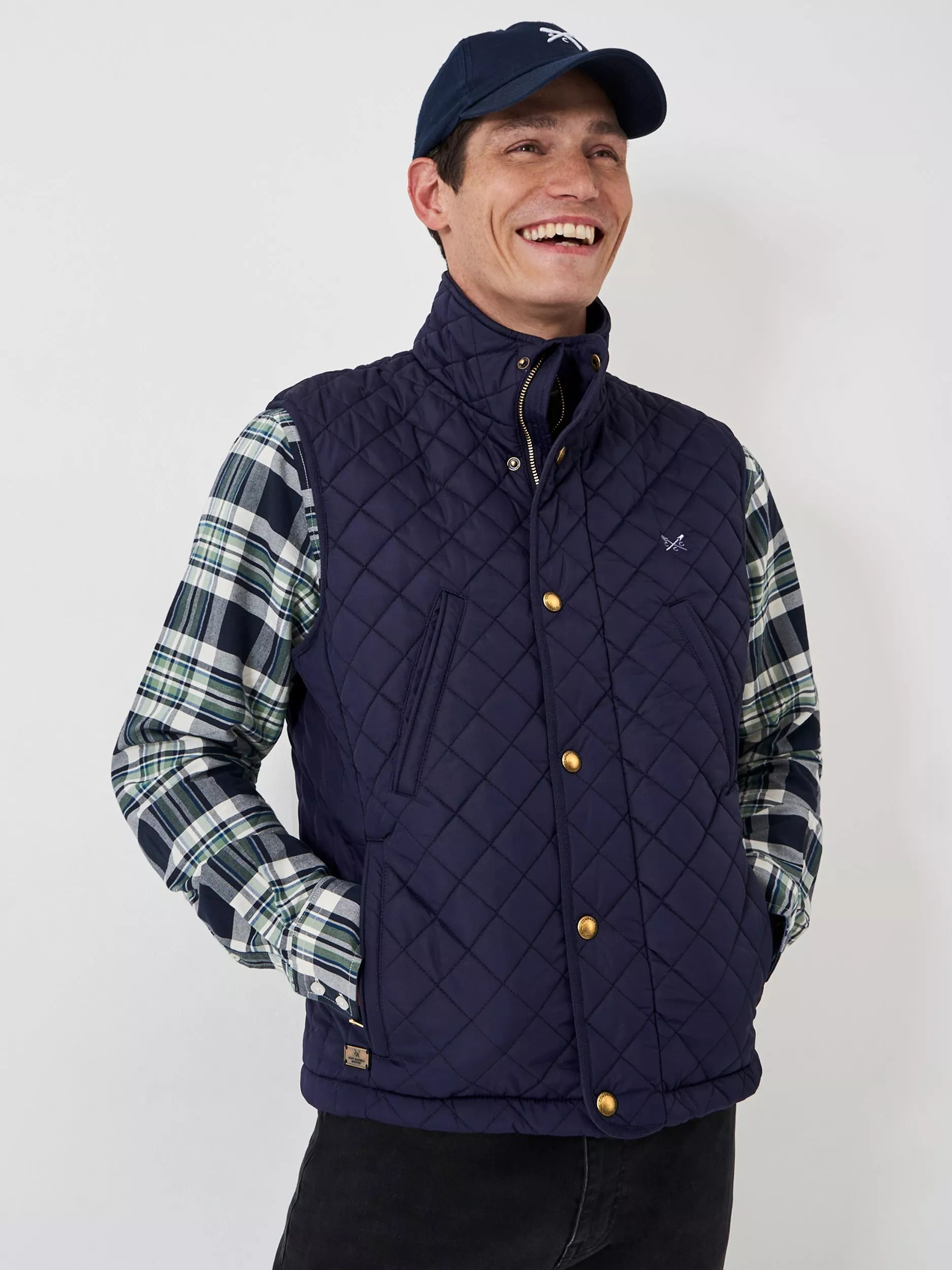 Crew Clothing's Corleigh quilted gilet. Perfect for country walks, this comfortable body warmer has plenty of pockets and signature crossed oars stitched on the chest. Layer over your favourite half zip and head out.