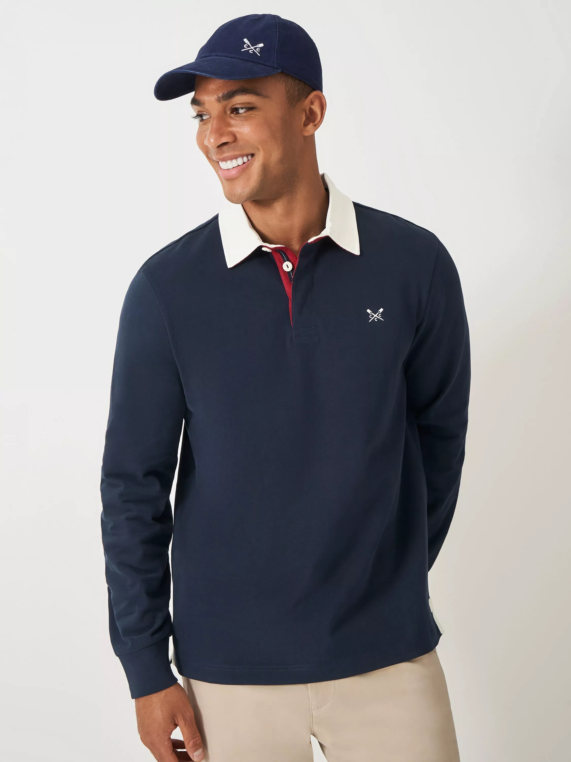A dark navy cotton rugby shirt, with a difference. Complete with hidden logo stitching under the collar and embroidered World Cup patch on the back, this signature piece is an instant classic. Pair with jeans and head out for the weekend.