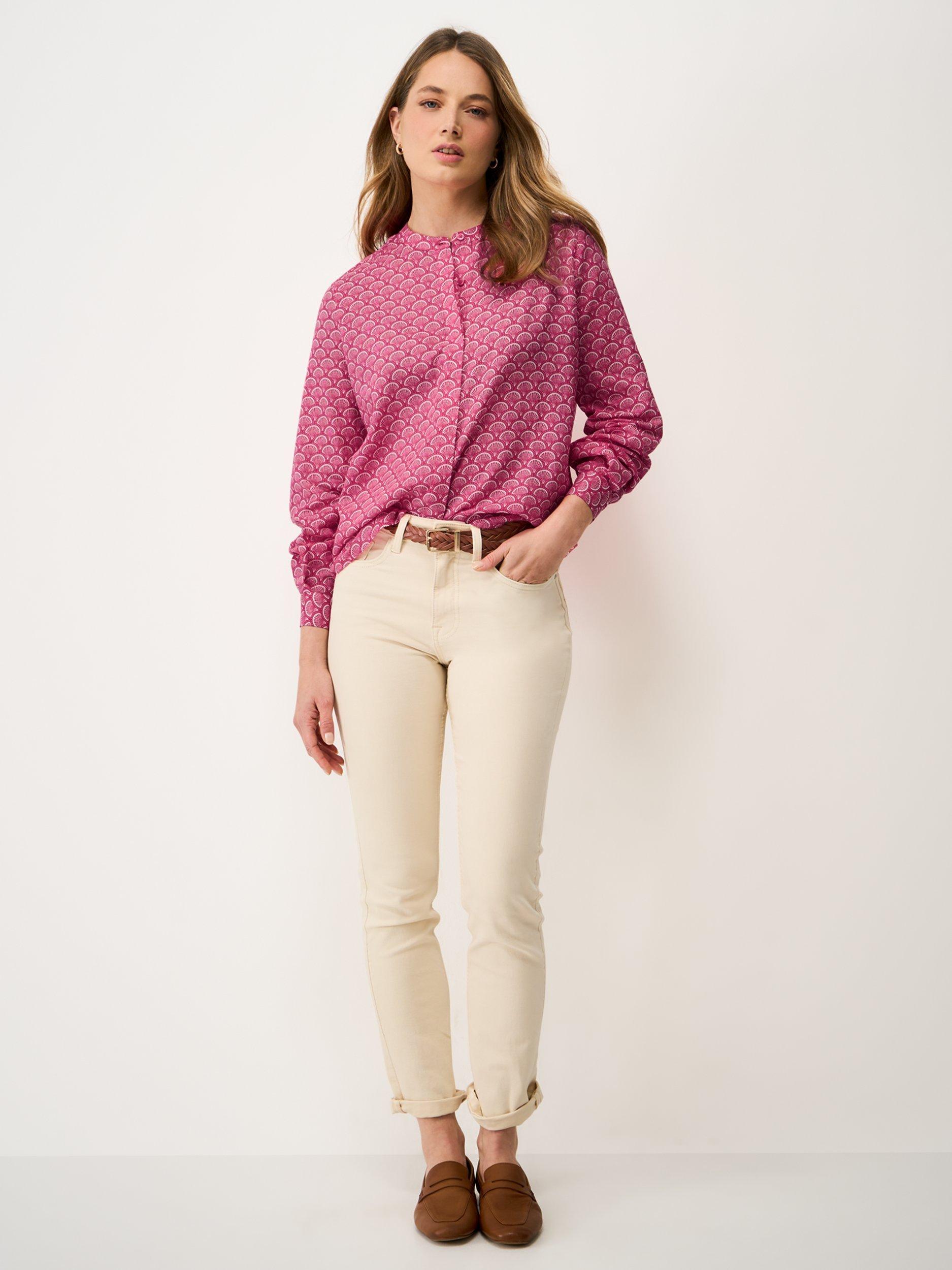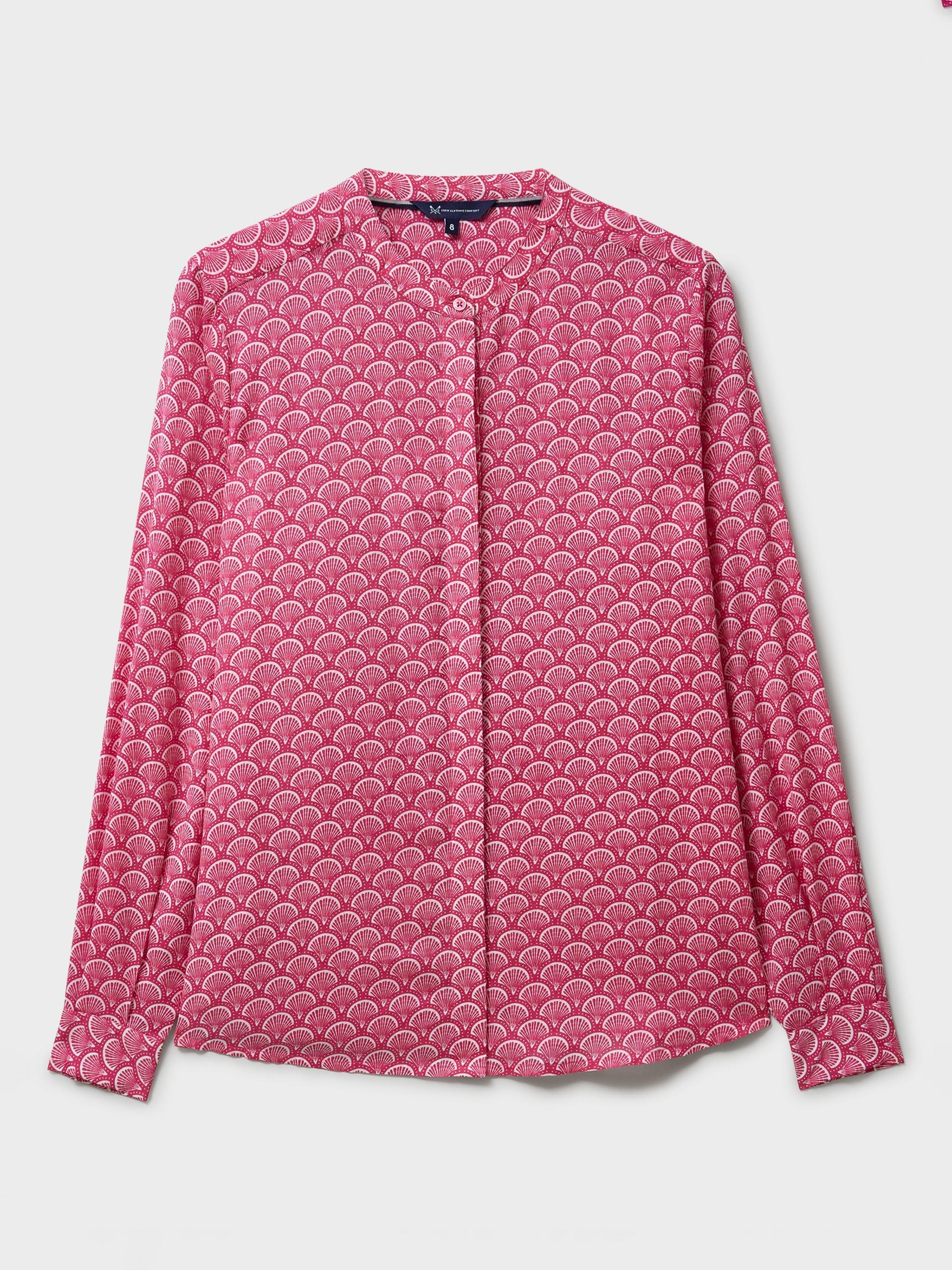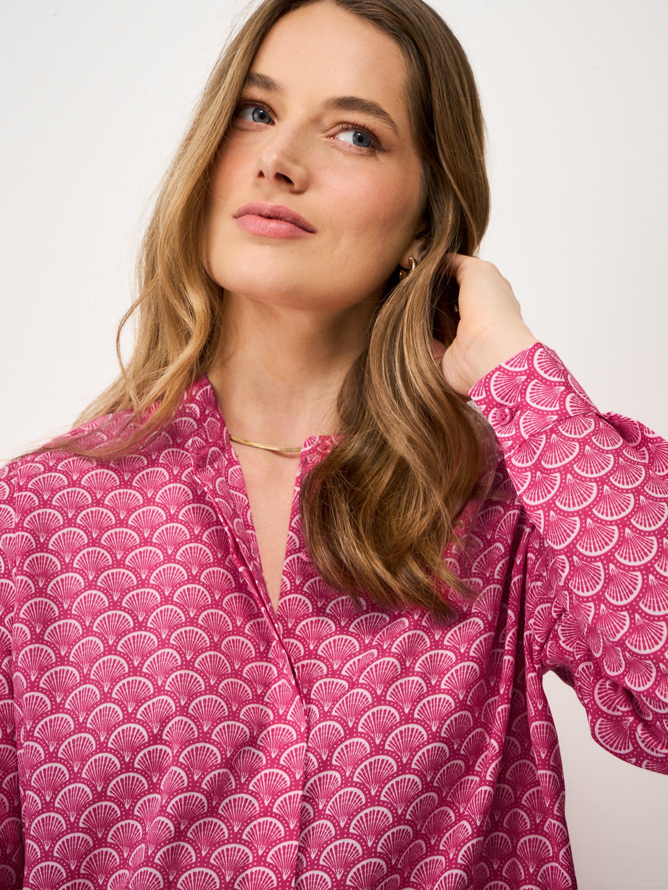 Crafted in a soft, flowy viscose and cotton blend, this elegant top is patterned with a shell print and fitted with hidden buttons on the front. Long sleeves fasten with fabric-covered buttons on the cuffs. It's styled in a slightly relaxed fit through the body for a flattering look. Easy to dress up or down for everyday wear.