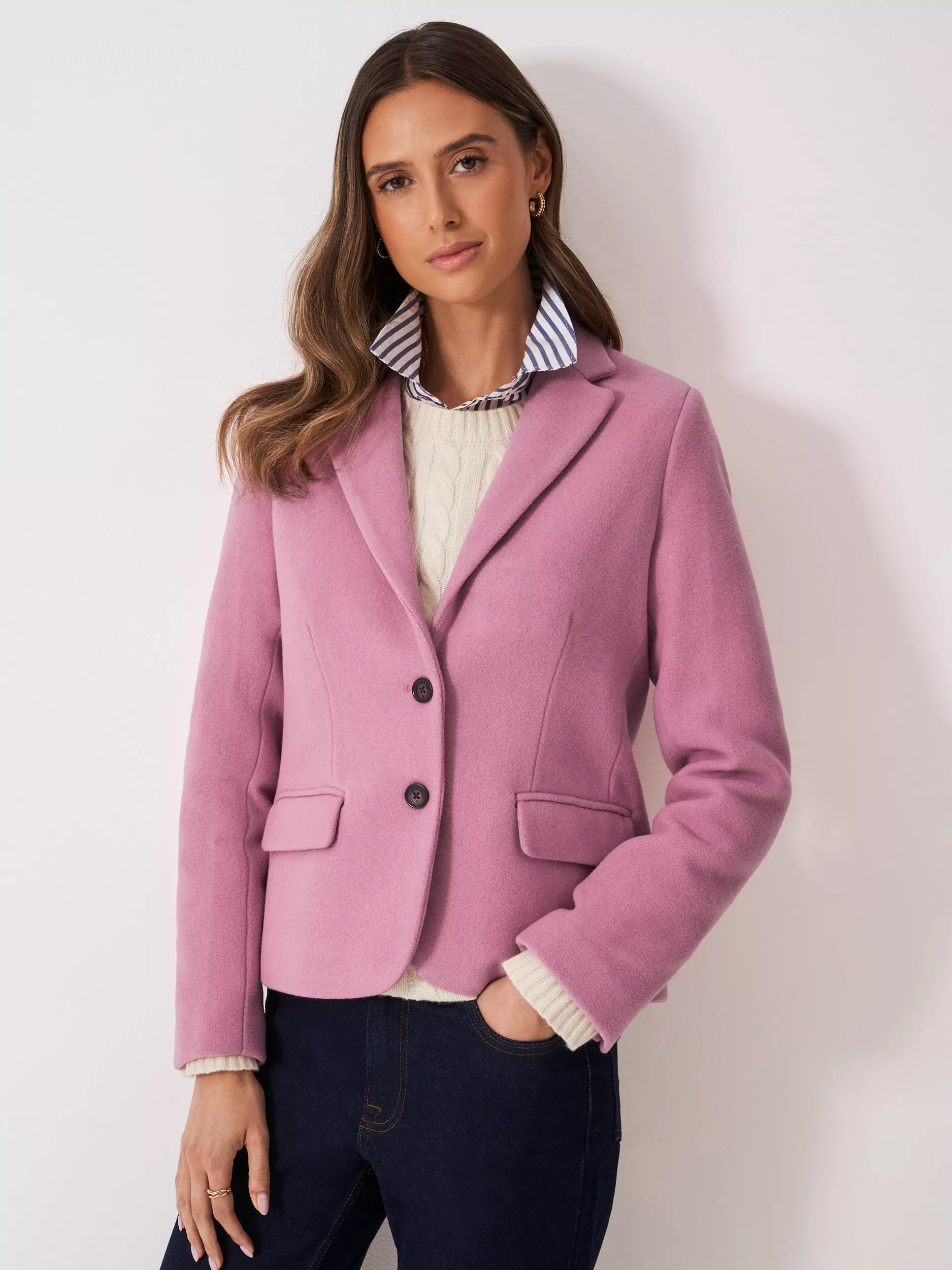 The touch of wool adds warmth to this classic design, which Crew Clothing have tailored for a flattering fit. As a finishing touch, Crew Clothing have added mock horn buttons, flap pockets and hidden embroidery under the collar. Style over a shirt for a timeless look, or team with jeans for a contemporary twist.
