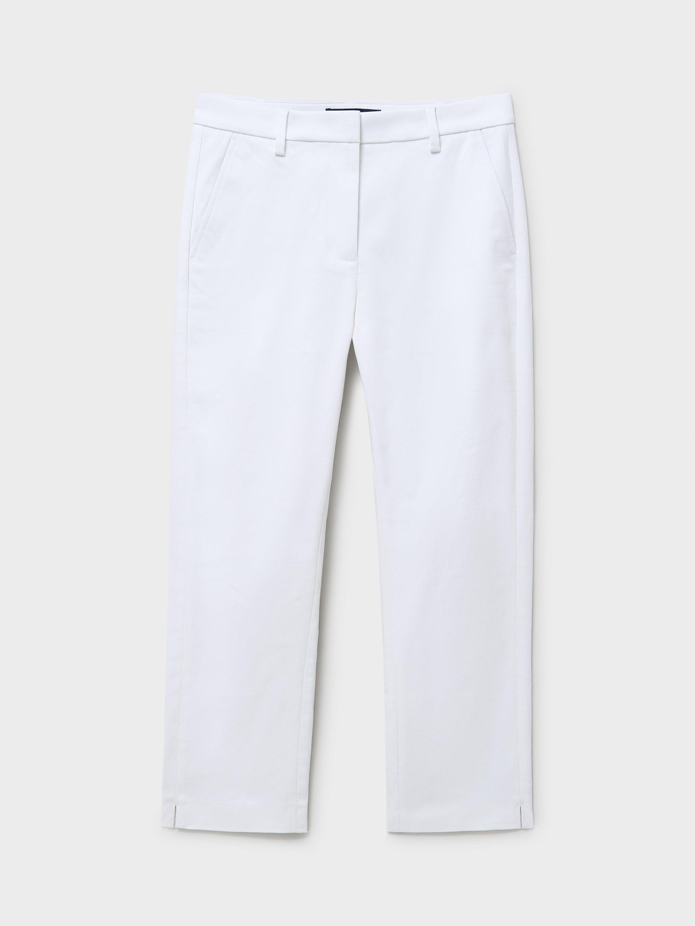 A pair of cropped chino trousers by Crew Clothing. Crafted in a soft cotton blend with added stretch, they're designed with cleverly placed darts and a tapered silhouette, ensuring a comfortable, flattering fit.