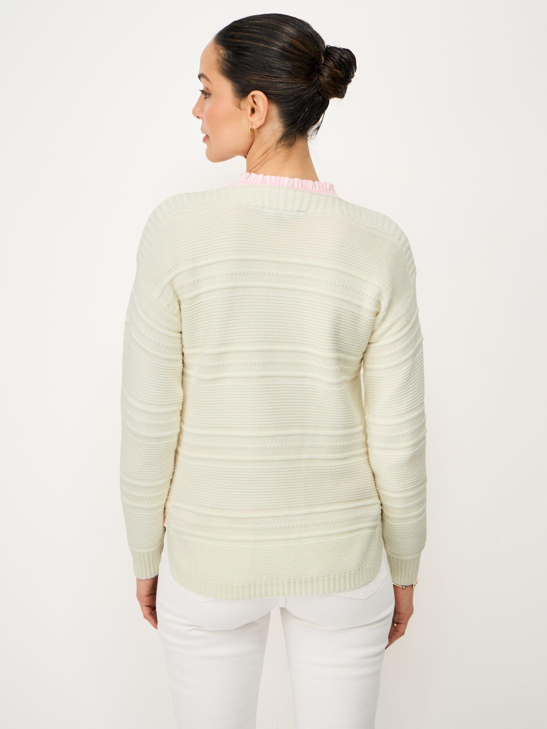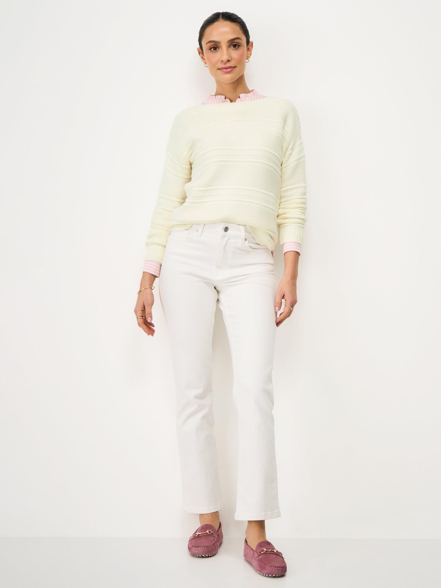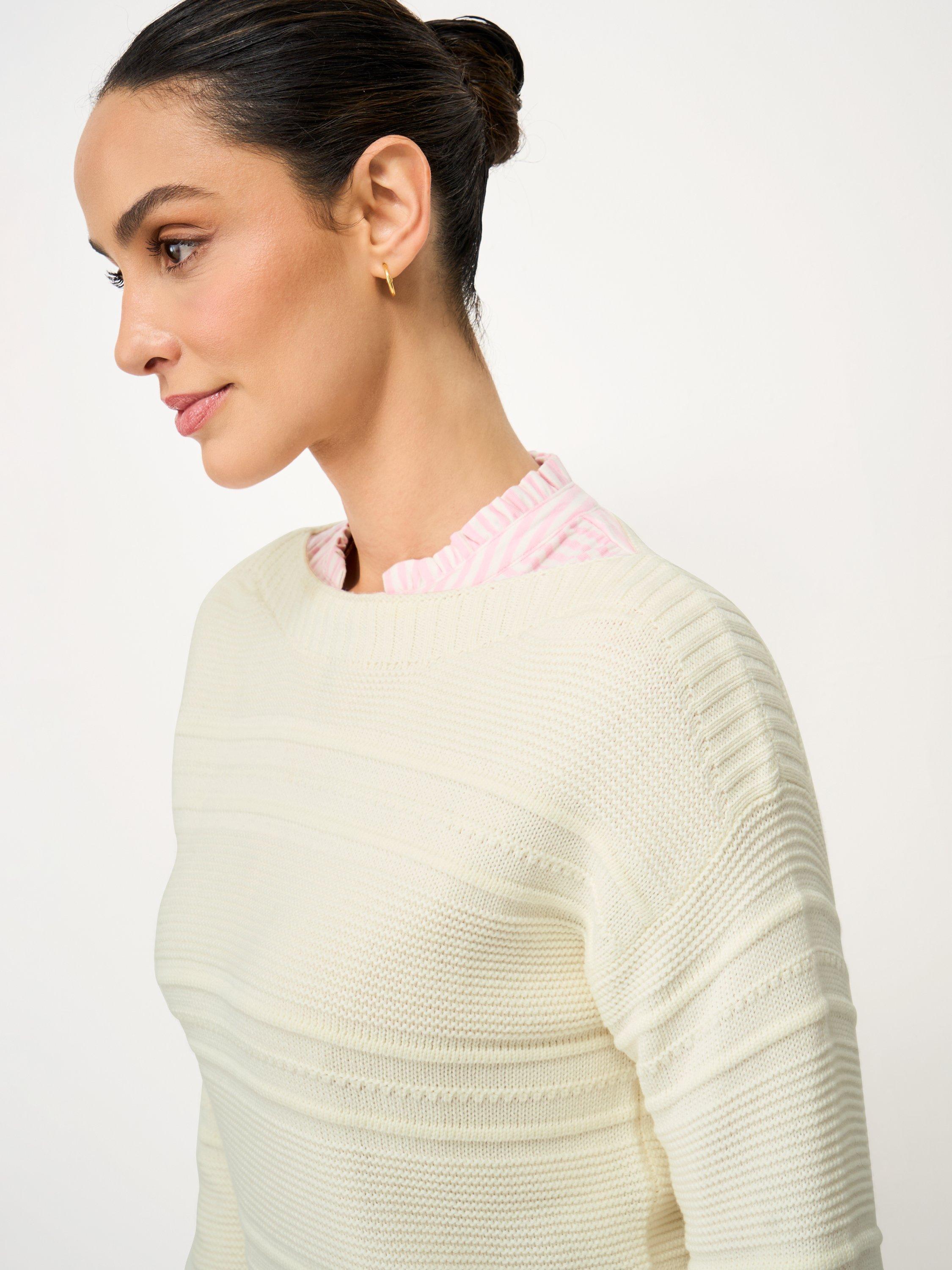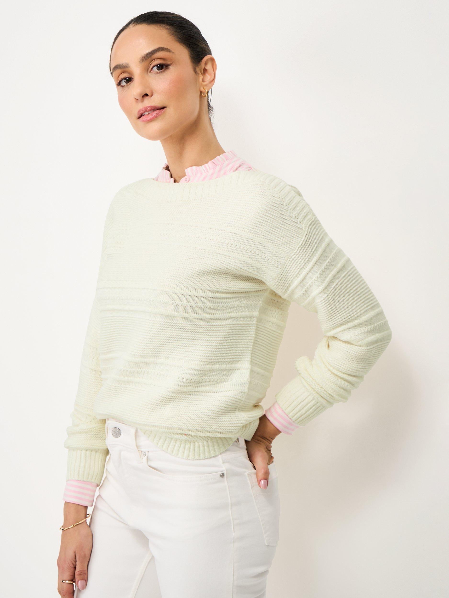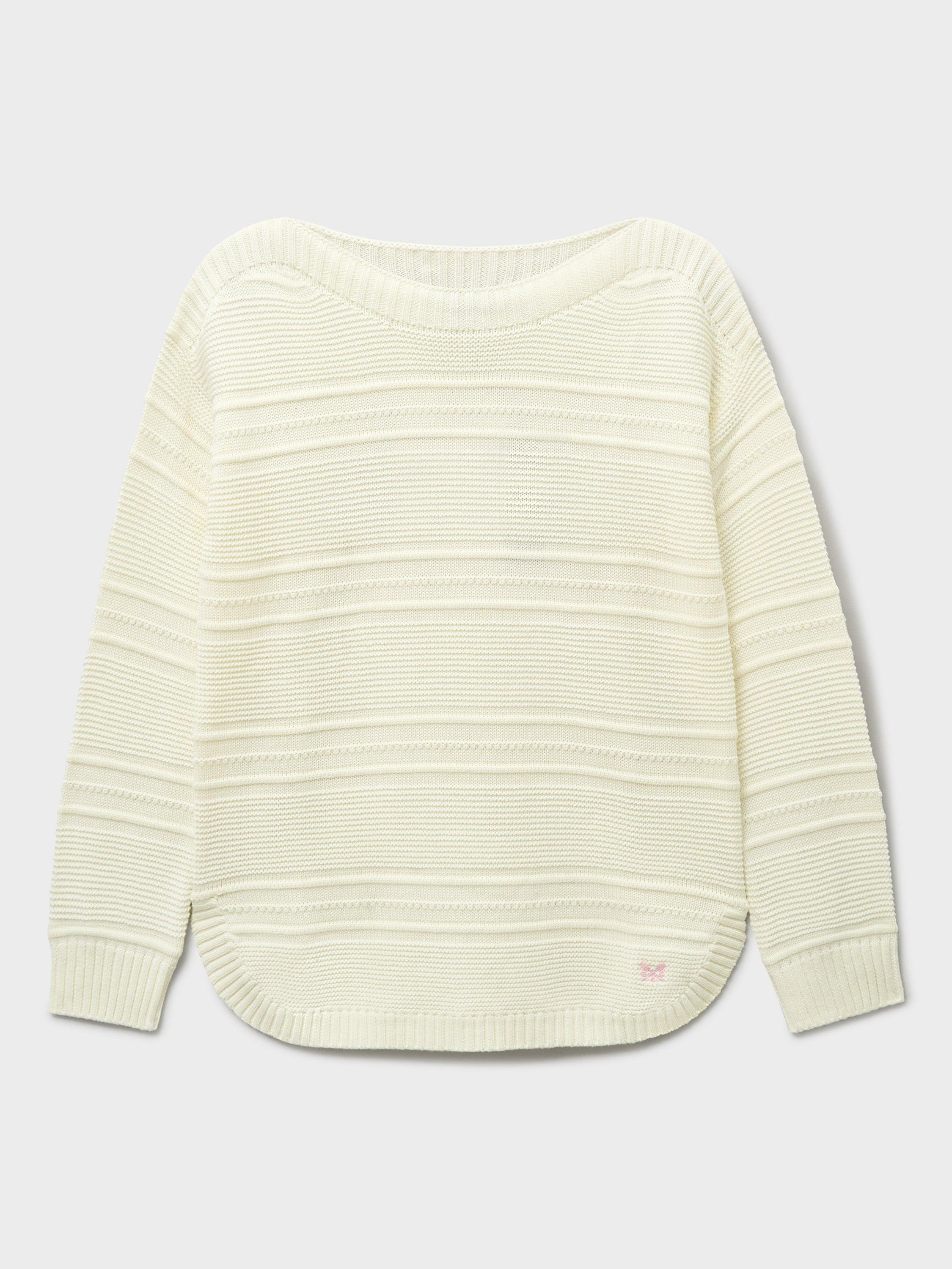 This jumper has been crafted from a cotton, acrylic mix. Super soft and hardwearing, it's been designed with a curved split hem, ribbed hems and a subtle striped stitching. Pair with boxy light jeans and A-line skirts - this knit deserves a spot in your wardrobe.