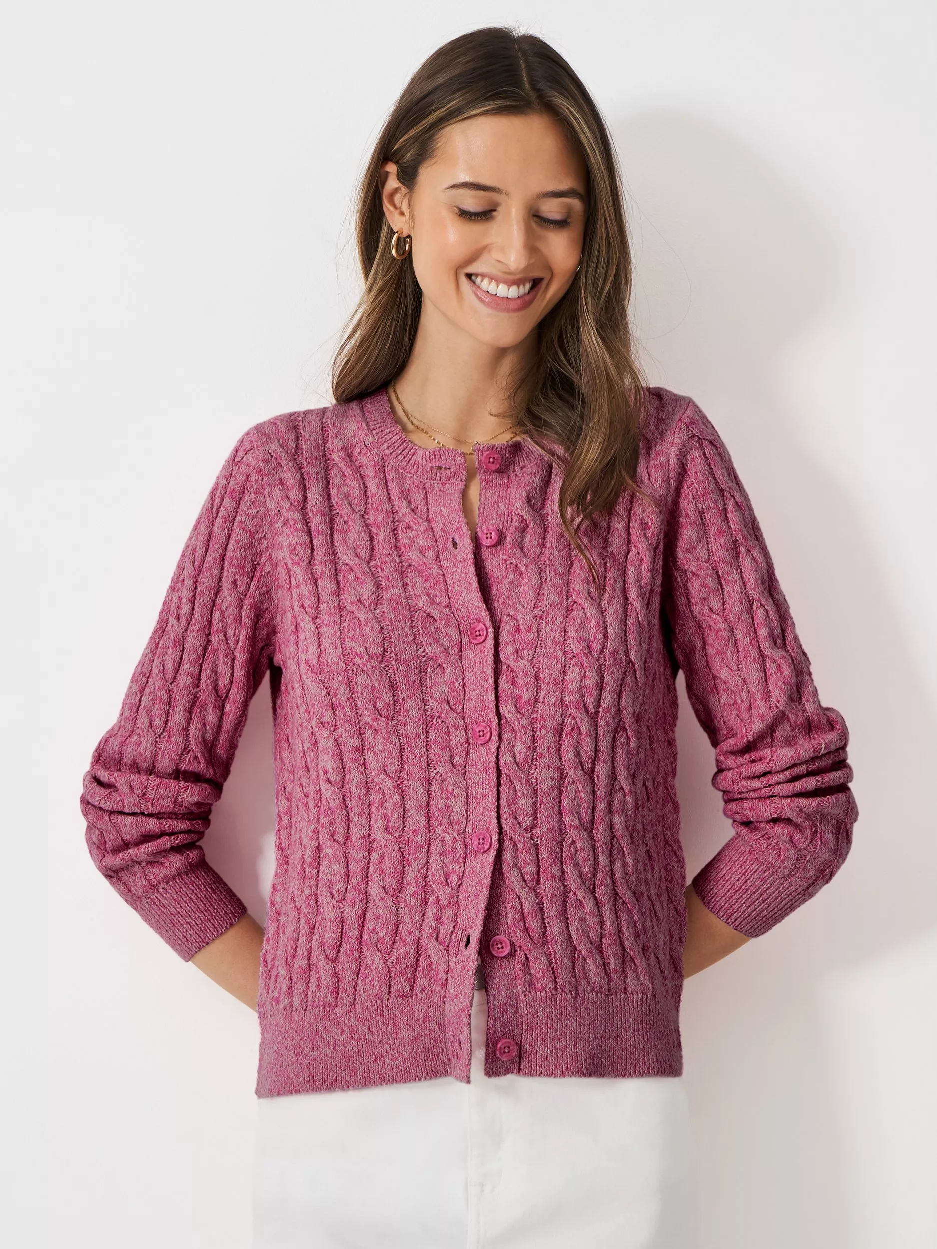 Crew ClothingTwist Cable Knit Cardigan, Light Pink