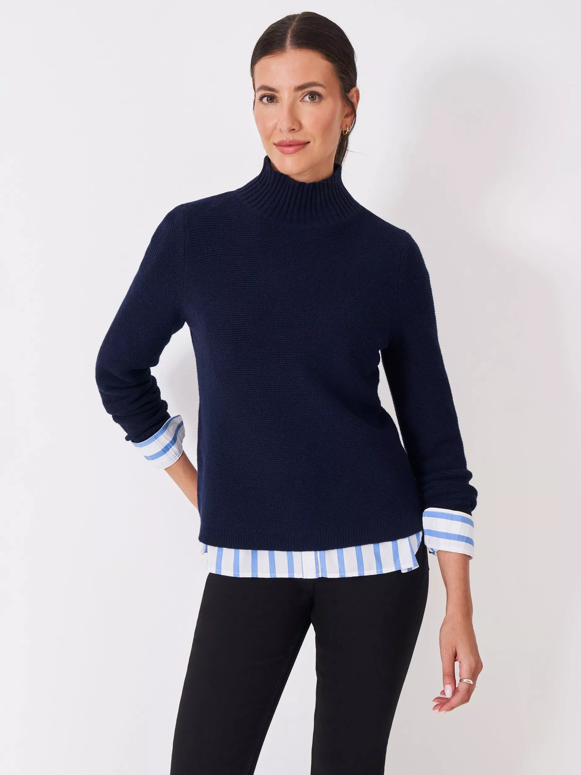 Making layering up easy with a high neckline and long sleeves, this mid-weight jumper by Crew Clothing perfectly aligns comfort and quality in a merino wool blend.