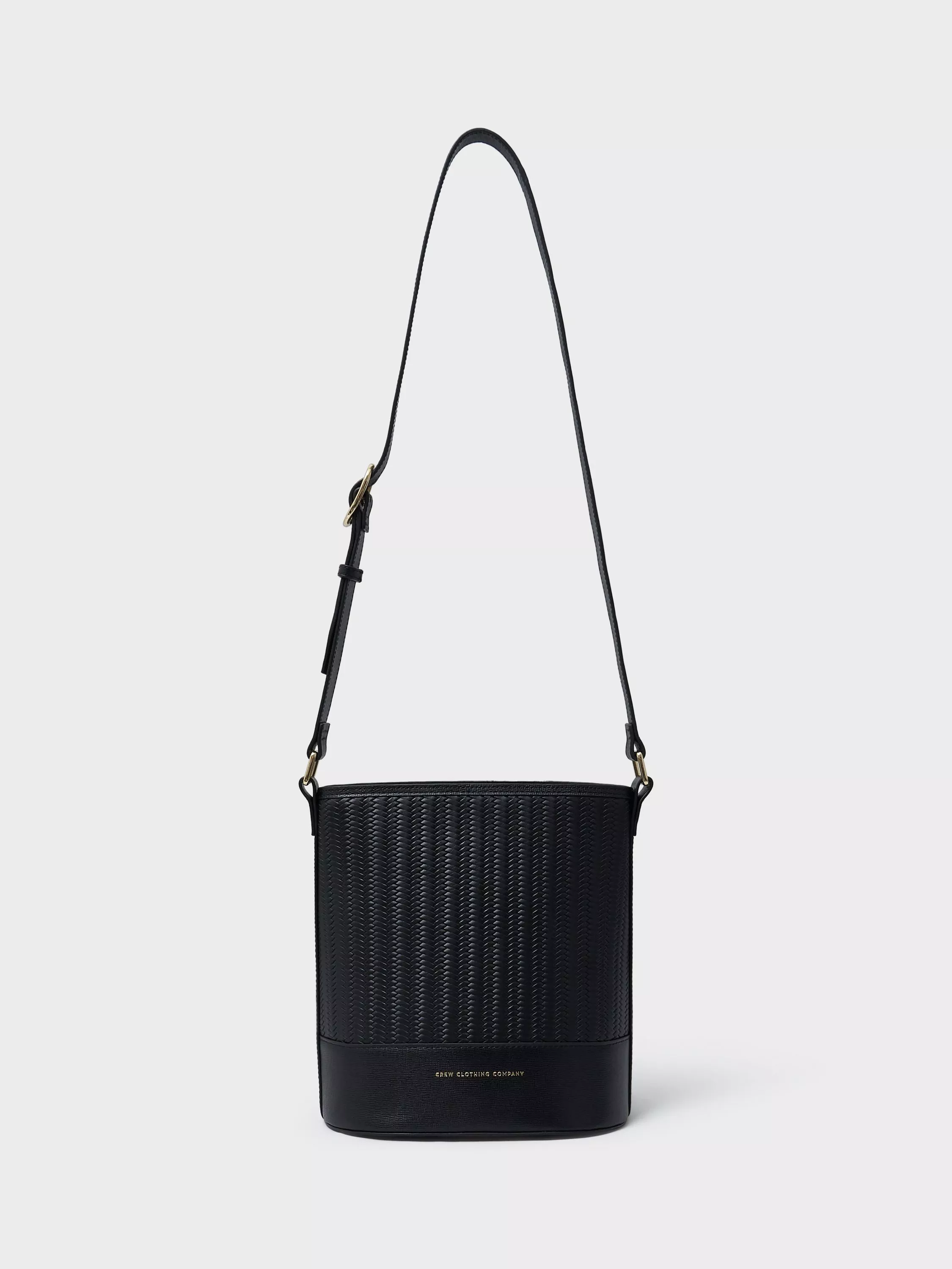 Presenting this woven leather bucket bag. This fully lined bag features a handy inner pocket and secure zip to fasten on the top. The shoulder strap is adjustable for the perfect fit, plus, Crew Clothing have added crossed oars rivets to elevate the design even further. Perfectly polished.