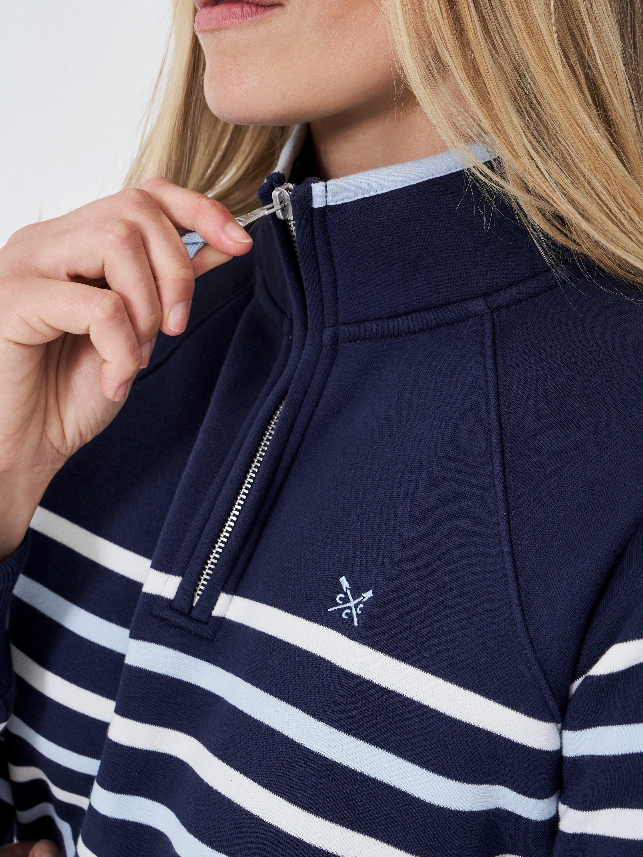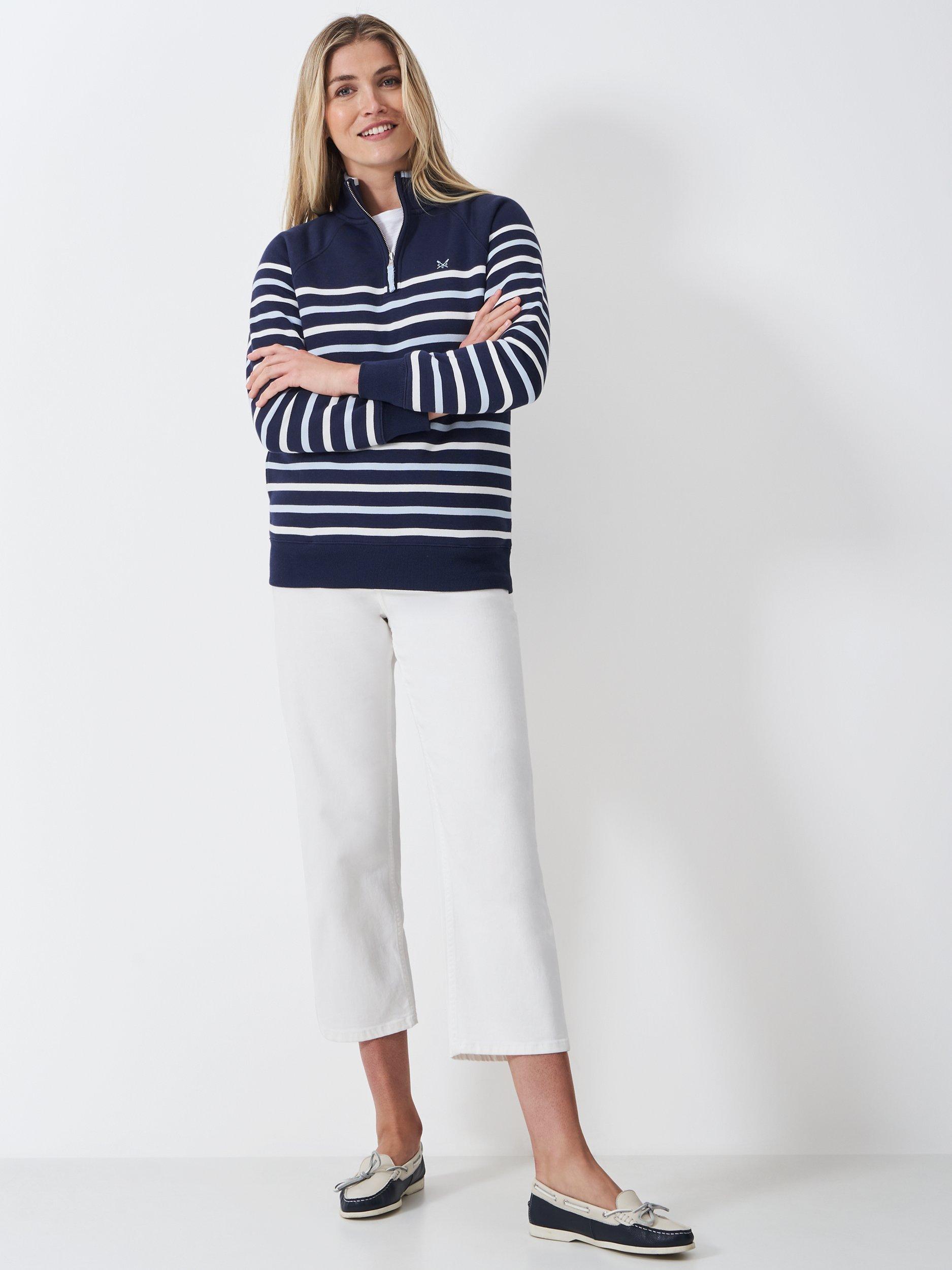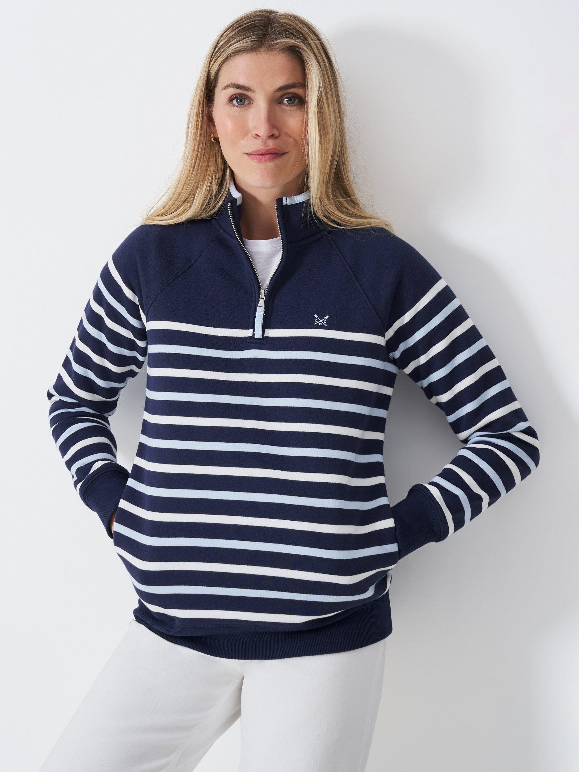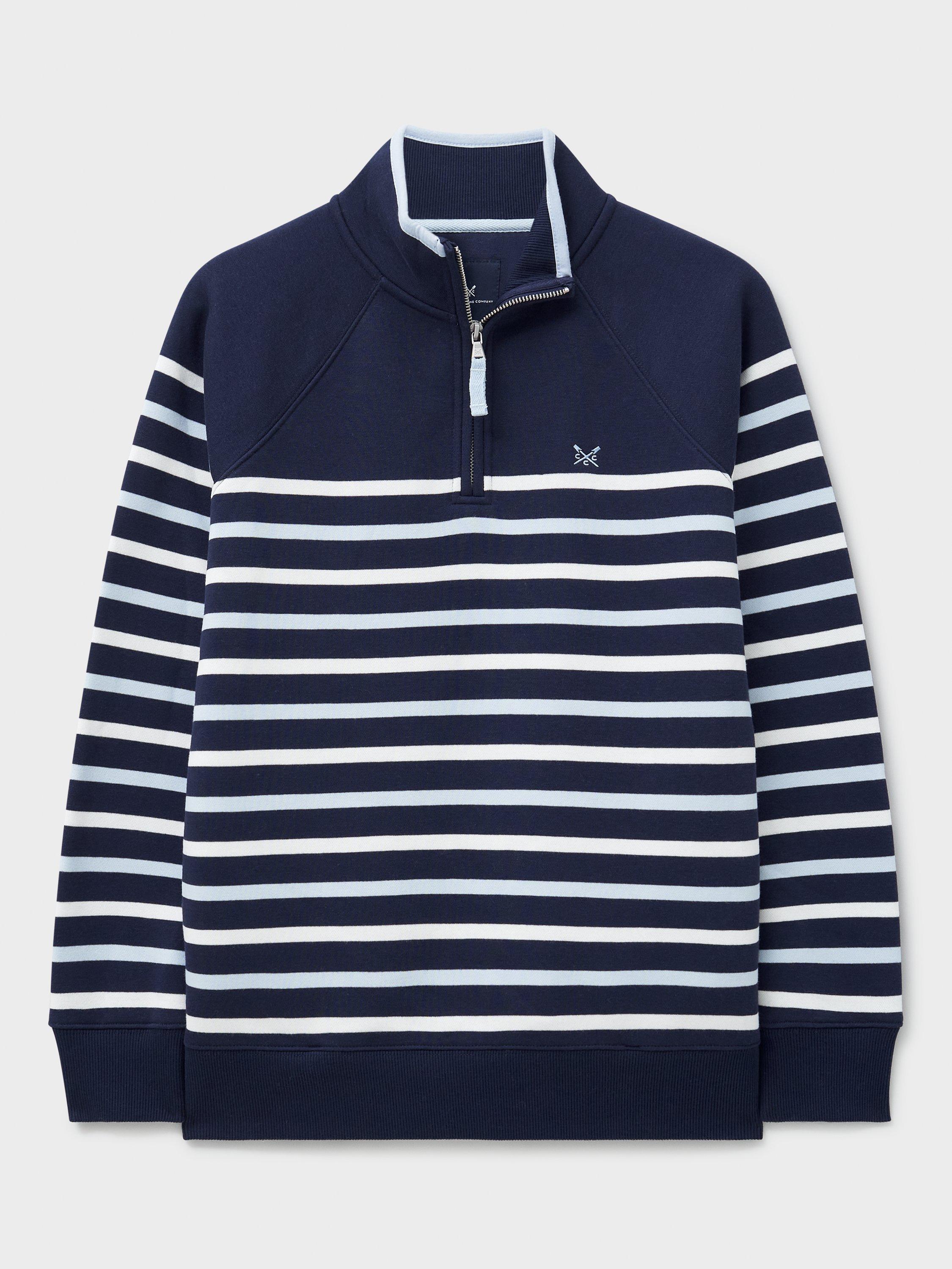 A lightweight staple, this jumper from Crew Clothing is striped for a nautical feel. Zipped at the neck, it is ideal for relaxed daytime wear.