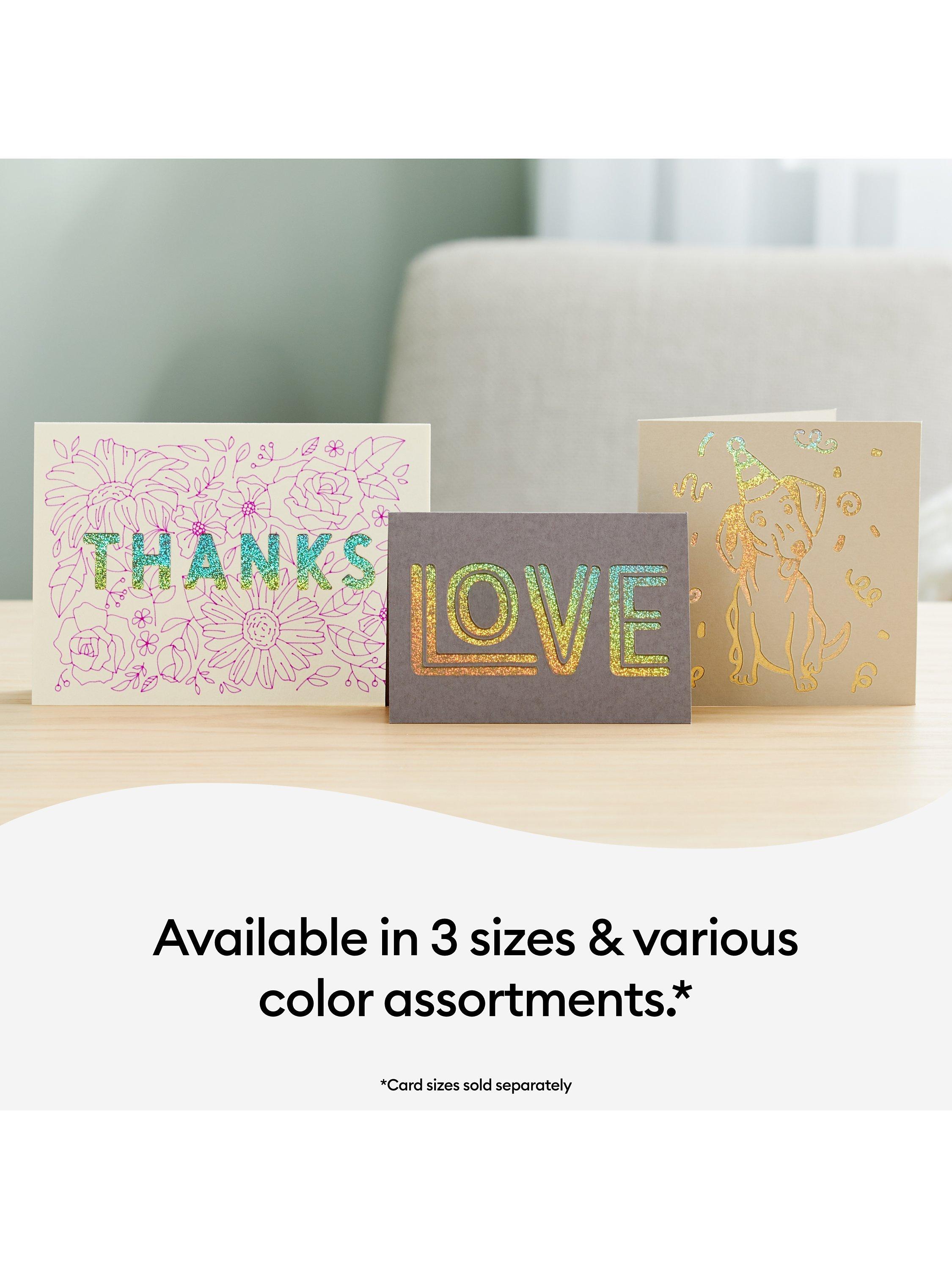 This pack includes envelopes and comes in a variety of colours, ready to send. Requires compatible Cricut Card Mat (sold separately).