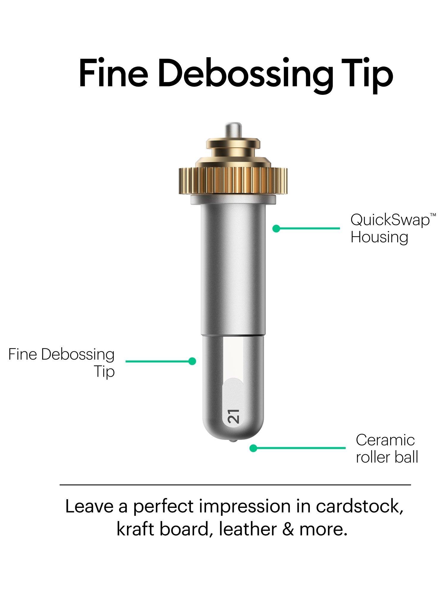 Simply snap this tip onto the QuickSwap Housing to create crisp, detailed debossed designs. Unlike folders, which lock you into a specific design, this rolling debossing ball has a wider range of motion to give you free rein to customize, personalize, and design with incredible intricacy.