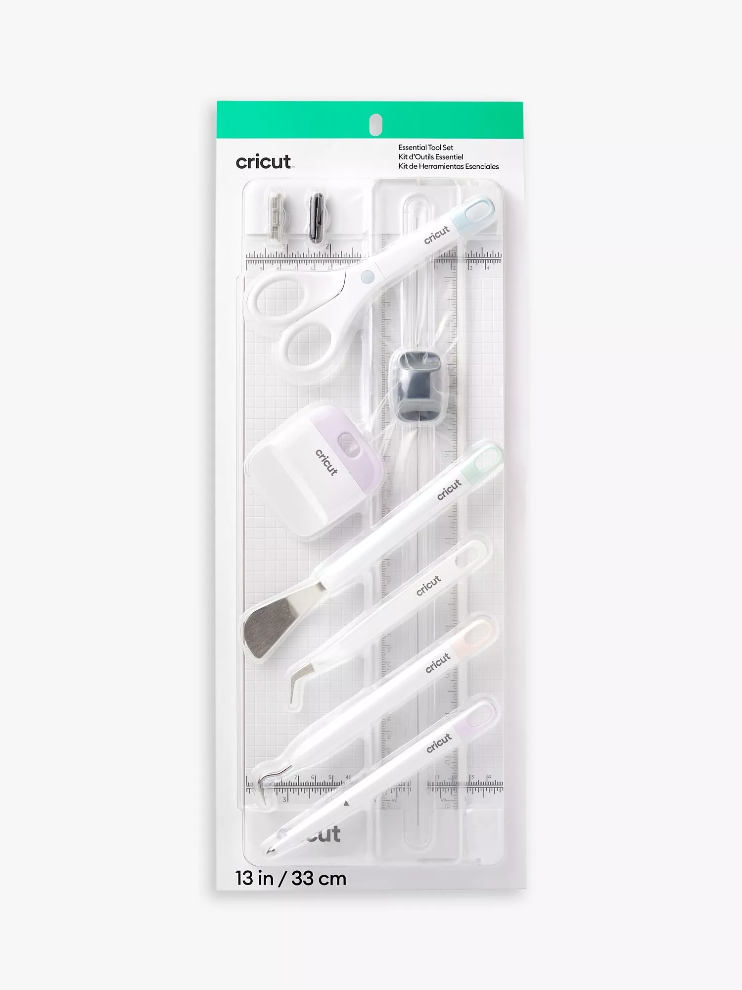 Craft in style with Cricut's Essential Tool Set featuring a 13in(33cm) portable trimmer. This 7-piece set comes with just about every tool needed for Cricut crafting and complements your machine with a classic blend of performance and style. You'll be equipped to handle any material that strikes your fancy - vinyl, iron-on, cardstock, and more. A go-to tool kit for all Cricut cutting machines.**Scoring Stylus compatible with Cricut Maker® and Cricut Explore® family machines.