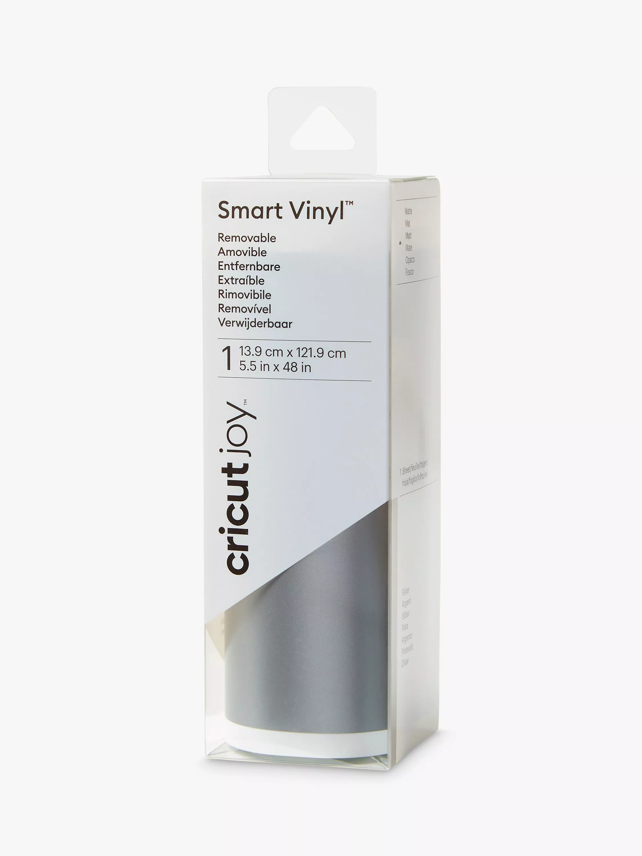 Personalise a little or a lot. Make more in less time with Cricut Joy and Smart Materials™. There's nothing to prep. This clever crafting material works without a cutting mat, so you can just load and go. Now it's no biggie to create a decal on the fly or a birthday banner with big impact. Fashion a quick decal for your water bottle or decorate your mailbox. Water and fade-resistant, this vinyl lasts up to 3 years, even in the great outdoors. Whether you're all about tiny touches or shouting from the rooftops, you've got this. For use with Cricut Joy.