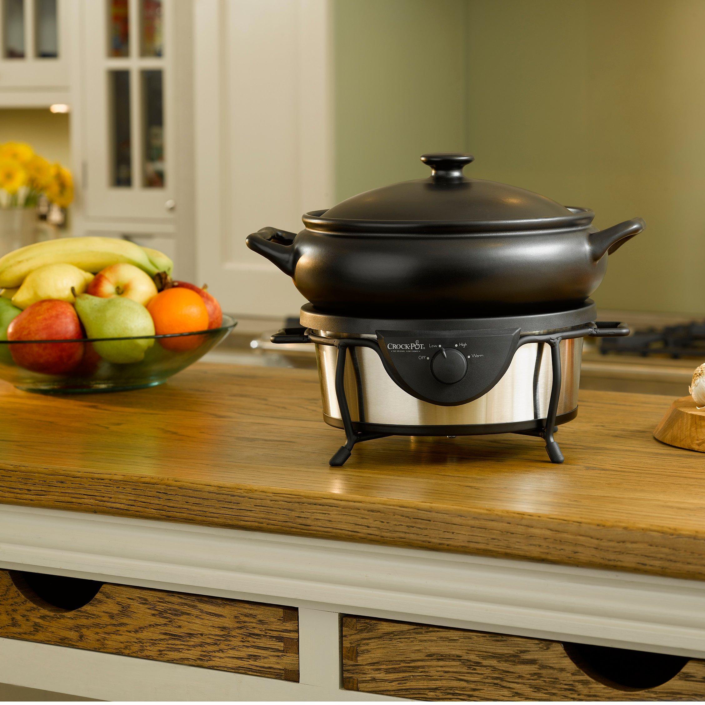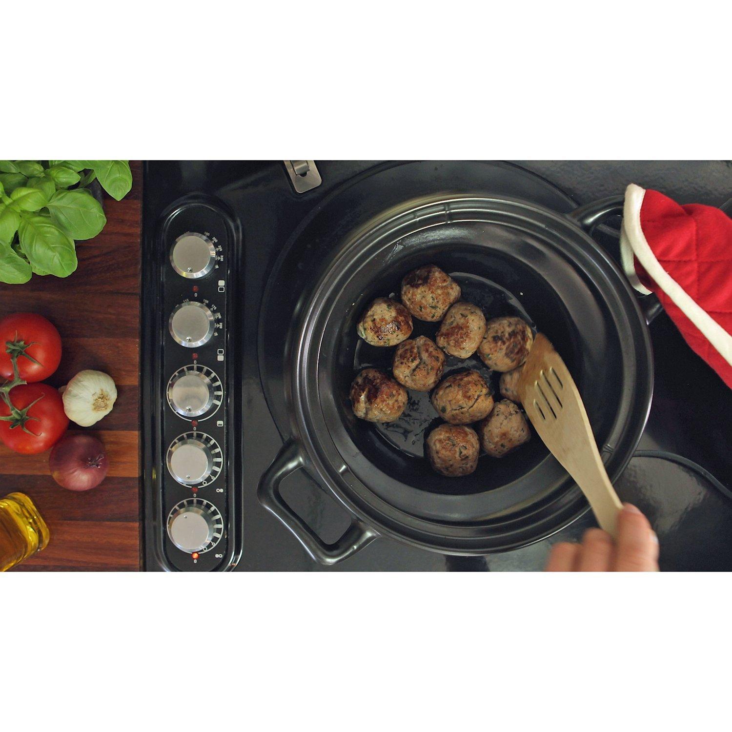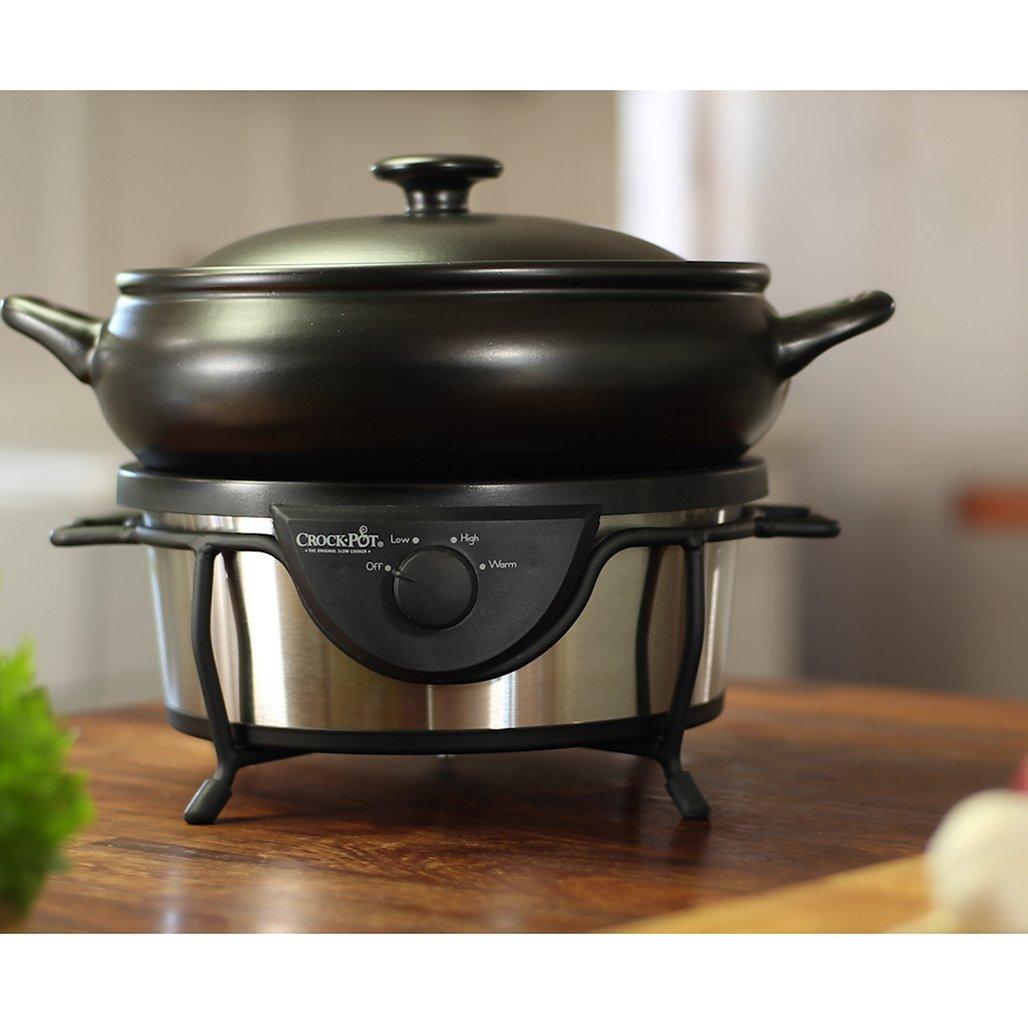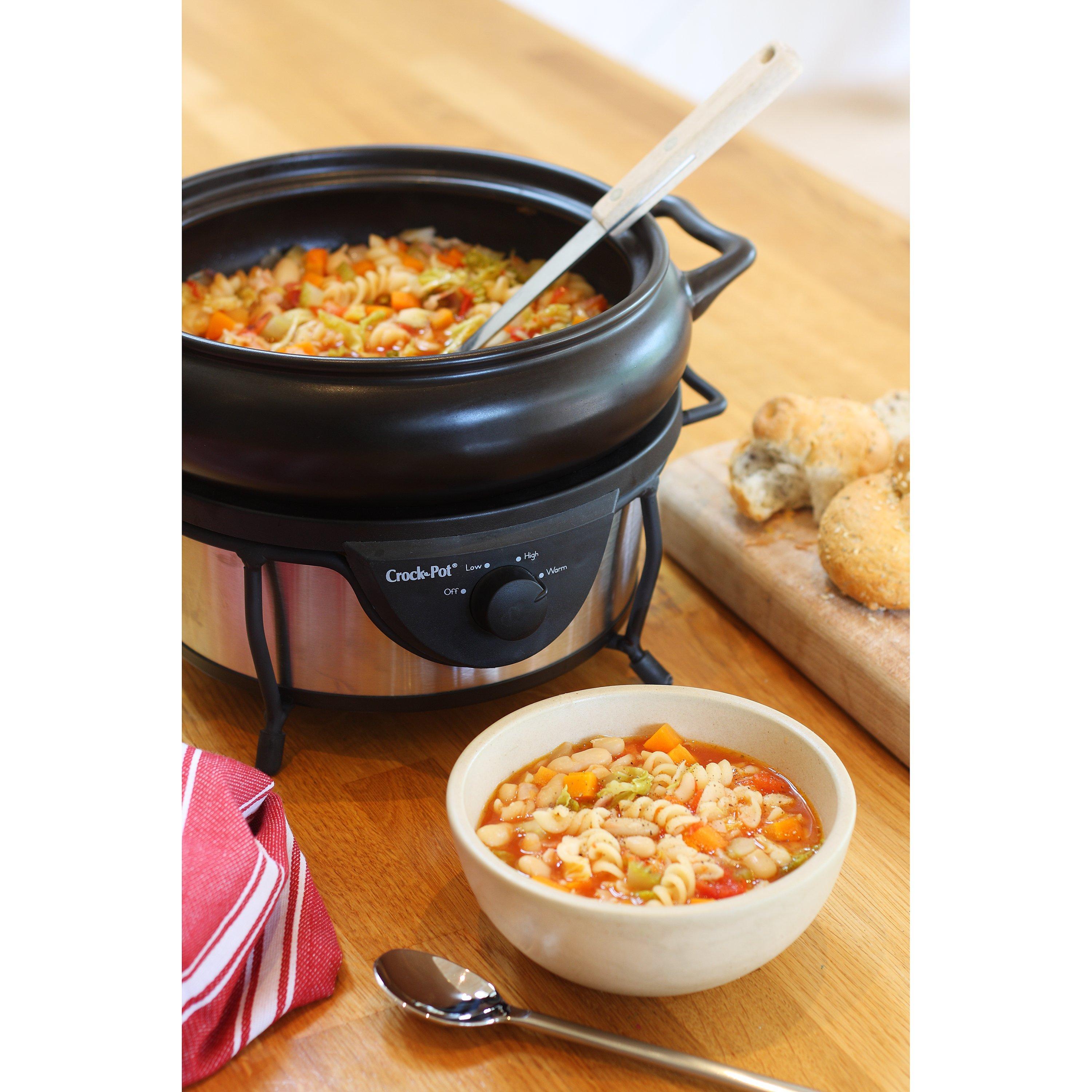 The brushed steel Crock Pot Saute slow cooker has a large 4.7 litre capacity removable stoneware pot catering for 5 people, so why not use it to deliver food straight to the table? Afterwards, it can be put in the dishwasher for easy maintenance.